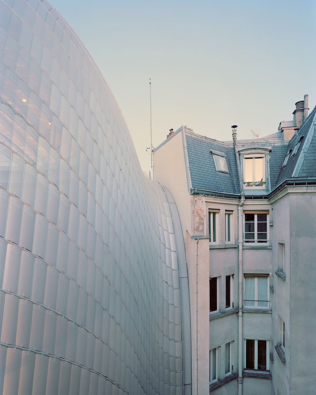 Laurent Kronental: Die Inszenierung spielt eine wichtige Rolle und wird im Voraus sorgfältig geplant. Sobald ich einen Ort ausgewählt habe, denke ich intensiv über die Komposition nach und suche oft nach einzigartigen Blickwinkeln, für die ich auf Dächer klettern oder schwer zugängliche Stellen aufsuchen muss, um selten gesehene oder sogar einzigartige Perspektiven zu bieten. Das Vertrauen der AnwohnerInnen zu gewinnen, ist ein entscheidender erster Schritt, insbesondere in sozialen Brennpunkten der Stadt. Bei frühen Serien wie "Souvenir d’un futur" oder "Les Yeux des Tours" wurde ich von Einheimischen begleitet, um die Sicherheit zu gewährleisten und Kontakte zu knüpfen. Der persönliche Austausch ist von entscheidender Bedeutung. Das Fotografieren von Menschen erfordert Zeit und Geduld, da viele erst einmal zögern, ob sie portraitiert werden möchten. Es ist ein sorgfältiger Beobachtungsprozess, ähnlich wie beim Malen, bei dem ich im Voraus entscheide, wie ich die Personen im Bild platzieren möchte, um ein ausdrucksstarkes, durchdachtes Bild zu schaffen. Neben diesem bewussten Ansatz verwende ich auch mein Smartphone oder eine leichte Analogkamera als eine Art Notizbuch, damit ich mich frei um das Motiv bewegen und spontanere Aufnahmen machen kann.