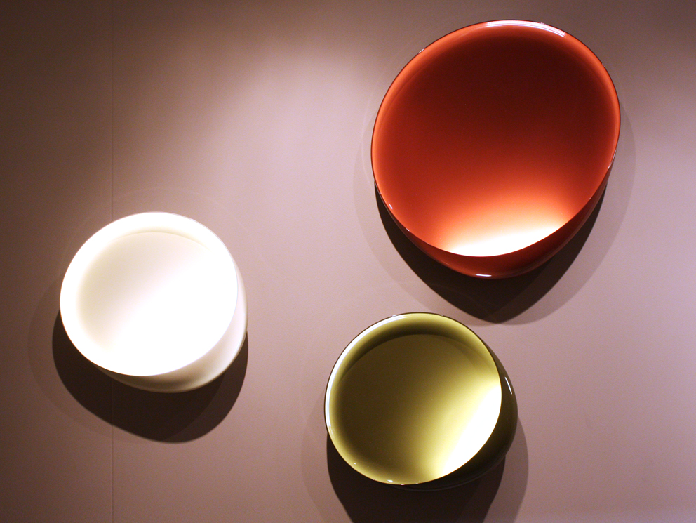 Indirektes Licht, das an Wand und Decke gerichtet wird, spielt dabei wieder eine große Rolle, aber auch die Verschmelzung neuer Techniken mit vertrauten Formen. So zeigte Foscarni an seinem Stand bekannte Leuchten wie „Caboche“, „Twiggy“, „Big Bang“ und „Tress“ jeweils in zwei Versionen: Einmal mit konventionellen Leuchtmitteln und daneben, technisch neu entwickelt, mit LED-Technik bestückt. Bei der „Caboche“ von Patricia Urquiola und Eliana Gerotto beispielsweise werden mehrere Platinen eingesetzt, deren LED in verschiedene Richtungen strahlen, um den bislang vertrauten Lichteffekt zu erreichen. Das ist ungefähr so sinnvoll wie die Entwicklung des Hybrid-Autos, das mit zwei Motoren mehr wiegt als ein konventionelles Auto, dann aber durch perfekte Abstimmung möglichst sparsam zu nutzen sein soll. Nicht immer geht diese Rechnung auf. Wir werden sehen, wie es bei den Leuchten kommt. Aber auch neue LED-Leuchten wie „Lightwing“ von Jean Marie Massaud sind bei Foscarini zu sehen. Um die Reflektion des Lichts zu variieren lässt, sich ein Flügel am Leuchtenkopf verstellen, auf den die Dioden strahlen. Mit Fontana Arte, Luceplan, sowie Artemide und Danese zeigten italienische Schwergewichte jeweils gleich eine ganze Reihe neuer Produkte. Nicht alle überzeugten: Daniel Libeskinds „Paragon“ bei Artemide etwa empfiehlt sich als geometrisches Spielzeug für den Schreibtisch und erinnert dabei doch zu sehr an eine Action-Figur aus „Transformers“.