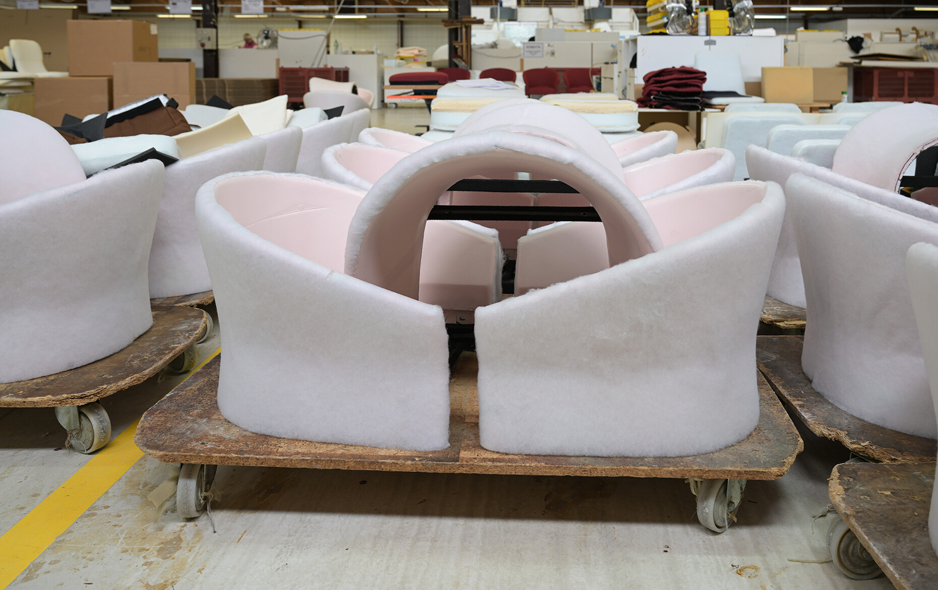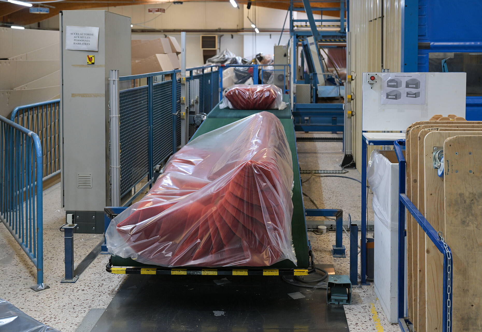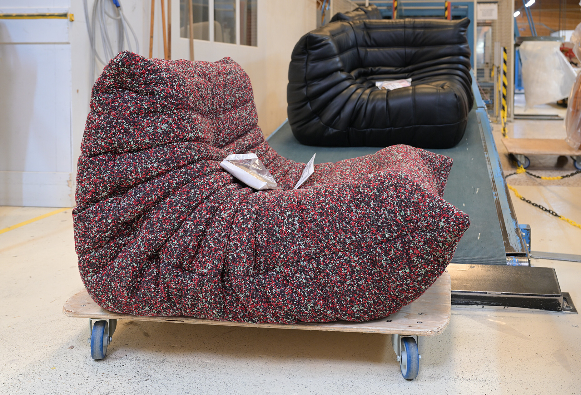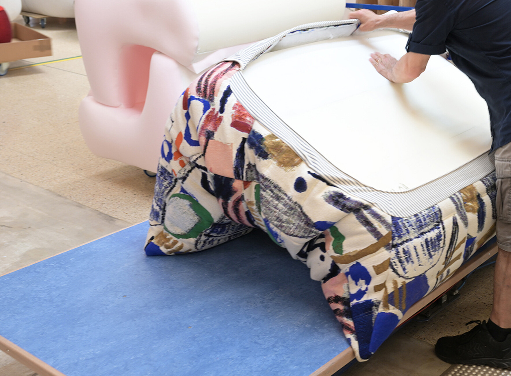Beim Rundgang durch die weitläufigen Fabrikhallen lassen sich die vielen Details entdecken, die dazu beitragen, dass Ligne Roset für alle ihre KundInnen das beste Sitzerlebnis schaffen kann: Für die Polsterung der Sofas und Sessel wird aus 19 Sorten die jeweils passende gewählt, der Großteil der dabei anfallenden Materialreste wird parallel ganz im Sinne der Kreislaufwirtschaft recycelt. An den unzähligen Plätzen der NäherInnen werden in Handarbeit einer ballettgleichen Choreografie aus den zahlreichen Stoffen und Ledern die Möbelbezüge gefertigt. Der Zuschnitt ist dabei so optimiert, dass die Reste minimal sind. Unterstützend wirken Nähroboter, deren Ergebnisse von den MitarbeiterInnen geprüft werden. Auch in der Holzverarbeitung für den Unterbau der Möbel ist die Handarbeit und die Kontrolle der maschinell erzeugten Elemente durch die erfahrenen HandwerkerInnen ein Garant für die Qualität der finalen Produkte.