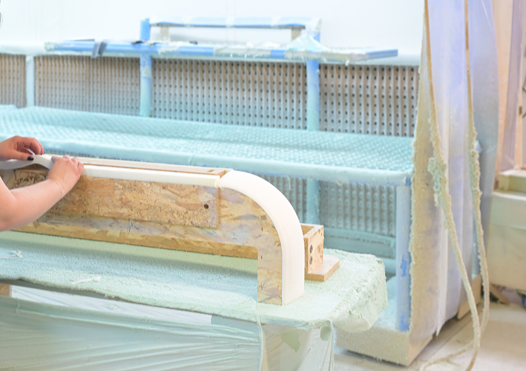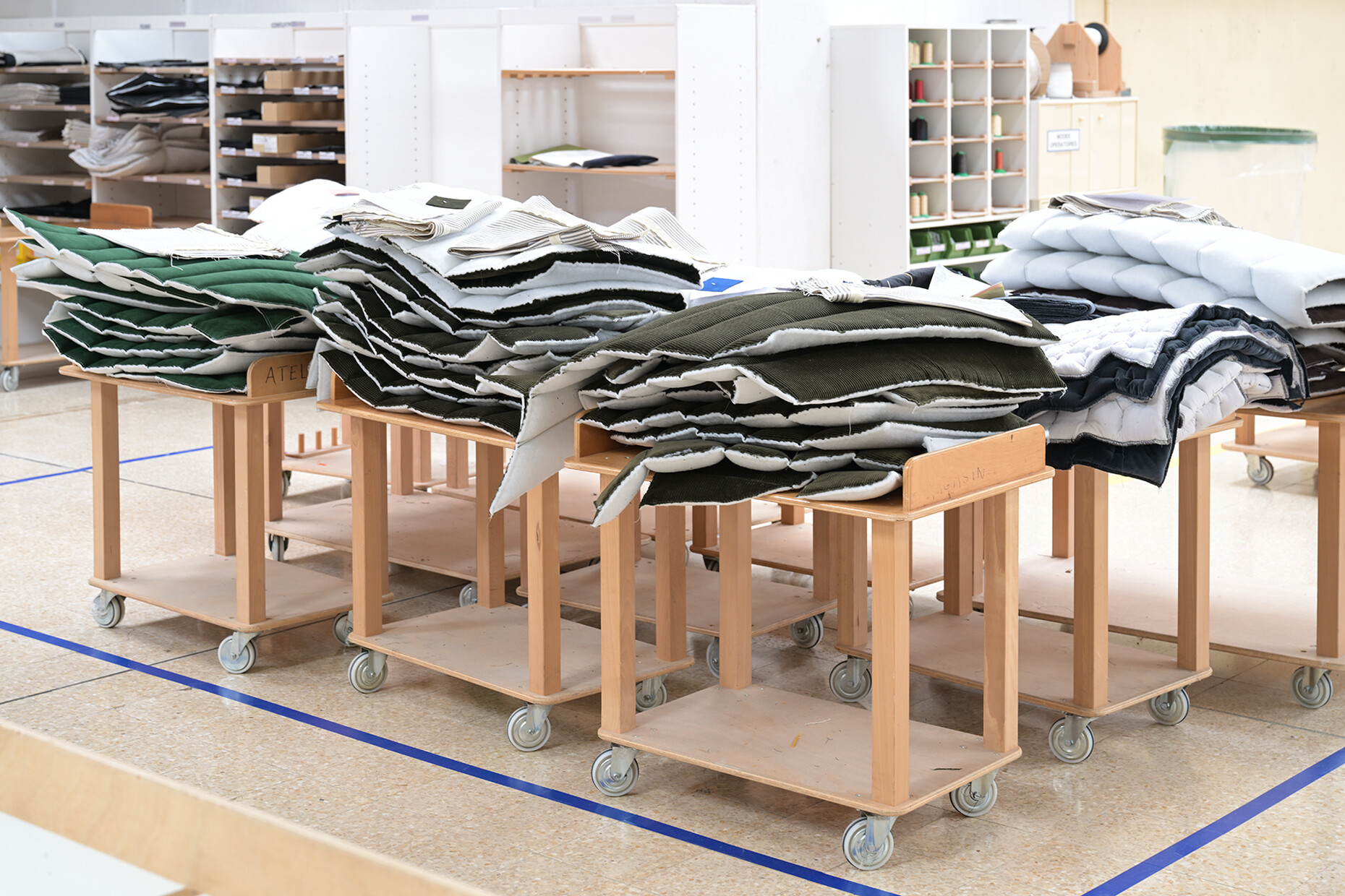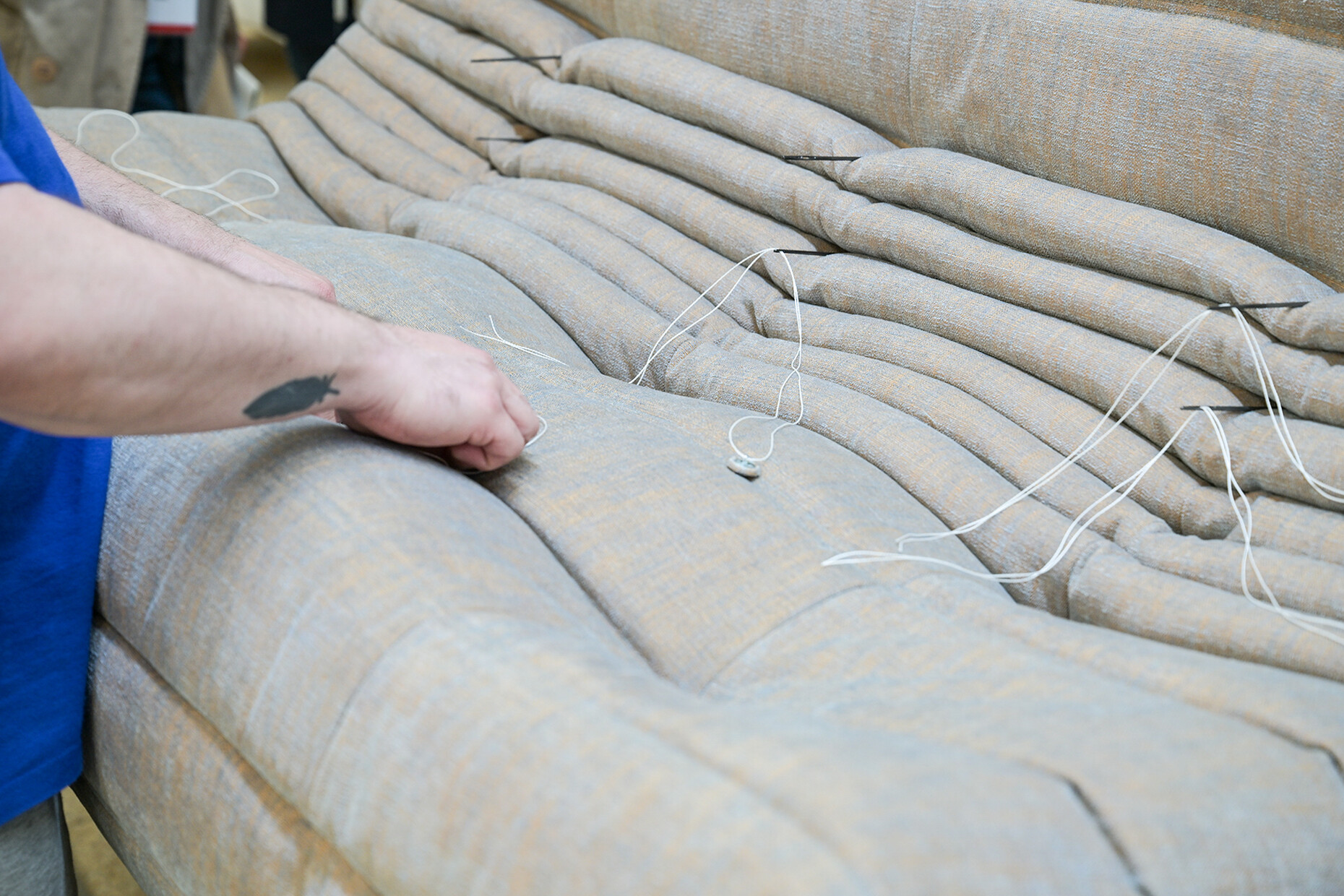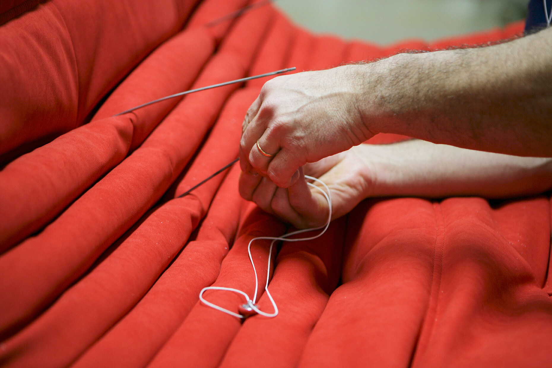 Beim Rundgang durch die weitläufigen Fabrikhallen lassen sich die vielen Details entdecken, die dazu beitragen, dass Ligne Roset für alle ihre KundInnen das beste Sitzerlebnis schaffen kann: Für die Polsterung der Sofas und Sessel wird aus 19 Sorten die jeweils passende gewählt, der Großteil der dabei anfallenden Materialreste wird parallel ganz im Sinne der Kreislaufwirtschaft recycelt. An den unzähligen Plätzen der NäherInnen werden in Handarbeit einer ballettgleichen Choreografie aus den zahlreichen Stoffen und Ledern die Möbelbezüge gefertigt. Der Zuschnitt ist dabei so optimiert, dass die Reste minimal sind. Unterstützend wirken Nähroboter, deren Ergebnisse von den MitarbeiterInnen geprüft werden. Auch in der Holzverarbeitung für den Unterbau der Möbel ist die Handarbeit und die Kontrolle der maschinell erzeugten Elemente durch die erfahrenen HandwerkerInnen ein Garant für die Qualität der finalen Produkte.