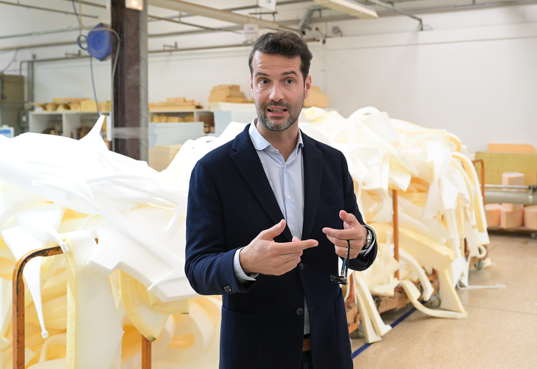 In diesem Jahr haben Antoine und sein Cousin Olivier, die Söhne von Pierre und Michel, die Firmenleitung übernommen: Beide strahlen eine positive Energie und klare Kompetenz aus, die das sichere Gefühl vermittelt, dass auch dieser Generationswechsel zu einer weiterhin positiven Entwicklung des Unternehmens beiträgt. Gut 800 MitarbeiterInnen beschäftigt Ligne Roset mittlerweile, und die nächste Generation so enthusiastisch für die weiteren Schritte zu erleben, ist eine wahre Freude. Die Roset-Gruppe trägt zudem seit letztem Jahr das staatliche Gütesiegel "Entreprise du Patrimoine Vivant" (EPV), mit dem sie für die Exzellenz des Know-hows, ein seltenes wirtschaftliches Erbe und das Renommee der kulturellen Dimension ihrer Leistungen und ihres Standorts ausgezeichnet wurden. Sie sind damit Teil eines nationalen Netzwerks von Spitzenunternehmen, die von gemeinsamen Werten angetrieben werden: Anpassungsfähigkeit, Reaktionsfähigkeit, Innovation und Leidenschaft für den Beruf. Ebenso beliefert Ligne Roset nicht nur die französischen Botschaften, sondern sogar den Élysée-Palast.