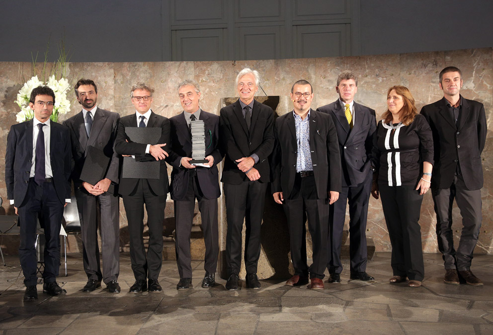 Stefano Boeri empfängt den mit 50000 Euro dotierten Preis von Matthias Danne, Vorstandsmitglied des Preis-Sponsors Deka-Bank. Foto © Alexander Paul Englert