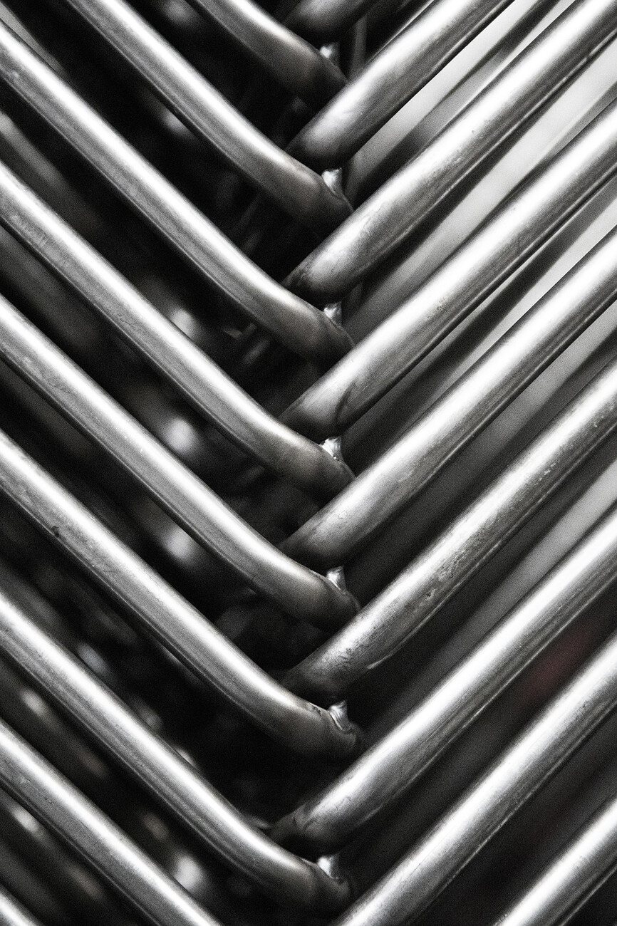 Metall, meist pulverbeschichtet, spielt für Mara seit jeher eine tragende Rolle. 1960 gründete Camillo Marchina, der Großvater von Laura Marchina, das Unternehmen in Brescia in der Lombardei und spezialisierte sich auf die Herstellung von Stühlen. Wohlgemerkt entgegen dem damaligen Trend der Region auf Holz als Material zu setzen. "Die ersten Stühle, die für den Vertragsgebrauch konzipiert waren, bestanden aus Holz und einem Metallrahmen", erzählt sie. Es folgten Sitzplätze für Stadien und öffentliche Kulturräume. 1984 meldete das Familienunternehmen das erste Patent für eine Bürostuhlmechanik an, der Auftakt für das heutige Kerngeschäft von Mara.