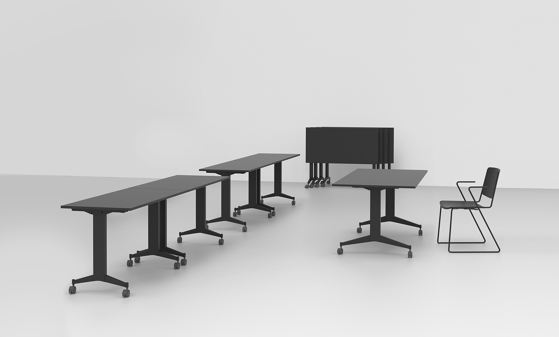 Heute umfasst das aktuelle Portfolio des Unternehmens multifunktionale, platzsparende und höhenverstellbare Tischkollektionen, aber auch Sitzmöbel und technische Accessoires – alles langjährige Bestsellerprodukte. Die Idee dabei: Ein reduziertes, geradliniges Design, dass sich in jede Architektur integrieren lässt und vielseitige Funktionen bietet. Flexibilität wird bei Mara großgeschrieben und so kann man für das perfekte Ensemble bei den Tischen sowohl zwischen verschiedenen Größen wie Formen wählen; vom Rechteck bis zum Kreis. Für ein angenehmes Arbeiten können die Tische zudem in der Höhe verstellt werden. Und ist statt dem Solitär eine lange Tafel gefragt, lassen sich die Tische einfach kombinieren: An der Unterseite der Tischplatte wird hierfür ein Kit mit Schiebeverschluss befestigt, der sich schließt sobald die Tische zusammengestellt werden. So schnell wie die Formation gebildet ist, lässt sie sich auch wieder lösen und zusammenklappen. Mit Rollen versehen, können die leichtgewichtigen Tische anschließend ohne großen Aufwand von einer Person transportiert und verstaut werden. Um die eigenen Finger muss man sich zudem beim auf- und zuklappen keine Sorgen machen, denn Mara hat seine Tische mit einem Anti-Shock-System ausgestattet, ähnlich dem von Schubladen, die nach dem Öffnen wieder sanft auf ihre Ausgangsposition gleiten. Je nach Nutzungskonzept können wahlweise Ergänzungen wie ein Kabelmanagement mit Steckdosen angefügt werden. "Unsere Philosophie ist es durch innovative und funktionale Einrichtungslösungen weltweit zur Verbesserung des Wohlbefindens der Menschen beizutragen", sagt Laura Marchina.