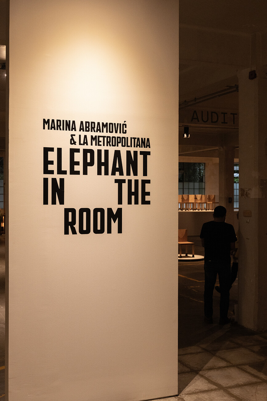 Es ist die erste Möbelkollektion der international bekannten Performancekünstlerin und trägt den Titel "The Elephant in the room". Abramović verweist mit diesem auf die Metapher, dass ein allgemein bekanntes Problem nicht adressiert wird. Die mit traditionellen Tischlertechniken hergestellten Stühle sind so als Fingerzeig auf eine schwindende Verbundenheit zur Natur und die Wertschätzung für das Handwerk zu verstehen. Bis in die Details dienen die beiden geradlinigen, aber dennoch ausdrucksstarken Holzstühle als Medium: Gefertigt aus Rosa-Morada-Holz gehen die Beine in hufenförmige Sockel über, die aus einer Reihe von Materialien gewonnen werden – wie Edelholz, Münzen und Industrieabfälle. Adressiert wird in diesem Zuge die Übernutzung von seltenen Hölzern sowie die Verwässerung kultureller und materieller Traditionen. "Objekte können über ihre Nützlichkeit hinausgehen und zu Energieüberträgern und Schöpfern emotionaler, die unsere Fähigkeit widerspiegeln, Materialien mit Zweckmäßigkeit und Sensibilität zu transformieren.", so Marina Abramović.