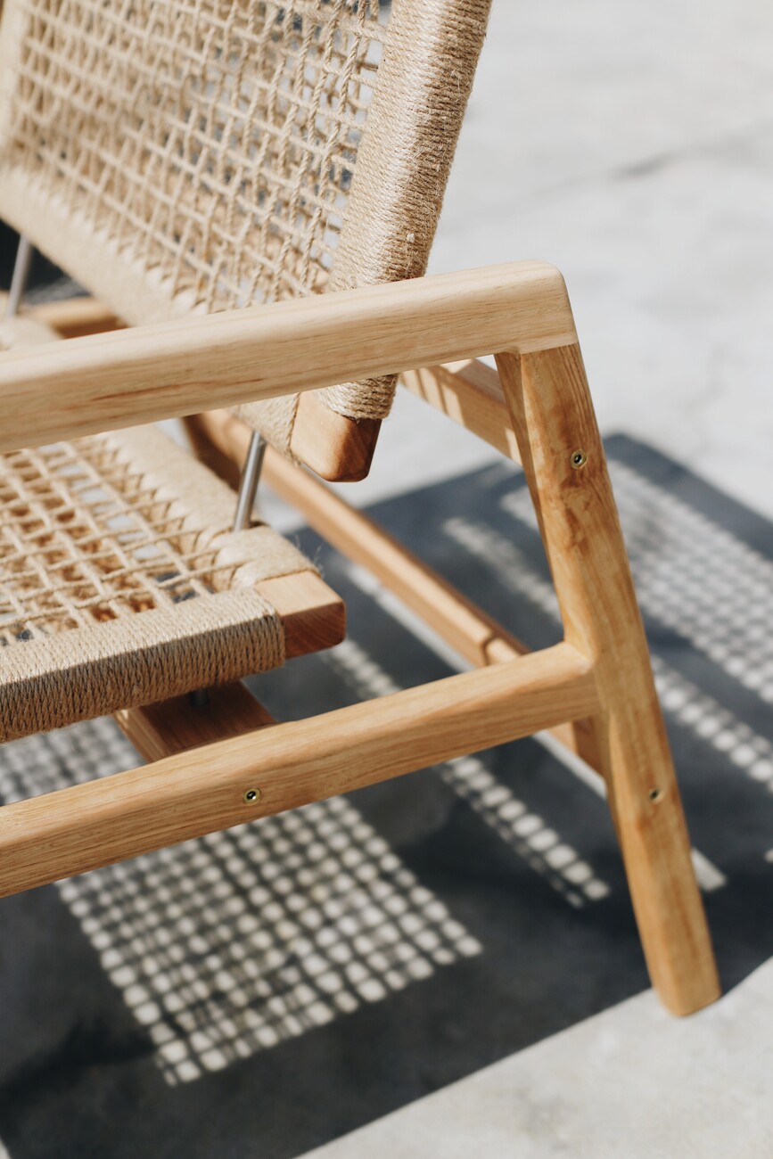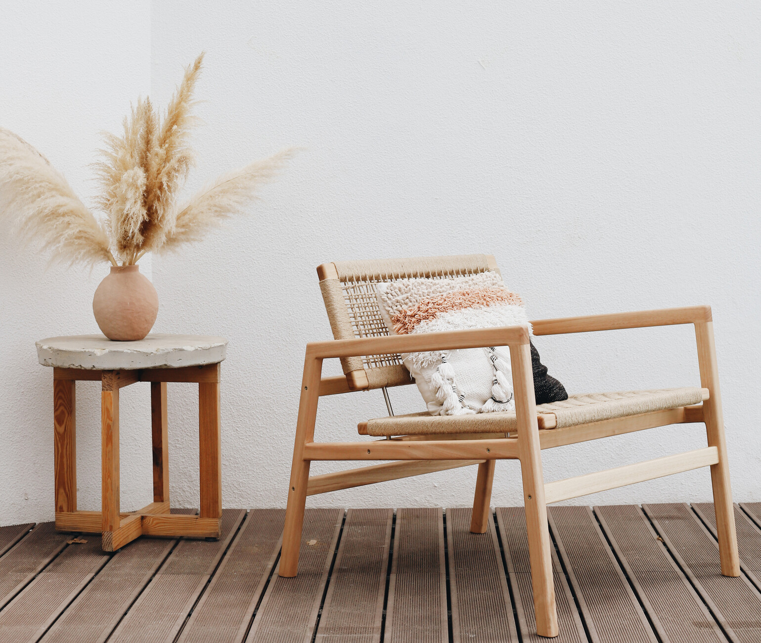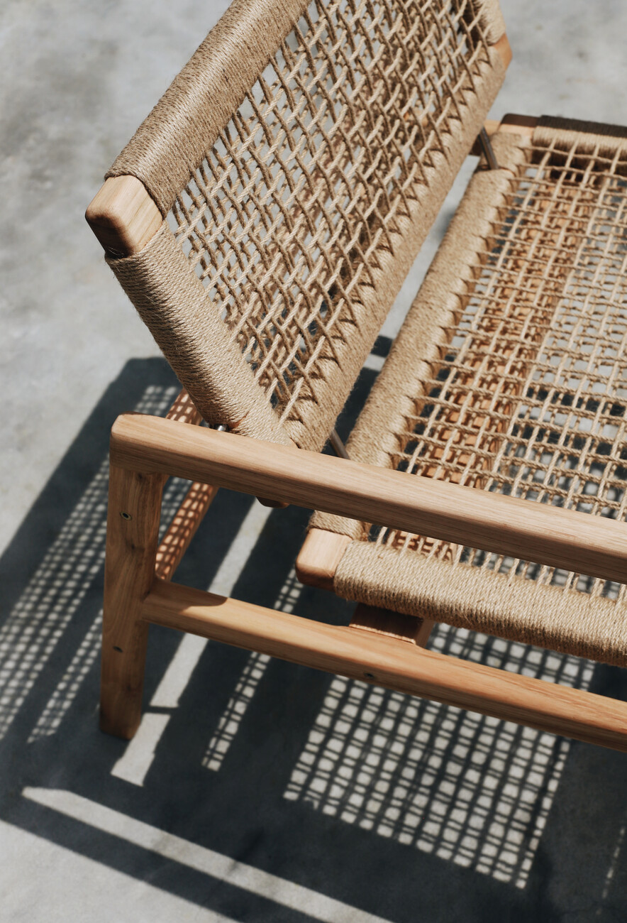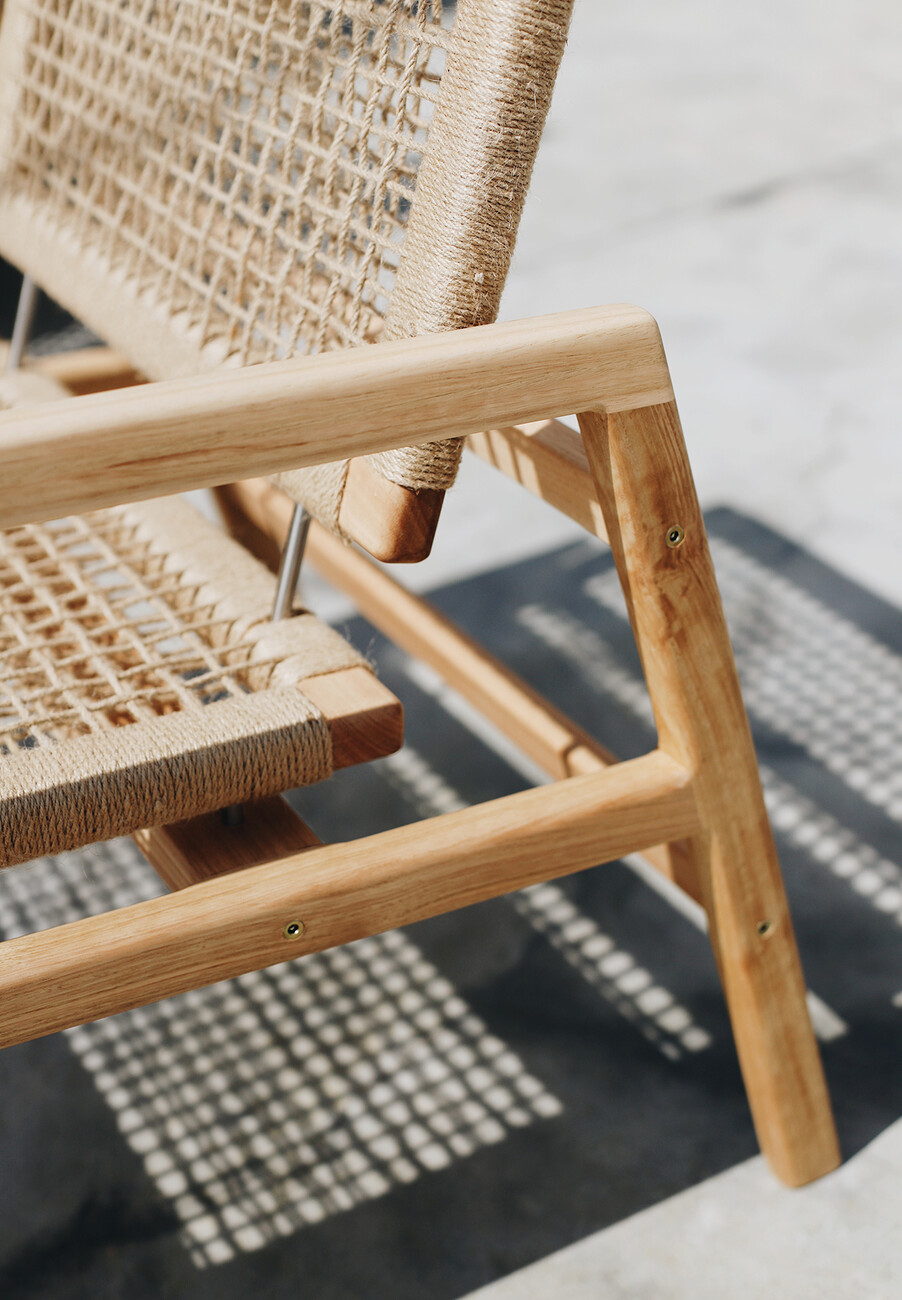 "Genua" heißt der erste Aufschlag und bietet gleich fünf Produkte: Sessel, Stuhl, zwei Tische in unterschiedlichen Größen und eine Zweisitzerbank. Gefertigt aus dem hellen, leicht rötlichen Holz des Eukalyptusbaums, das nahe der Fabrik von MDT-tex in Portugal angebaut und ohne lange Transportwege direkt vor Ort verarbeitet wird. Für die luftige Bespannung von Rückenlehne und Sitzfläche werden Seile aus Flachs und Kokosnuss in Handarbeit gewoben. Technisches Know-how und Edelstahl hält alle Elemente zusammen und sorgt für glänzende Akzente. "Ich weiß die Freiheit, die mir MDT-tex für die erste Kollektion der neuen Marke HOKKA gegeben hat, sehr zu schätzen", sagt Borchers. Im Grunde gab es für die Entwürfe nur eine Vorgabe: Die Stühle sollten stapelbar sein. Der "Genua Lounge Chair HK1", der "Genua Lounge Chair HK2" sowie die "Genua Chairs HK4+5" können so leicht und flexibel in der Position versetzt werden und lassen sich bei Bedarf schnell und platzsparend zur Seite räumen. Zudem ist die minimalistische, skandinavische Ästhetik eine ideale Basis für individuelle Ergänzungen wie farbige Polster und Auflagen. Für den Komfort braucht man diese allerdings nicht, denn alle Sitzflächen der "Genua"-Kollektion von HOKKA sind dank der Bespannungen sehr bequem. "Man soll sich auch ohne Polster auf den Stühlen wohlfühlen", so Kasper Borchers. Und hat auch schon die weitere Entwicklung von HOKKA im Blick: "Wir wollen die Kollektion Schritt für Schritt ausbauen, zum Beispiel mit einem Daybed", so der Designer.