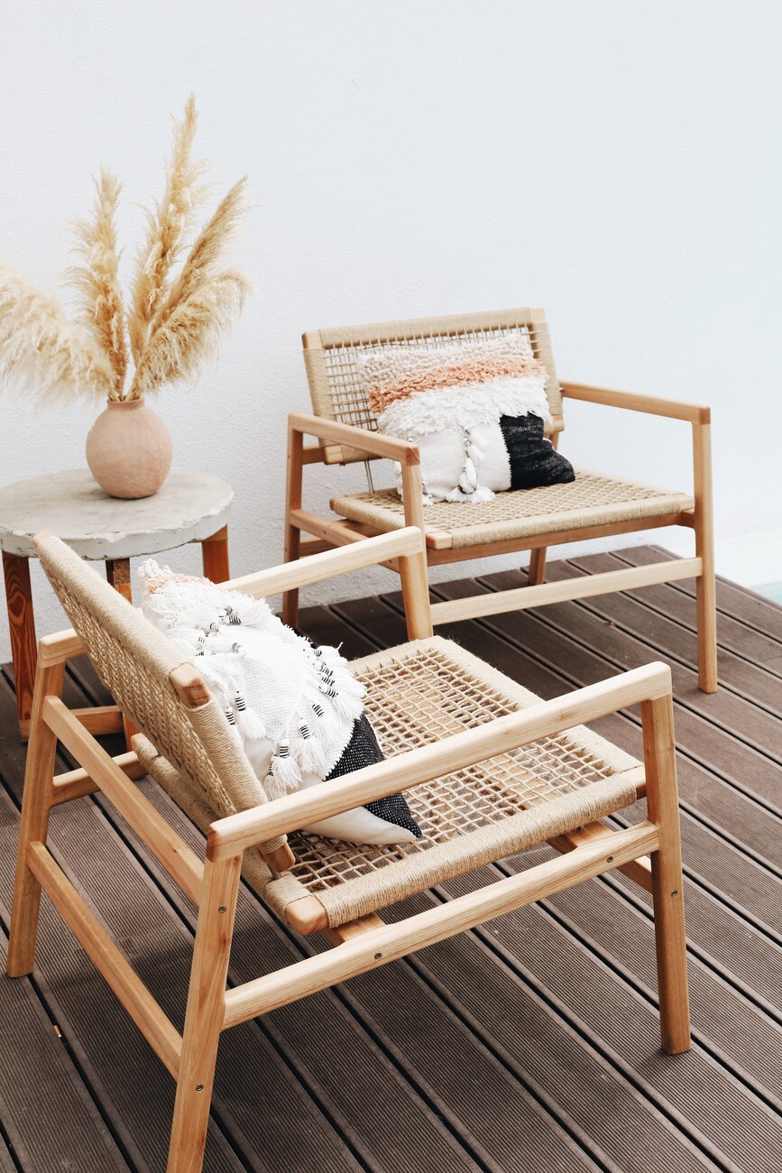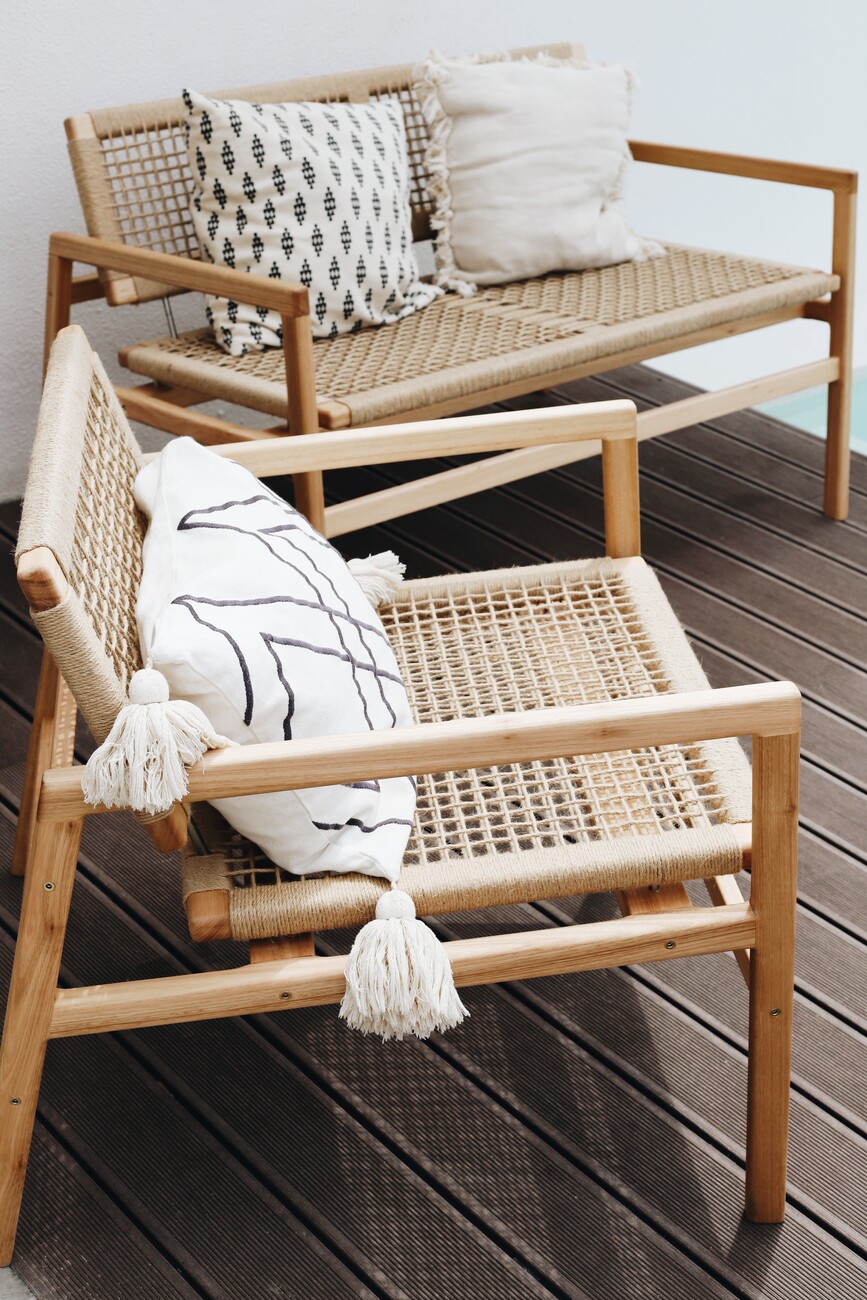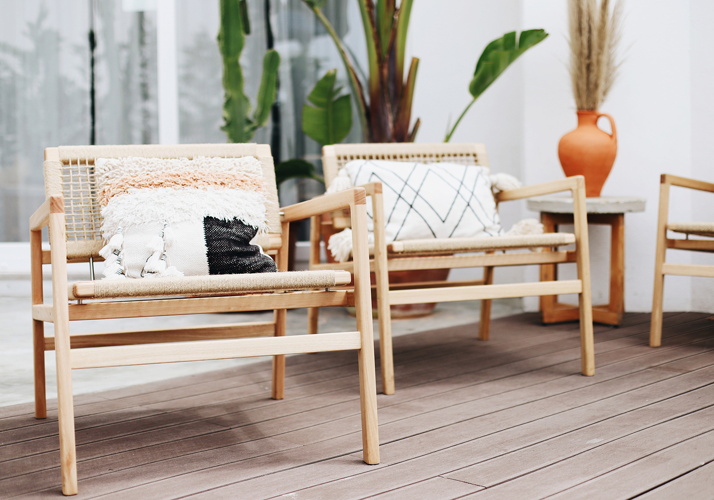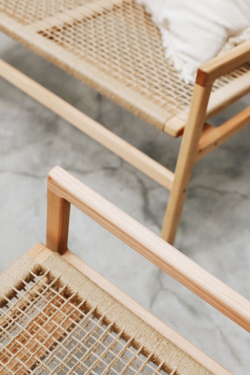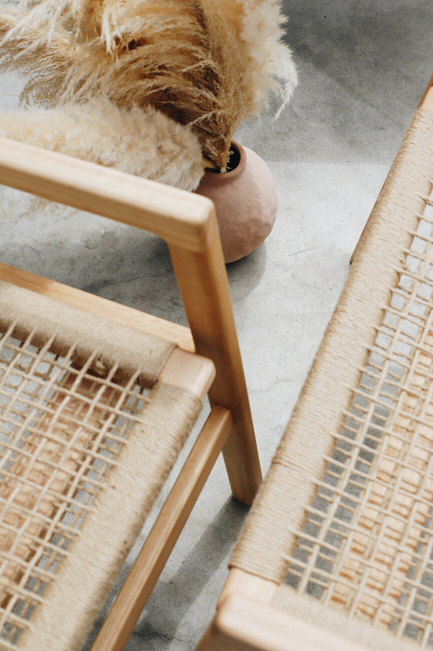 "Genua" heißt der erste Aufschlag und bietet gleich fünf Produkte: Sessel, Stuhl, zwei Tische in unterschiedlichen Größen und eine Zweisitzerbank. Gefertigt aus dem hellen, leicht rötlichen Holz des Eukalyptusbaums, das nahe der Fabrik von MDT-tex in Portugal angebaut und ohne lange Transportwege direkt vor Ort verarbeitet wird. Für die luftige Bespannung von Rückenlehne und Sitzfläche werden Seile aus Flachs und Kokosnuss in Handarbeit gewoben. Technisches Know-how und Edelstahl hält alle Elemente zusammen und sorgt für glänzende Akzente. "Ich weiß die Freiheit, die mir MDT-tex für die erste Kollektion der neuen Marke HOKKA gegeben hat, sehr zu schätzen", sagt Borchers. Im Grunde gab es für die Entwürfe nur eine Vorgabe: Die Stühle sollten stapelbar sein. Der "Genua Lounge Chair HK1", der "Genua Lounge Chair HK2" sowie die "Genua Chairs HK4+5" können so leicht und flexibel in der Position versetzt werden und lassen sich bei Bedarf schnell und platzsparend zur Seite räumen. Zudem ist die minimalistische, skandinavische Ästhetik eine ideale Basis für individuelle Ergänzungen wie farbige Polster und Auflagen. Für den Komfort braucht man diese allerdings nicht, denn alle Sitzflächen der "Genua"-Kollektion von HOKKA sind dank der Bespannungen sehr bequem. "Man soll sich auch ohne Polster auf den Stühlen wohlfühlen", so Kasper Borchers. Und hat auch schon die weitere Entwicklung von HOKKA im Blick: "Wir wollen die Kollektion Schritt für Schritt ausbauen, zum Beispiel mit einem Daybed", so der Designer.