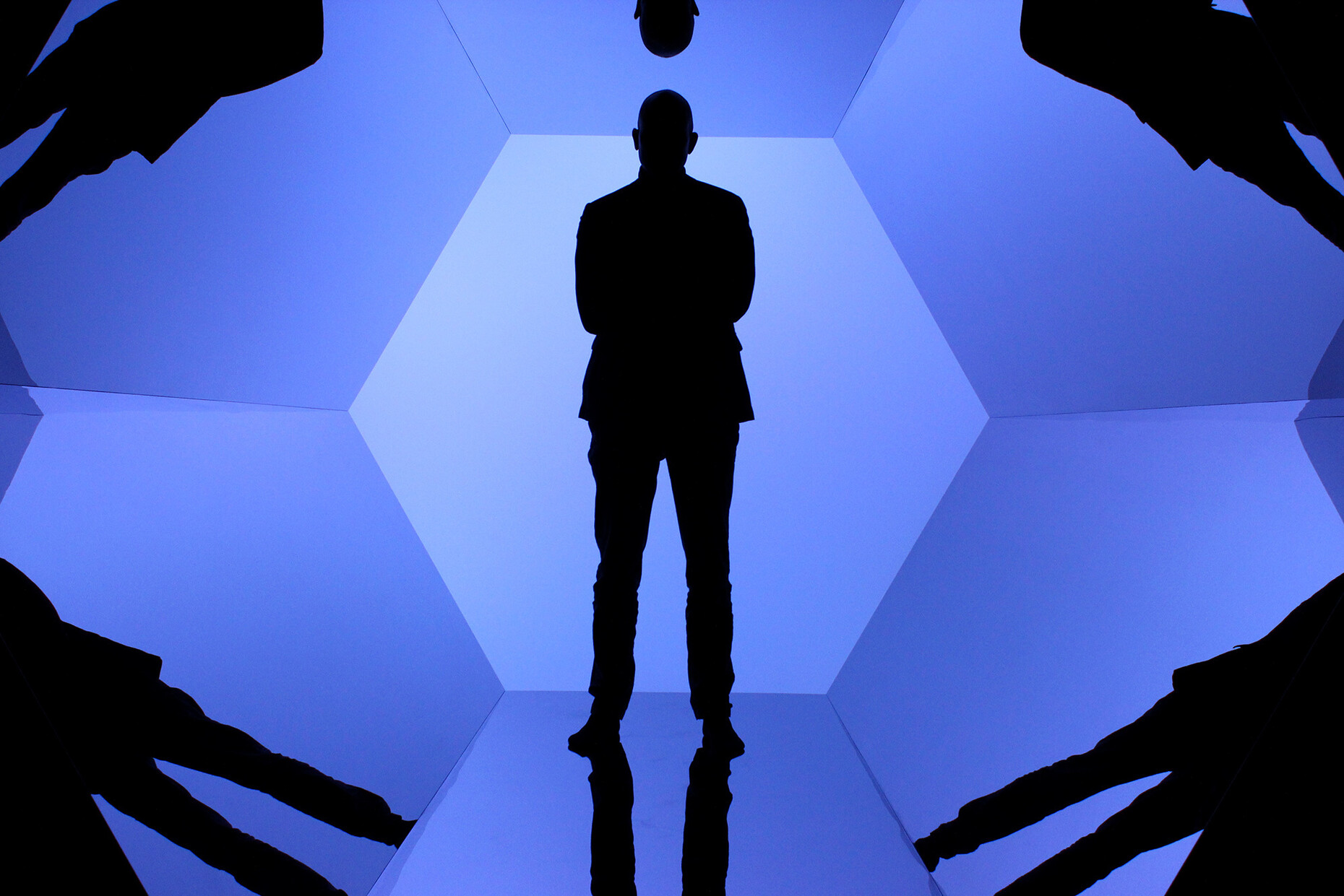 So entführt die Installation "A Piece of Sky" geradewegs ins Weltall – nur einem der unerdenklich vielen möglichen Ausblicke: Beim Betreten der sechskantigen, verspiegelten Röhre wiederholt man sich selbst zu einem unendlichen Spiegelbild und lauscht den dröhnenden Klängen der Erdrotation, einer Originaltonaufnahme der Nasa. Für uns posiert Hürlemann wie ein Special Agent auf Mission. (mh)