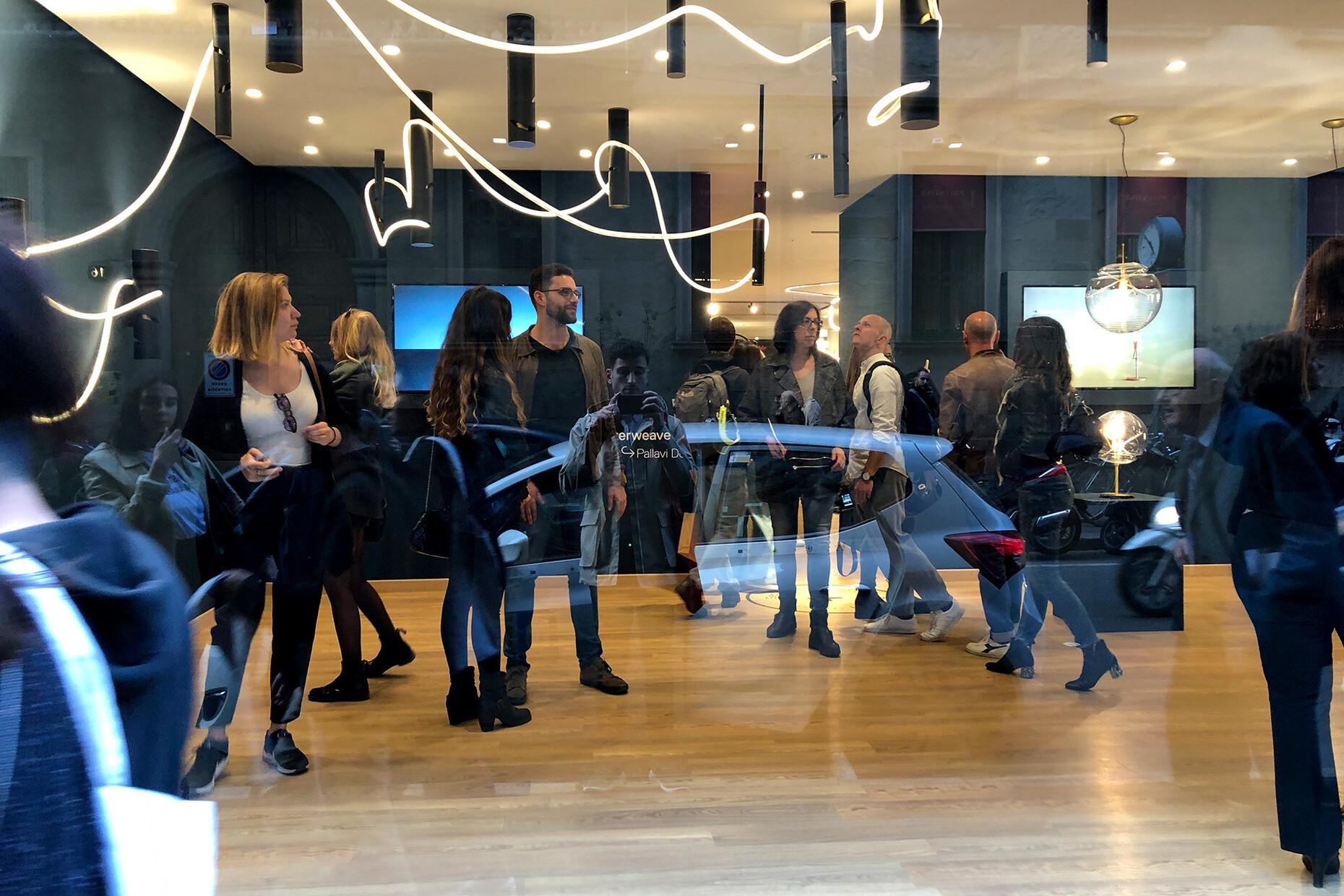 Und nebenan: Full House bei Artemide am gestrigen Abend. Im Showroom werden ausschließlich Neuheiten gezeigt – darunter von Bjarke Ingels (BIG), Pallavi Dean, Atelier Oï und Ernesto Gismondi. (mh)