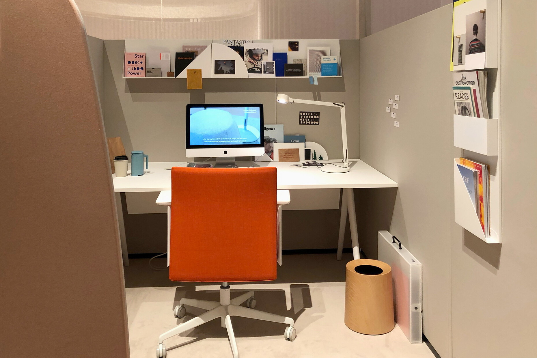Das Cubicle ist zurück: Lievore Altherr haben für Arper eine softe Version des berühmten Büroquaders entworfen – mit abgerundeten Ecken, sanften Farben und in modularer Bauweise. Für die persönliche Komfortzone gibt es zudem eine Auswahl an Accessoires aus Metall in mattem Weiß und dunklen Grau zum Einhängen, vom Zeitschriftenhalter über ein Whiteboard bis zum kleinen Spiegel. (am)