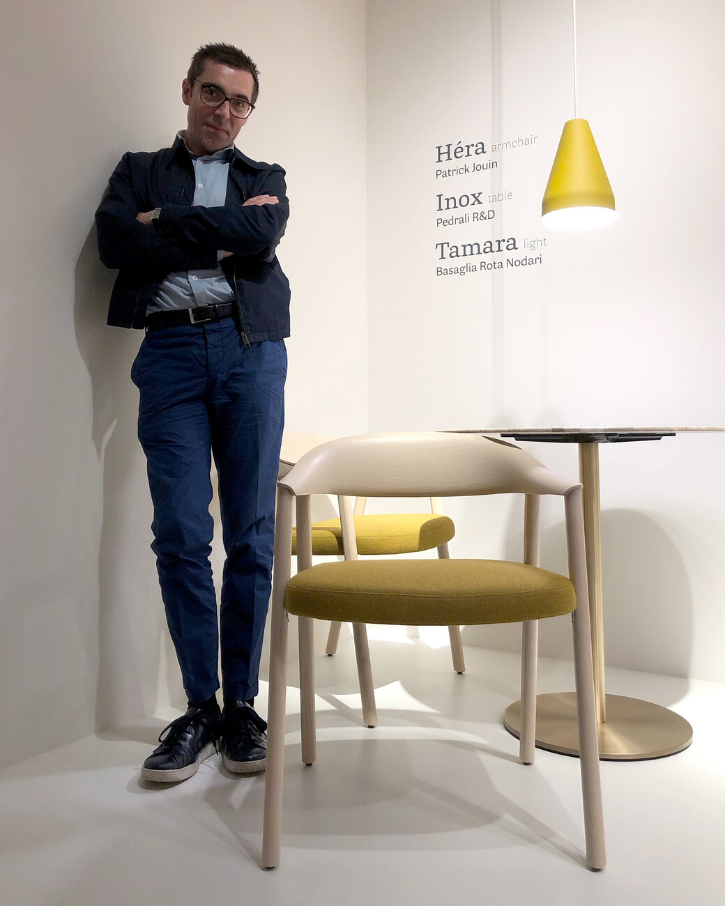 "Héra" heißt der neue Stuhl von Patrick Jouin für Pedrali, der eine Technik aufgreift, die schon den Stuhl "Frida" (2008) von Odo Fioravanti zum Erfolg führte: Die Rückenlehne wird aus Schichtholz in ihre filigrane Form gebogen und geht so sanft in die Armlehnen über. Aus Eschen- oder Walnussholz und mit gepolsterten Sitz bietet der Stuhl sowohl ästhetisch wie haptisch eine angenehme Erfahrung. (am)