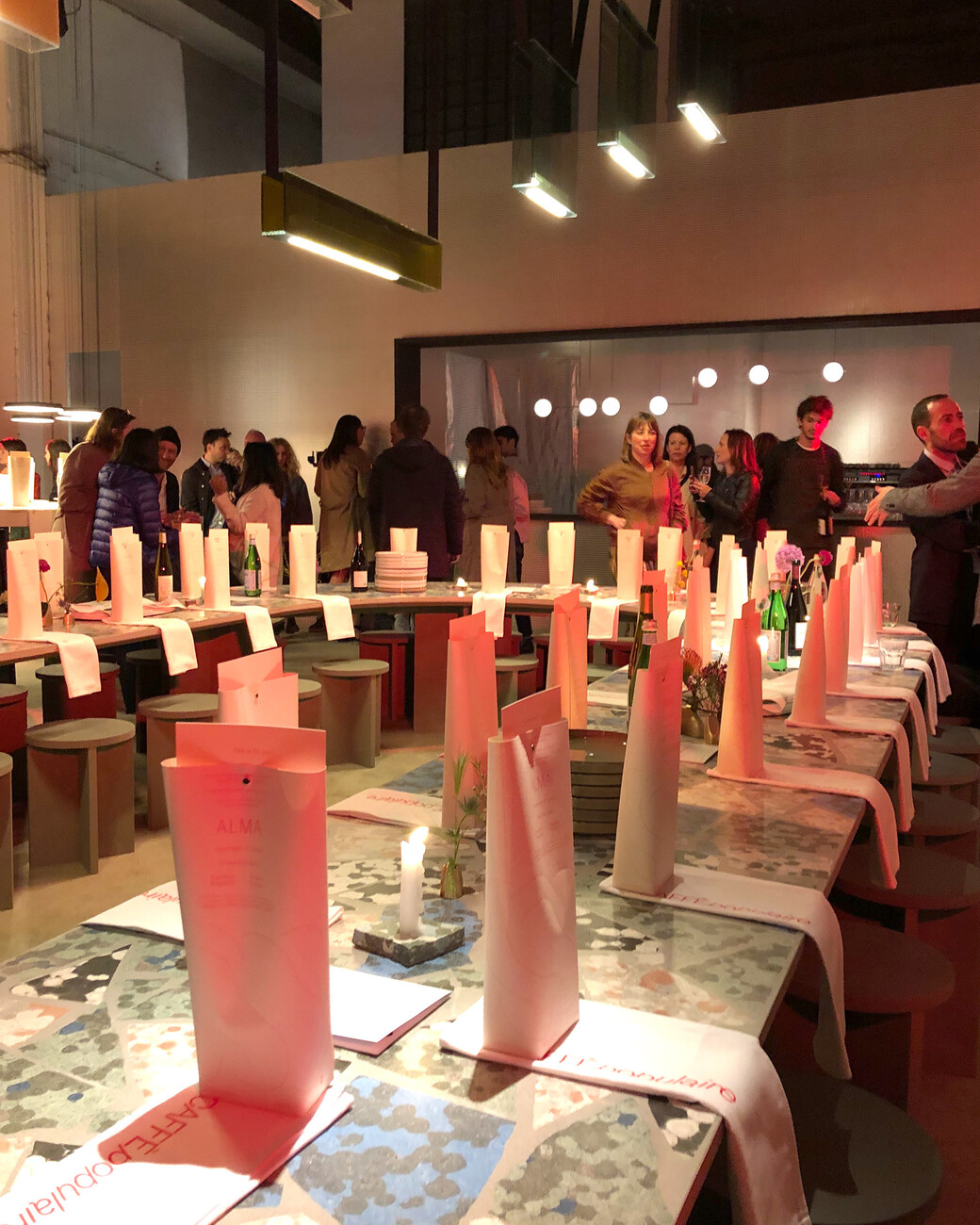 About last night: Danke Lambert & Fils, für ein ausgezeichnetes Dinner in den Alcova-Hallen nördlich des Stadtzentrums. Mit dem Caffè Populaire hat das kanadische Leuchtenlabel gemeinsam mit DWA Studio einen besonderen Markenauftritt hingelegt. Auf den Tellern gab es unter anderem neu designte Pasta – "Alma" von Chiara Andreatti, welche bezaubernder Weise besonders viel Soße in ihren Hohlraum aufnimmt. (mh)