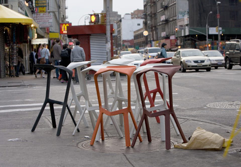 "Die Story des Miura Hockers in Form einer Fotostrecke im Herzen der pulsierenden Metropole New York. Der Photoapparat wird zum Auge eines Detektivs, das den Hocker durch die Stadt verfolgt. Man spürt die fieberhafte Jagd durch Menschenmengen und Verkehr. Hört Lärm, spürt Gerüche, Hitze und Stress - wie in einer Krimiverfilmung."