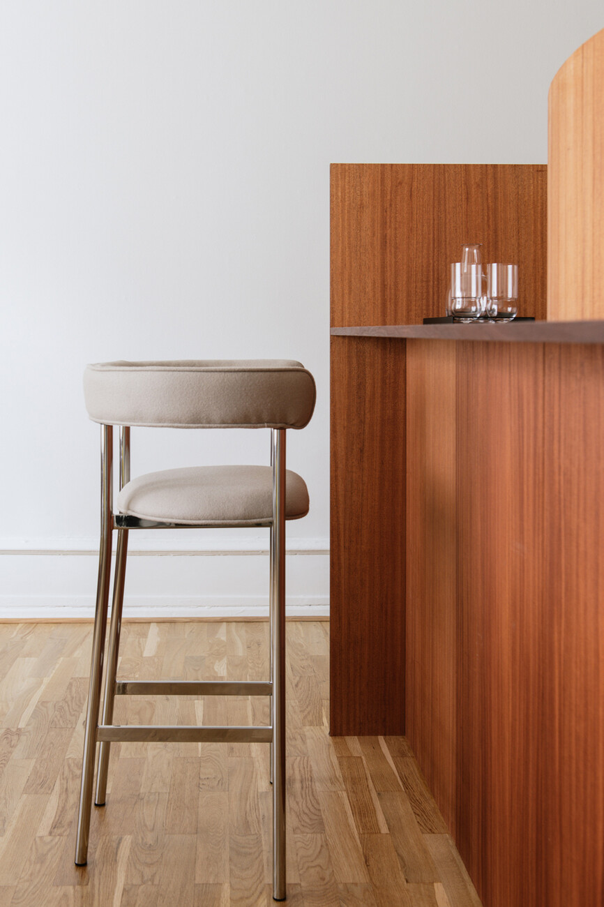 Der Name "Font" bezieht sich auf typografische Schriftarten und leitet sich aus den unterschiedlichen Dicken der Stuhlkissen und Rückenlehnen ab: So heißt der Esszimmerstuhl "Regular", der Loungesessel "Bold" und der Barhocker "Light". Dabei sind alle Möbel durch eine gemeinsame gestalterische Sprache miteinander verbunden, die David Thulstrup aus verschiedenen Kreis-Geometrien entwickelte. Ein Beispiel ist das "Font Light Bar Sofa", dessen Form aus der Verschmelzung zweier Barhocker entstand. Trotz des einheitlichen Designs, reagiert jedes Möbel individuell auf die spezifischen Anforderungen, die an die jeweilige Typologie gestellt werden. Entsprechend unterschiedlich ist zum Beispiel der Komfortanspruch, was sich am Volumen und der Größe der Polsterteile ablesen lässt, die beim Barhocker "Light Stool" geringer sind als beim Lounge-Sessel "Bold Lounge Chair".