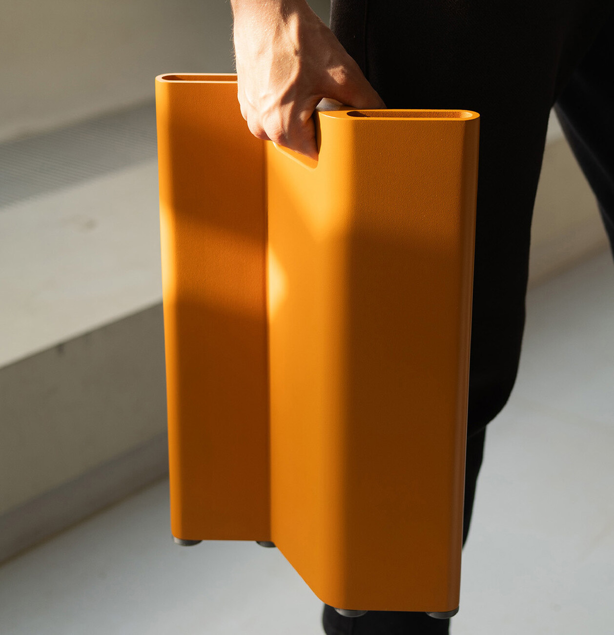 Moritz Walter: Bei dem Projekt habe ich mich mit drei Problematiken beschäftigt, die das Heizen von Innenräumen mit sich bringt: Die meisten Heizsysteme gehen mit einer recht teuren und aufwändigen Infrastruktur einher. Zudem bieten fossile Energieträger, wie sie in den meisten Heizsystemen noch verwendet werden, keine Perspektive. Fest installierte Systeme heizen ganze Räume auf, anstatt individuell unterschiedliche Wärme zu spenden. Strom ist einer der wenigen nachhaltig erzeugbaren Energieträger und damit auch zukunftsfähig. Ich möchte die Heizung zielgerichteter und effizienter denken, mehr auf die Bedürfnisse des Menschen ausgerichtet. Daraus ist die Produktfamilie "Hotspot" entstanden, mit einem Panel für großflächigere Einsätze und mobile Wärmespeicher, die für die körpernahe Wärmeübertragung dienen. In meiner Recherche habe ich mich auf dem Markt nach dezentralen Heizlösungen umgeschaut und festgestellt, dass es in erster Linie Produkte sind, die festinstallierte Systeme nur unzureichend und ineffizient imitieren. Strom als eine flexible Energieform, die nicht an Rohrsysteme des Gebäudes gebunden ist, bietet eigentlich viele Vorteile, denn die Wärme kann direkt zum Menschen gebracht werden, wo sie gebraucht wird. Diese Flexibilität ermöglicht viel Gestaltungsspielraum für neue Typologien. In dieser Hinsicht sollte die Gestaltung auch eher der eines Möbels ähneln, als eine technische Anmutung zu haben. Sie sollte in jeder Hinsicht ein bereichernder Bestandteil der Wohnumgebung sein.
