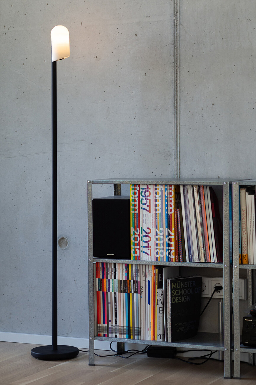 Moritz Walter: "Nomad" habe ich zusammen mit meiner Kommilitonin Michelle Müller gestaltet – die Leuchte war das Ergebnis eines Kurses an der Hochschule zum Thema Solarenergie. Wir wollten eine autarke Leuchte gestalten, bei der die Solarzelle Teil des Interaktionskonzepts ist. Das bedeutet, man muss die Leuchte auf den Kopf drehen, um sie auszuschalten und die Solarzelle aufzuladen. Diese Geste soll dazu beitragen, die Solarzelle als essenziellen Teil der Leuchte zu verstehen und das Gefühl für die Solarenergie ein wenig greifbarer werden zu lassen. Dafür haben wir auch eine kleine LED-Leiste in den Steg integriert, die je nach Position im Raum anzeigt, wo die optimale Aufladesituation im Raum ist. "Modi" war vor allem von modernen Wohnsituationen mit begrenztem Raum inspiriert. Die Leuchte bietet zwei Lichtszenarien: einen direkten Lichtstrahl, um als klassische Leseleuchte zu funktionieren und ein diffuses Stimmungslicht für gemeinschaftliche Situationen.