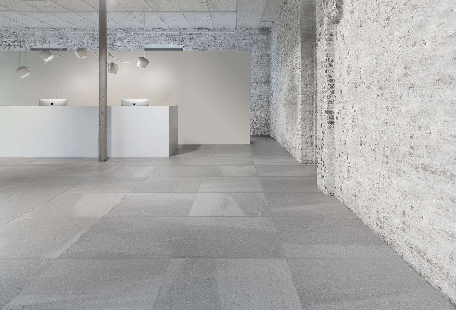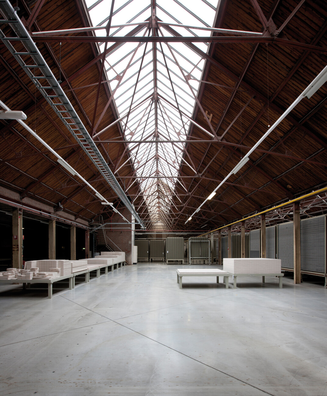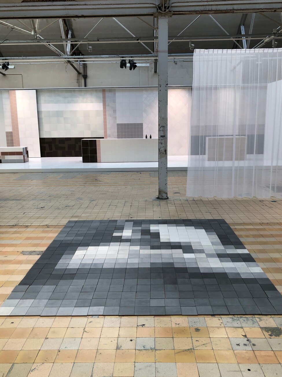 Das großzügige Designatelier in Maastricht bietet zudem die Möglichkeit mit charakteristische Oberflächen von Mosa auf eine reale Tuchfühlung zu gehen: In den einstigen Hallen der Porzellanfabrik, mit der die Erfolgsgeschichte von Mosa im Jahr 1883 begann, ist heute die Zukunft zu Hause: In den hellen Räumen im ersten Stock hat die gesamte Kollektion für Wände, Böden, Fassaden und Terrassen einen Platz gefunden. Alle Optionen für individuelle Projekte können hier direkt am Muster ausprobiert werden. Zahlreiche Installationen geben eine Idee für weitere Kombinationsmöglichkeiten. Das die Keramikfliesen von Mosa auch zur Kunst werden können, zeigt in der Ausstellung ein Teil des Werkes "Plongeon" von Noemi Sjöberg. Im Original 22,20 Meter lang und 3,60 Meter hoch, ließ sich die Künstlerin von den Serien "Scenes", "Global" und "Softgrip" inspirieren: Auf der Basis einer Fotografie aus den Zwanziger Jahren eines Schwimmers schuf sie mit den Fliesen von Mosa ein abstraktes Pixelpuzzle, das bei einiger Entfernung das Ursprungsbild zu erkennen gibt. In den Hallen des Designateliers fügte die Künstlerin das Wandbild aus 3552 Fliesen zusammen, bevor es im Sommer diesen Jahres nach Paris transportiert wurde und dort unter der Brücke Pont du Garigliano über der Seine angebracht ist.