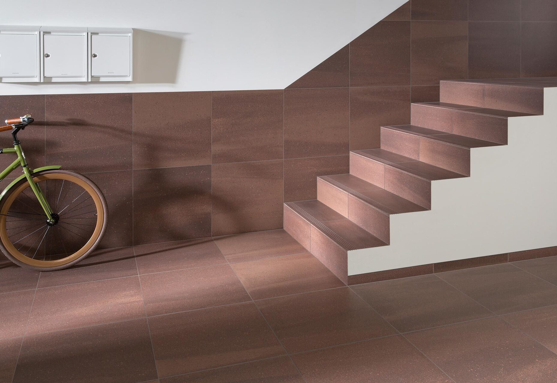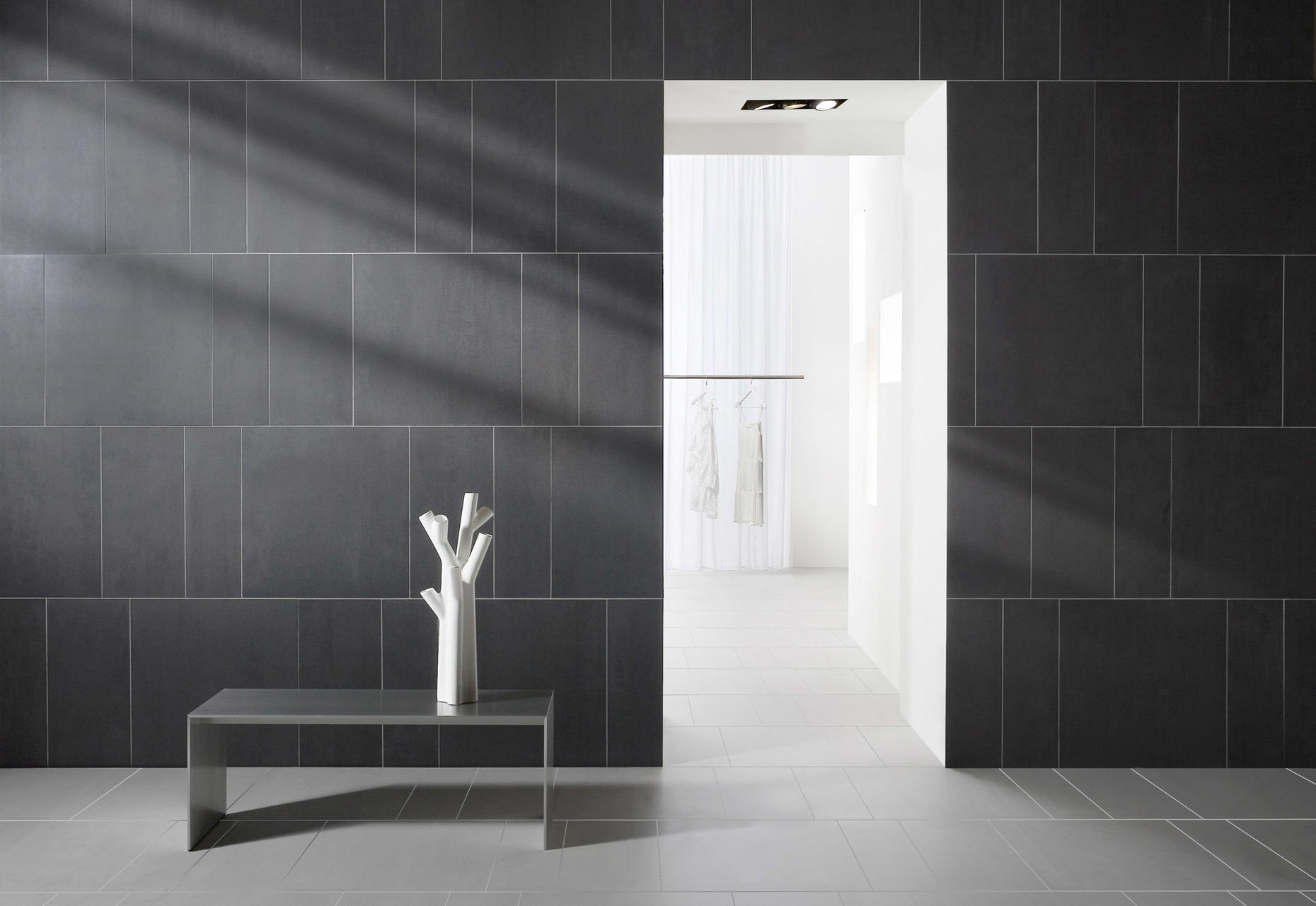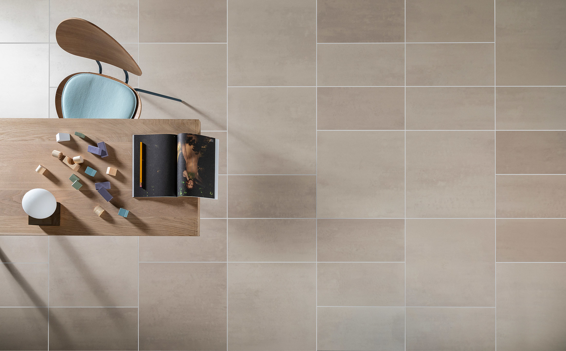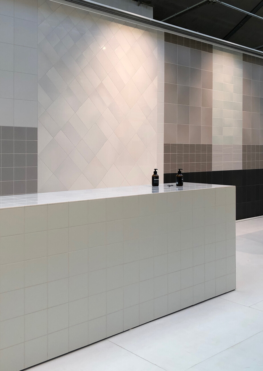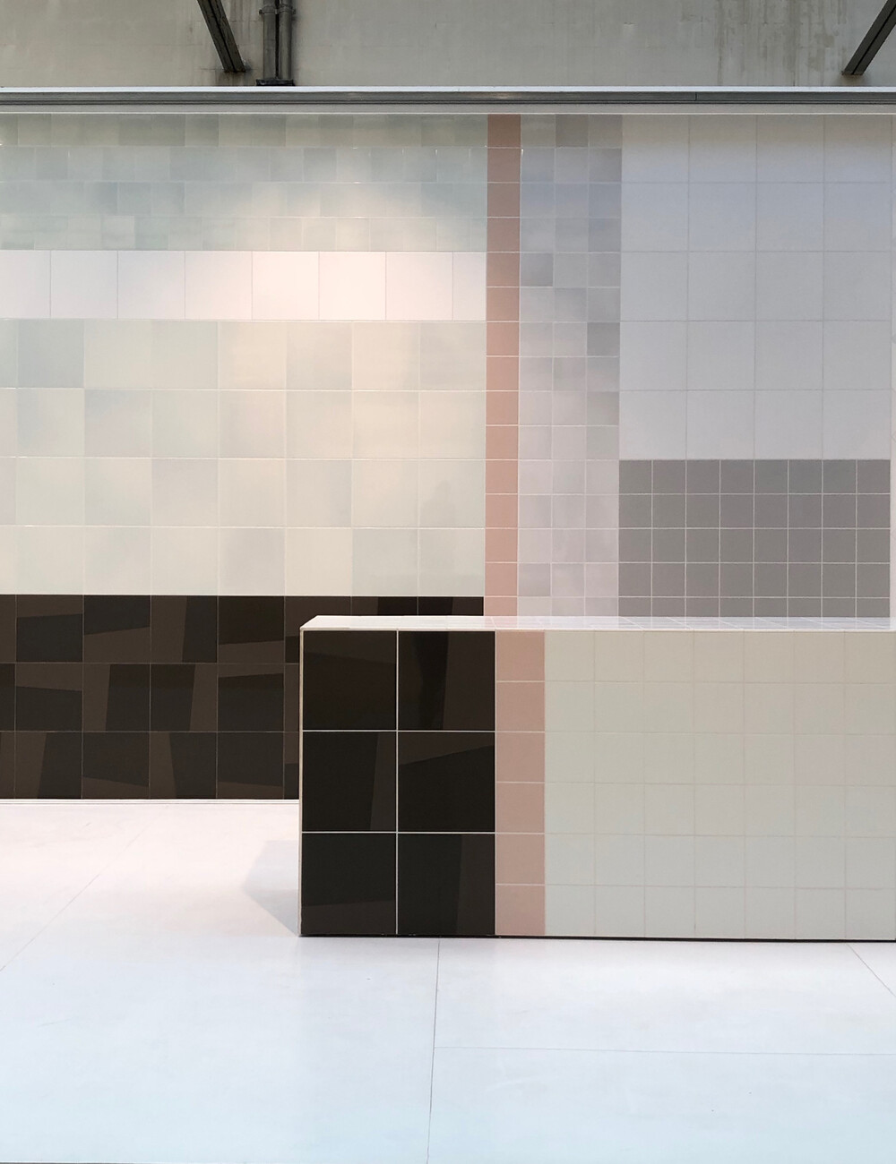 Wie das künstlerische Wandbild, ist auch jede Fliese von Mosa für sich einzigartig in ihrer Optik: "Das Sprühgranulat verleiht den Fliesen eine zufällige Variation, die optisch dynamisch wirkt. Jede Fliese und Kollektion ist anders und wirkt im Zusammenspiel trotzdem homogen", erklärt die Industriedesignerin Mireille Meijs. Mit der Variation aus feinen und groben Keramikflocken kann die Wirkung der Textur verändert werden, ohne dass die angenehme Haptik gestört wird. Jede Fliese ist ein Unikat – "Quartz" zeigt beispielsweise ein texturiertes Relief mit kristallartigen Partikeln, bei "Terra Maestricht" erhält das Produkt durch die Feinheit des kohäsiven Pulvers ein außergewöhnliches Muster. Für den Ausdruck der Individualität in der Farbe steht zudem eine Palette von derzeit 32 Tönen zur Verfügung. Das auch bei neutralen, natürlichen Nuancen eine dynamische Lebendigkeit möglich ist, zeigt die "μ-Serie": Das Gemisch aus winzigen, intensiven Keramikpigmenten in verschiedenen Farben erzeugt je nach Lichteinfall einen wechselnden Effekt und eine optische Tiefe. Mosa strebt nach großen Variationen für einzelne Projekte, will aber nicht trendy sein: "Wir bringen eine Fliese nur auf den Markt, wenn wir überzeugt sind, dass sie in jeder Hinsicht perfekt ist", sagt Mireille Meijs, Industriedesignerin bei Mosa.