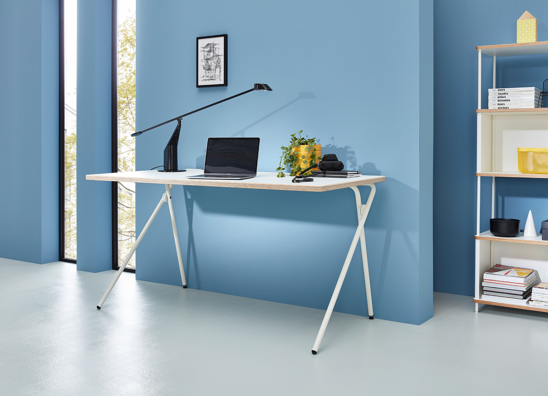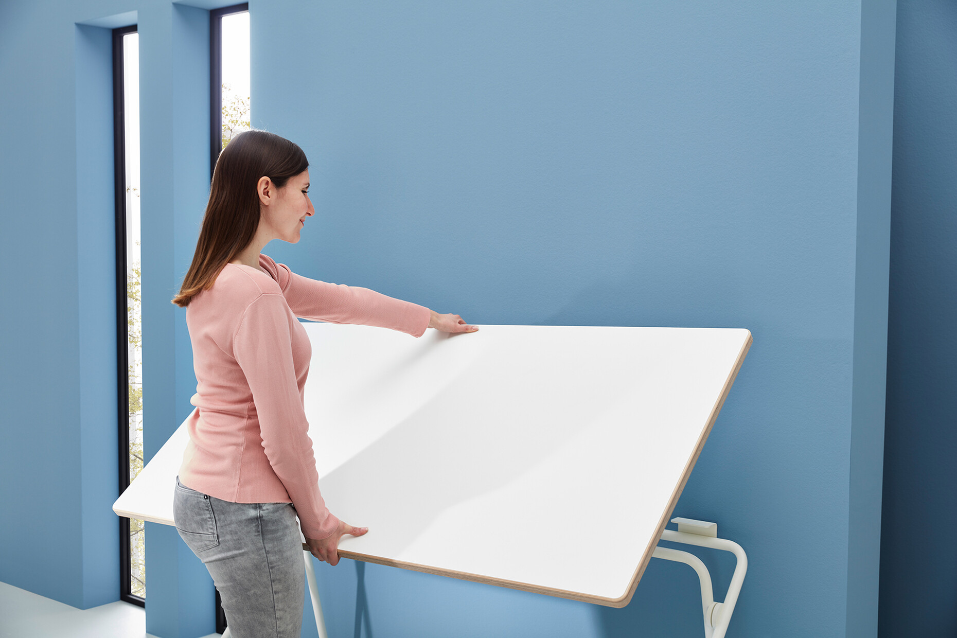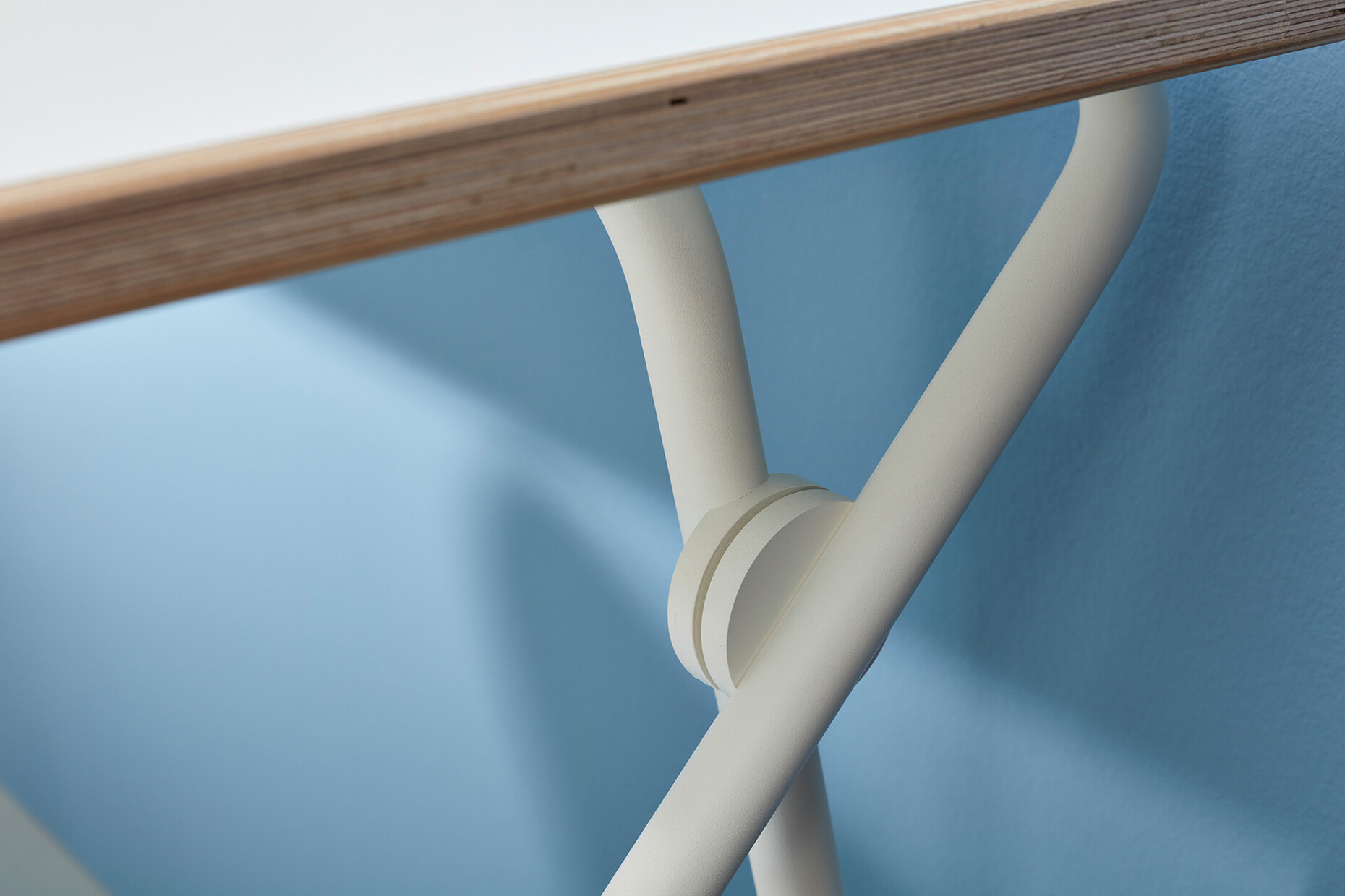 Das pulverbeschichtete Metallgestell von "PLATO" in graphitschwarz oder reinweiß ist klappbar und lässt sich schnell und einfach mit der Platte aus Leichtbau-Schichtholz ausstatten. Dank der praktischen Größe von 149 x 75 Zentimetern dient der Tisch dann ebenso als temporäres Büro wie als Esstisch - lebensnah gedacht, wie alle Produkte von Müller small living. Je nach Wunsch kann die Beschichtung der Platte in Weiß, Anthrazit oder Schwarz Matt gewählt werden. Mit klarer Form und neutralen Farben macht "PLATO" von Müller small living so in jeder Architektur eine gute Figur und lässt sich zudem platzsparend verstauen. Das Design stammt von den NachwuchsdesignerInnen Alissa Arends, Leon Bucher und Yelim Kim der Bauhaus-Universität Weimar. (am)