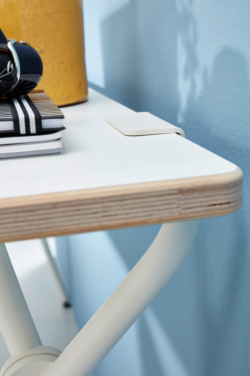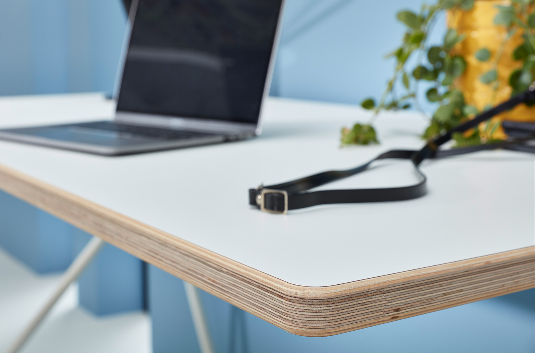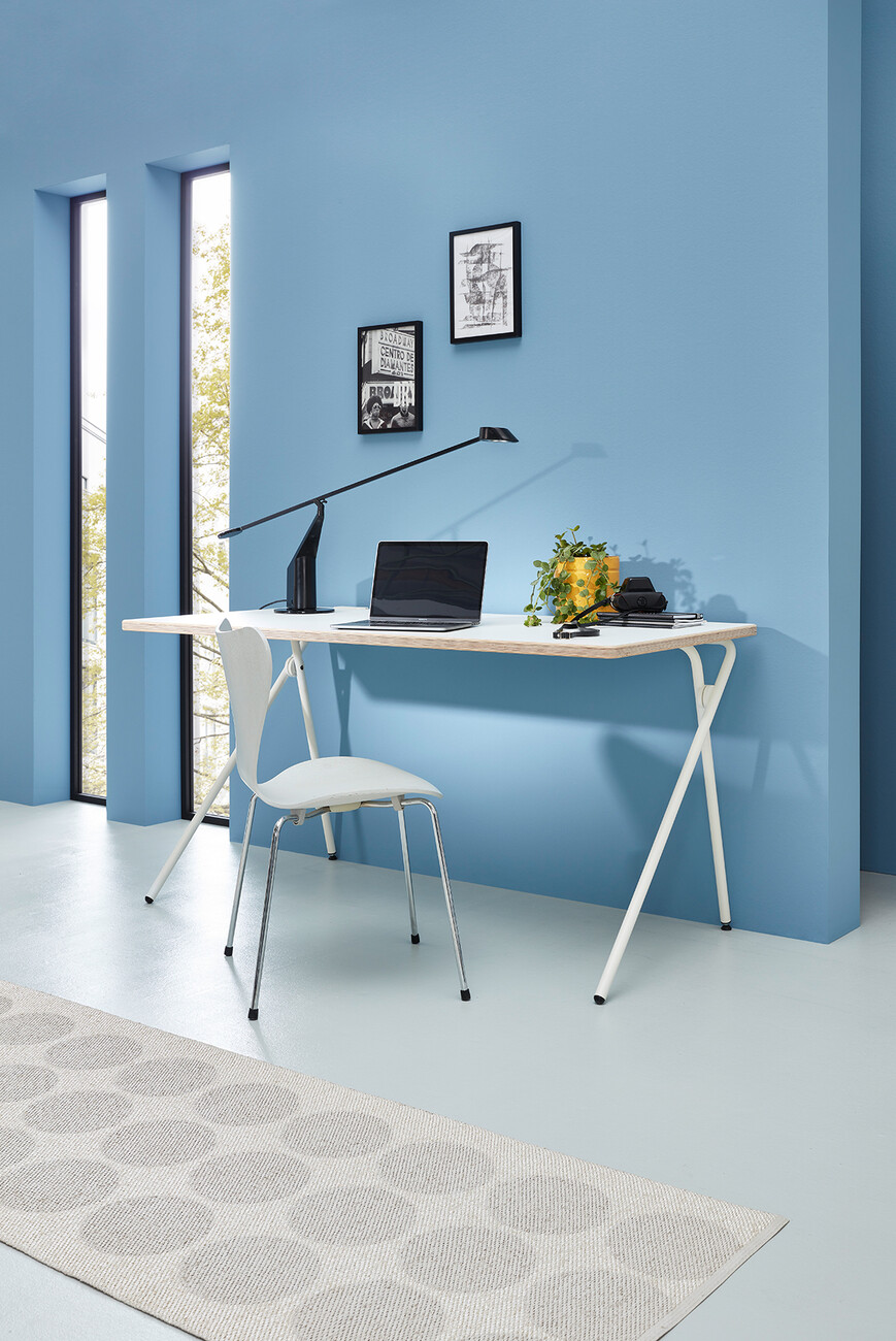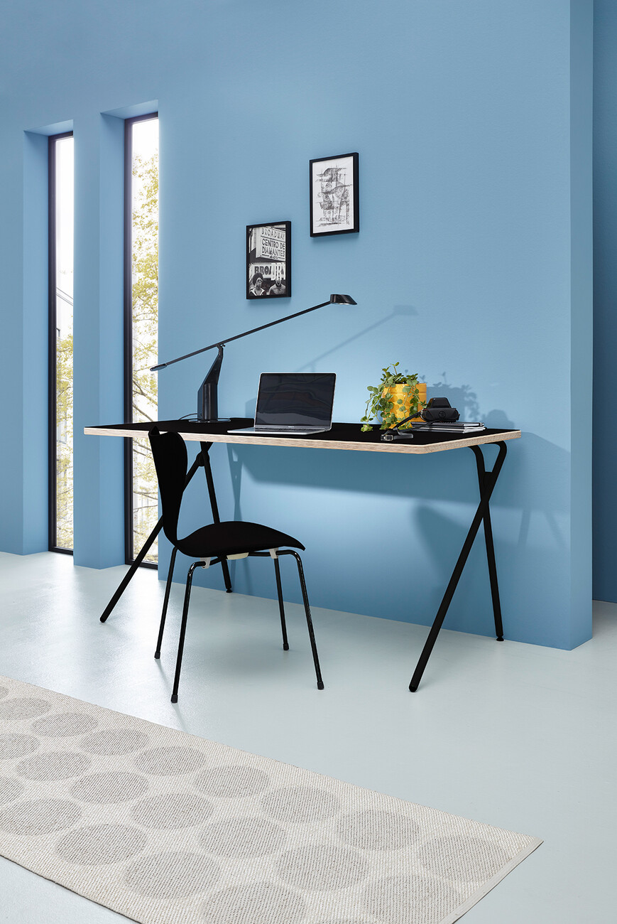 Das pulverbeschichtete Metallgestell von "PLATO" in graphitschwarz oder reinweiß ist klappbar und lässt sich schnell und einfach mit der Platte aus Leichtbau-Schichtholz ausstatten. Dank der praktischen Größe von 149 x 75 Zentimetern dient der Tisch dann ebenso als temporäres Büro wie als Esstisch - lebensnah gedacht, wie alle Produkte von Müller small living. Je nach Wunsch kann die Beschichtung der Platte in Weiß, Anthrazit oder Schwarz Matt gewählt werden. Mit klarer Form und neutralen Farben macht "PLATO" von Müller small living so in jeder Architektur eine gute Figur und lässt sich zudem platzsparend verstauen. Das Design stammt von den NachwuchsdesignerInnen Alissa Arends, Leon Bucher und Yelim Kim der Bauhaus-Universität Weimar. (am)