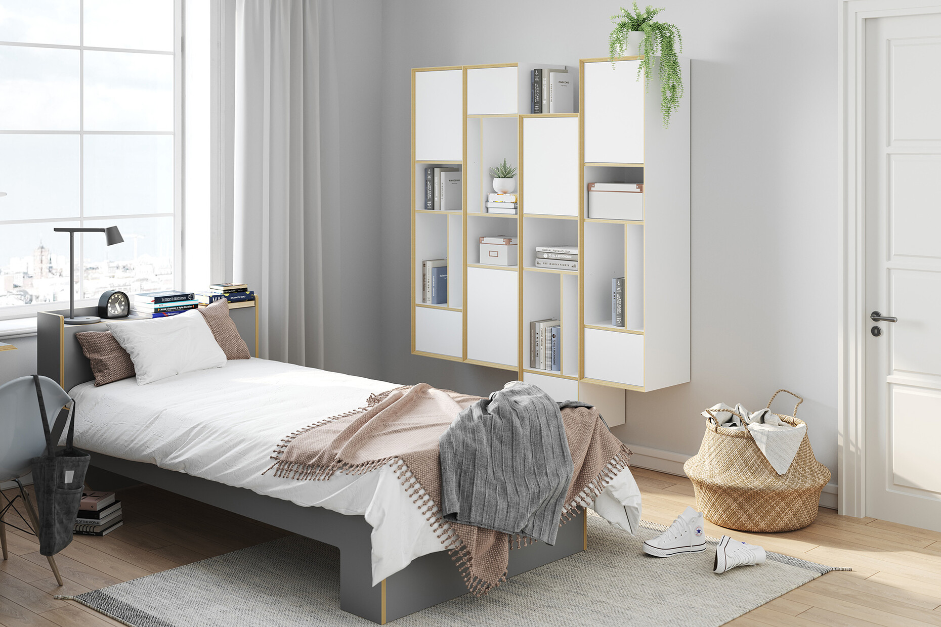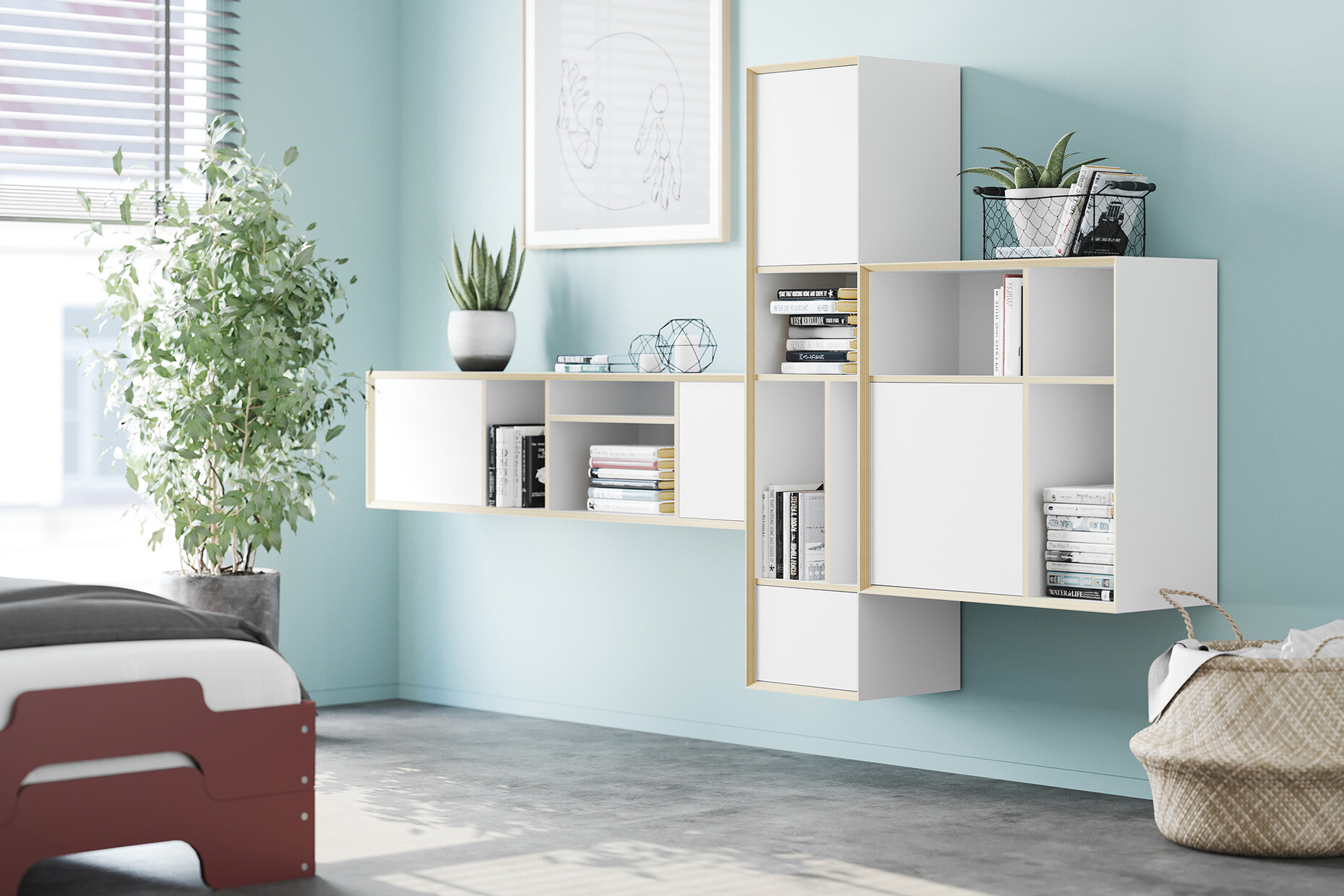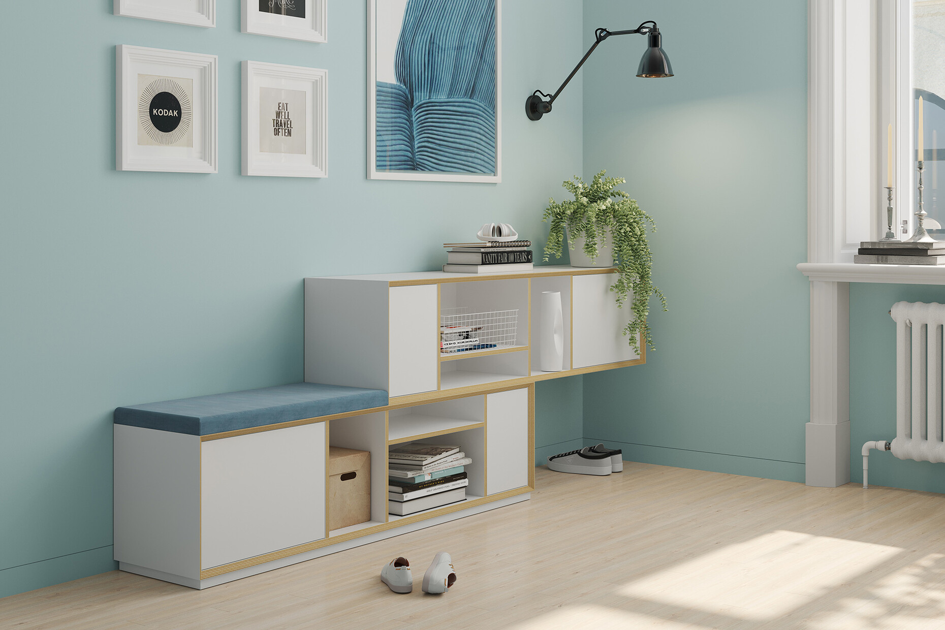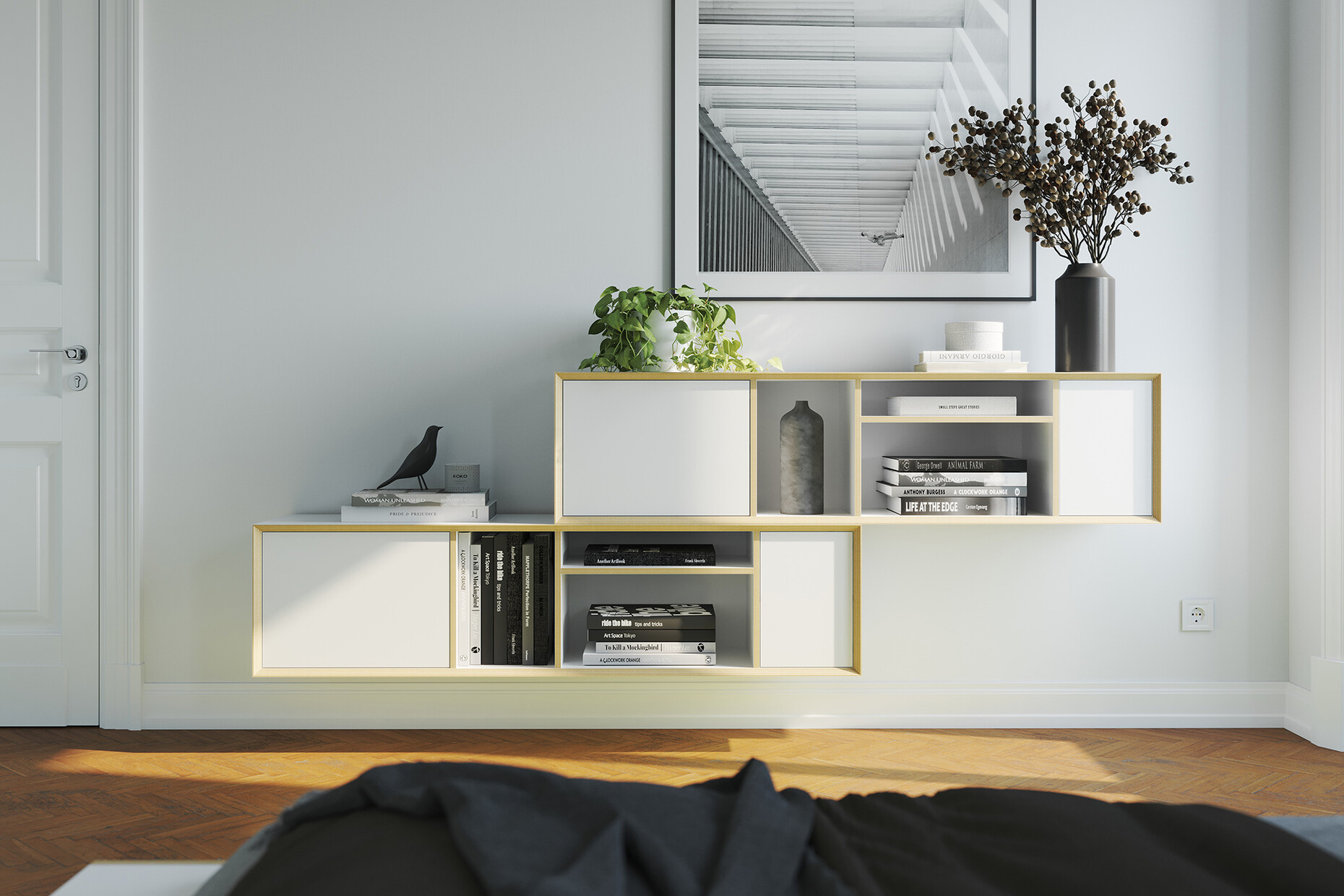 Sascha Sartory: Die Originalvariante von "Vertiko" basiert wie gesagt auf quadratischen Elementen, die vor allem als Basis für eine Regalwand dienen sollten. Mit der Zeit haben wir aber festgestellt, dass wir zwar einen großen Einsatzbereich damit abdecken können, aber eben nicht alles. Ein Beispiel dafür wäre der Flurbereich in einer Wohnung, wo ja generell nicht so viel Platz vorhanden ist, oder der Wohnzimmerbereich, in dem man ein spezifisches Hifi-Möbel unterbringen will. Deshalb haben wir uns von der würfelförmigen Konfiguration gelöst, um bestimmte Formate und Funktionen abdecken zu können – zum Beispiel um einen Fernseher im Wohnzimmer oder eine Sitzbank im Flur unterbringen zu können. Dadurch ist "Vertiko Wide" entstanden, für das ebenfalls das Prinzip galt, mit einem Modul einen großen Bereich abzudecken. Neben "Vertiko Wide" gibt es auch "Vertiko Vertical", das genauso funktioniert – nur eben nicht horizontal, sondern vertikal. Zudem sind beide Module miteinander und mit dem ursprünglichen quadratischen Modul kombinierbar.