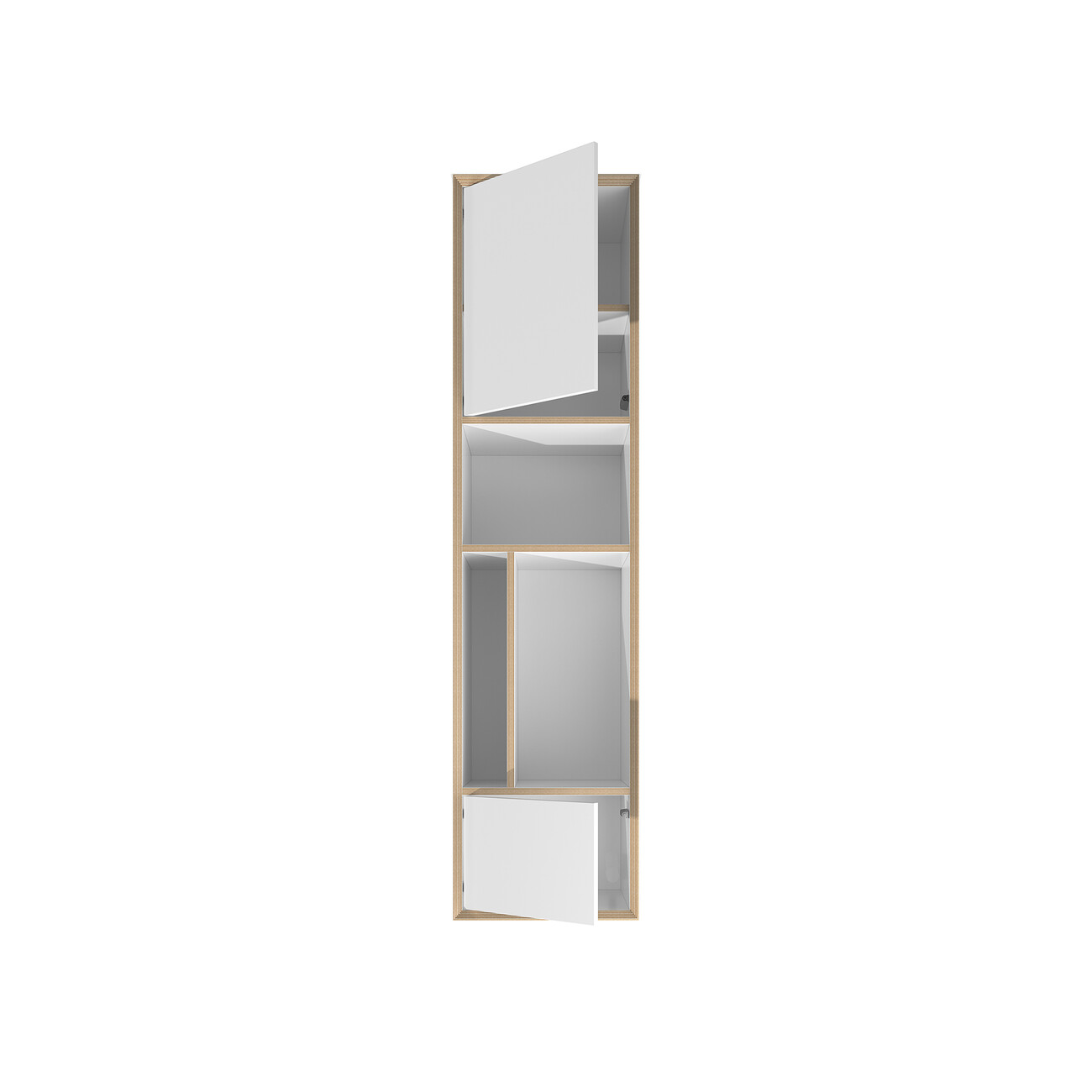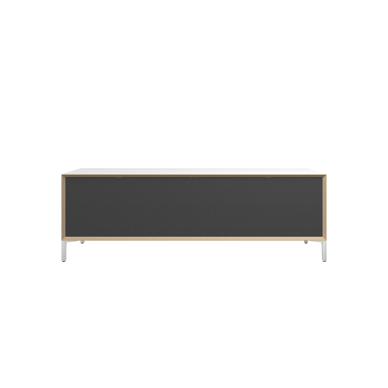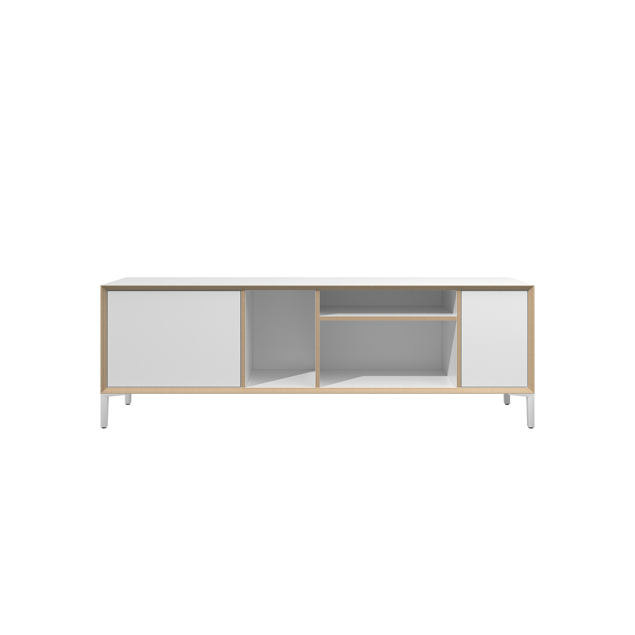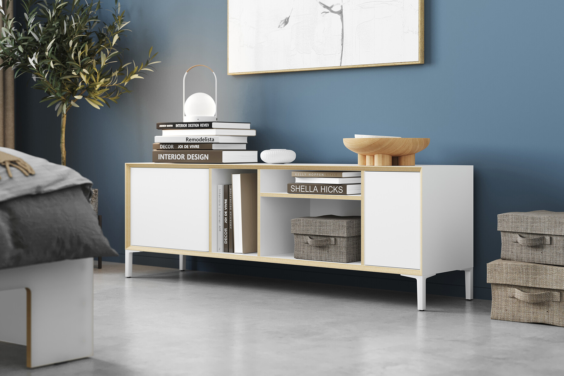 Sascha Sartory: Die Originalvariante von "Vertiko" basiert wie gesagt auf quadratischen Elementen, die vor allem als Basis für eine Regalwand dienen sollten. Mit der Zeit haben wir aber festgestellt, dass wir zwar einen großen Einsatzbereich damit abdecken können, aber eben nicht alles. Ein Beispiel dafür wäre der Flurbereich in einer Wohnung, wo ja generell nicht so viel Platz vorhanden ist, oder der Wohnzimmerbereich, in dem man ein spezifisches Hifi-Möbel unterbringen will. Deshalb haben wir uns von der würfelförmigen Konfiguration gelöst, um bestimmte Formate und Funktionen abdecken zu können – zum Beispiel um einen Fernseher im Wohnzimmer oder eine Sitzbank im Flur unterbringen zu können. Dadurch ist "Vertiko Wide" entstanden, für das ebenfalls das Prinzip galt, mit einem Modul einen großen Bereich abzudecken. Neben "Vertiko Wide" gibt es auch "Vertiko Vertical", das genauso funktioniert – nur eben nicht horizontal, sondern vertikal. Zudem sind beide Module miteinander und mit dem ursprünglichen quadratischen Modul kombinierbar.