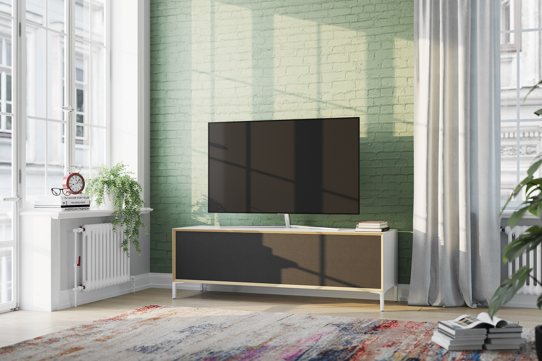 Sascha Sartory: "Vertiko HiFi" wurde speziell für das Wohnzimmer entworfen, um etwa ein Sideboard daraus zu generieren. Daraus haben sich dann funktionale Vorgaben entwickelt, um verschiedene elektronische Geräte wie etwa einen Fernseher, eine Hifi-Anlage oder eine Apple TV-Box problemlos integrieren zu können – zum Beispiel indem sich die Kabel der Geräte problemlos dort unterbringen lassen. Diese Verkabelungsmöglichkeiten sind der Kern von "Vertiko HiFi", indem sich auch die verschiedenen Fächer im Möbel problemlos verkabeln lassen. Ein weiteres Thema ist die Wärmeerzeugung der jeweiligen Geräte. Deshalb ist die Front von "Vertiko HiFi" mit einem speziellen Stoff bezogen, der es zum einen erlaubt, Funksignale zu senden oder Lautsprecherboxen dahinter zu platzieren, der zum andern aber auch die Wärme aus dem Innern des Möbels herauslässt und so eine Überhitzung verhindert.
