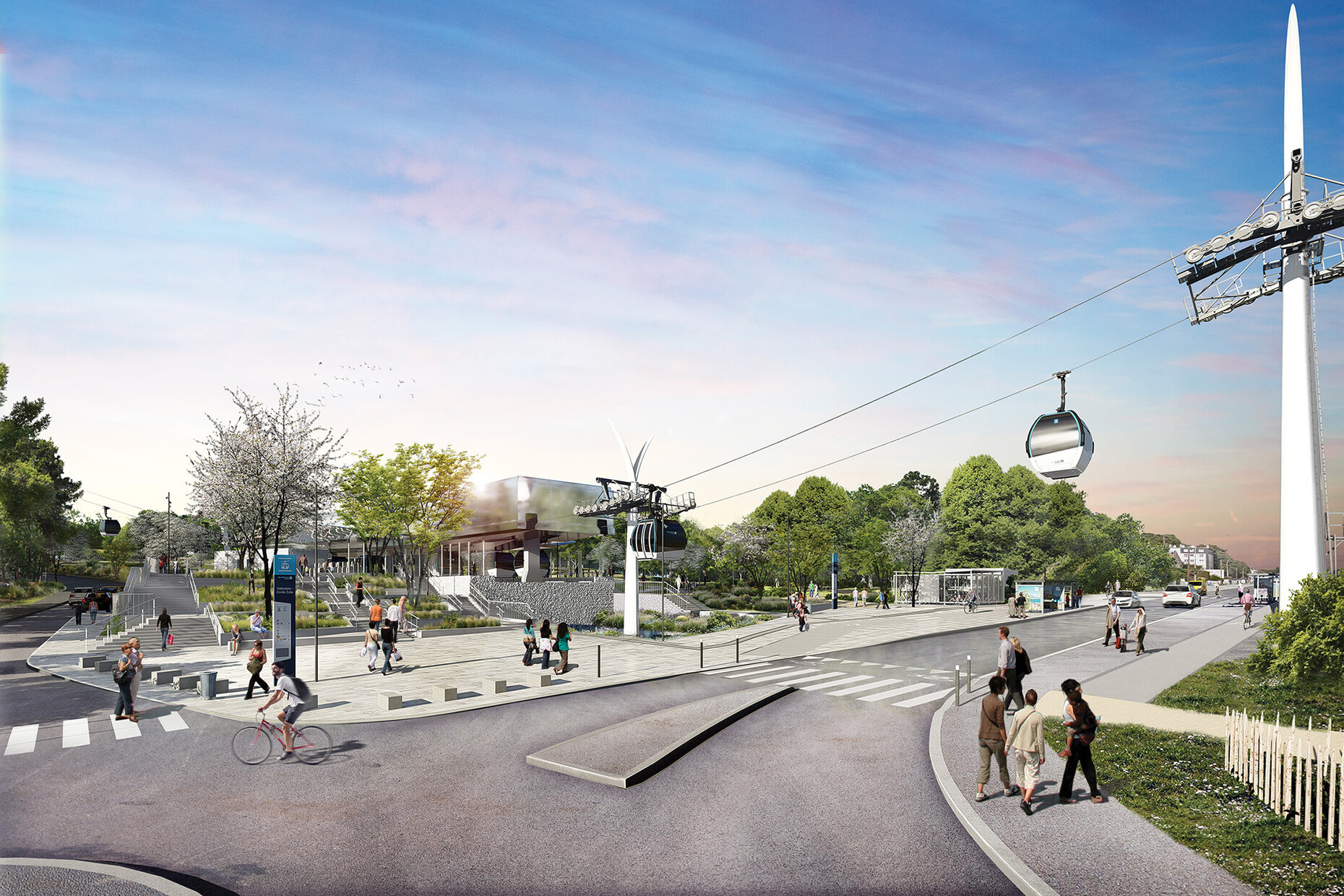 Die multimodale Verknüpfung und Ergänzung bestehender Verkehrssysteme ist eines der zentralen Mobilitätsthemen im urbanen Raum. Ein Beispiel dafür sind Seilbahnen für den öffentlichen Nahverkehr: Während diese in Europa bislang kaum genutzt werden, sind sie in asiatischen oder mittel- und südamerikanischen Metropolen bereits ein fester Bestandteil des jeweiligen Verkehrsnetzes. Europäischen Städte entdecken nun auch vermehrt das Potenzial von Seilbahnen als eine ergänzende und entlastende Mobilitätslösung, wie etwa in Form der Linie Câble 1 (C1), die gerade im Großraum von Paris realisiert wird. Dort plant der Seilbahnhersteller Doppelmayr/Garaventa zusammen mit verschiedenen Experten für Infrastrukturplanung, Landschaftsgestaltung, Tiefbau und Architektur ein urbanes Seilbahnprojekt in der Region Île-de-France. Die Linie Câble 1 (C1), die 2025 in Betrieb gehen soll, wird dazu vier verschiedene Gemeinden im Département Val-de-Marne mit einem Einzugsgebiet von circa 20.000 Einwohnern und etwa 6.000 Arbeitsplätzen miteinander verbinden.