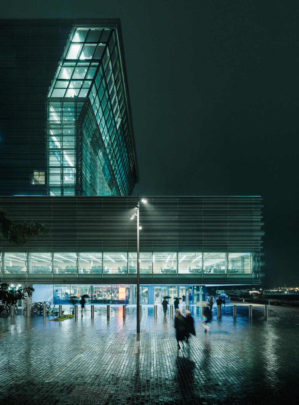 Mit dem kürzlich in Oslo eröffneten Munch Museet haben Herreros Arquitectos dem expressionistischen Oeuvre des 1944 verstorbenen norwegischen Malers und Grafikers Edvard Munch ein monumentales Gebäude gewidmet: Auf 13 Stockwerken wird der Nachlass des Künstlers mit knapp 28.000 Bestandteile ausgestellt, darunter Gemälde, Drucke, Zeichnungen, Möbel, Werkzeug und Notizen – eine der weltweit größten Sammlungen von Werken eines einzelnen Künstlers. Für den Bau aus kohlenstoffarmem Beton und recycelten Stahl entschieden sich die Architekten Jens Richter und Juan Herreros für ein einfaches wie einzigartiges Volumen: Auf einem flächig anlegten Sockel türmen sich zurückgesetzt die oberen Geschosse auf, die mit zunehmender Höhe in einer formalen Verneigung vor der Stadt münden. Verkleidet sind diese mit recycelten und perforierten Aluminiumplatten, die als Sonnenschutz dienen. Sie reflektieren in unterschiedlicher Transluzenz das Sonnenlicht und verleihen dem Bau je nach Tageszeit eine andere Wirkung. In den letzten drei Etagen ist die Fassade teils verglast und bietet inklusive der begrünten Aussichtsplattform auf dem Dach einen herrlichen Blick über die Bjørvika-Bucht.