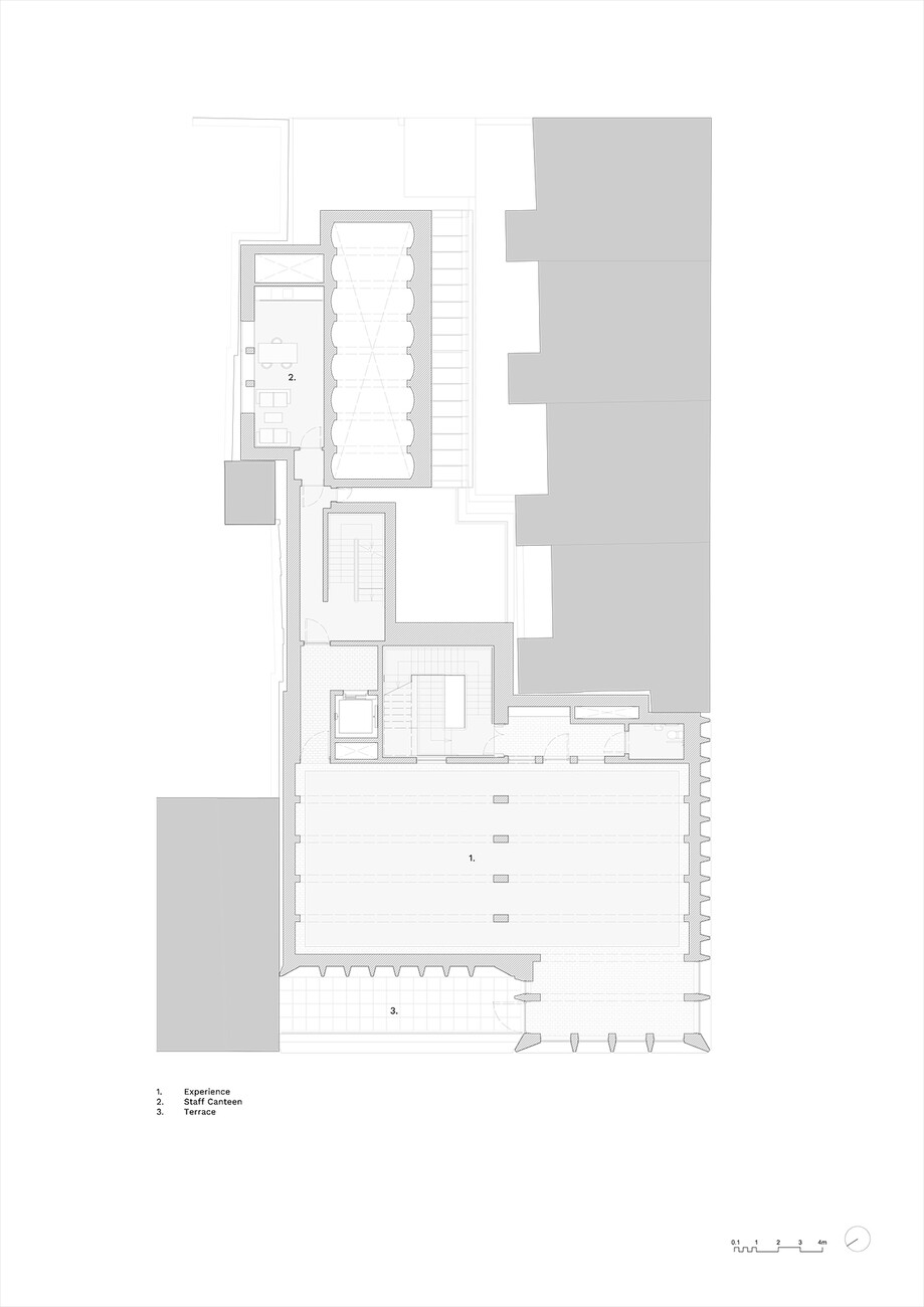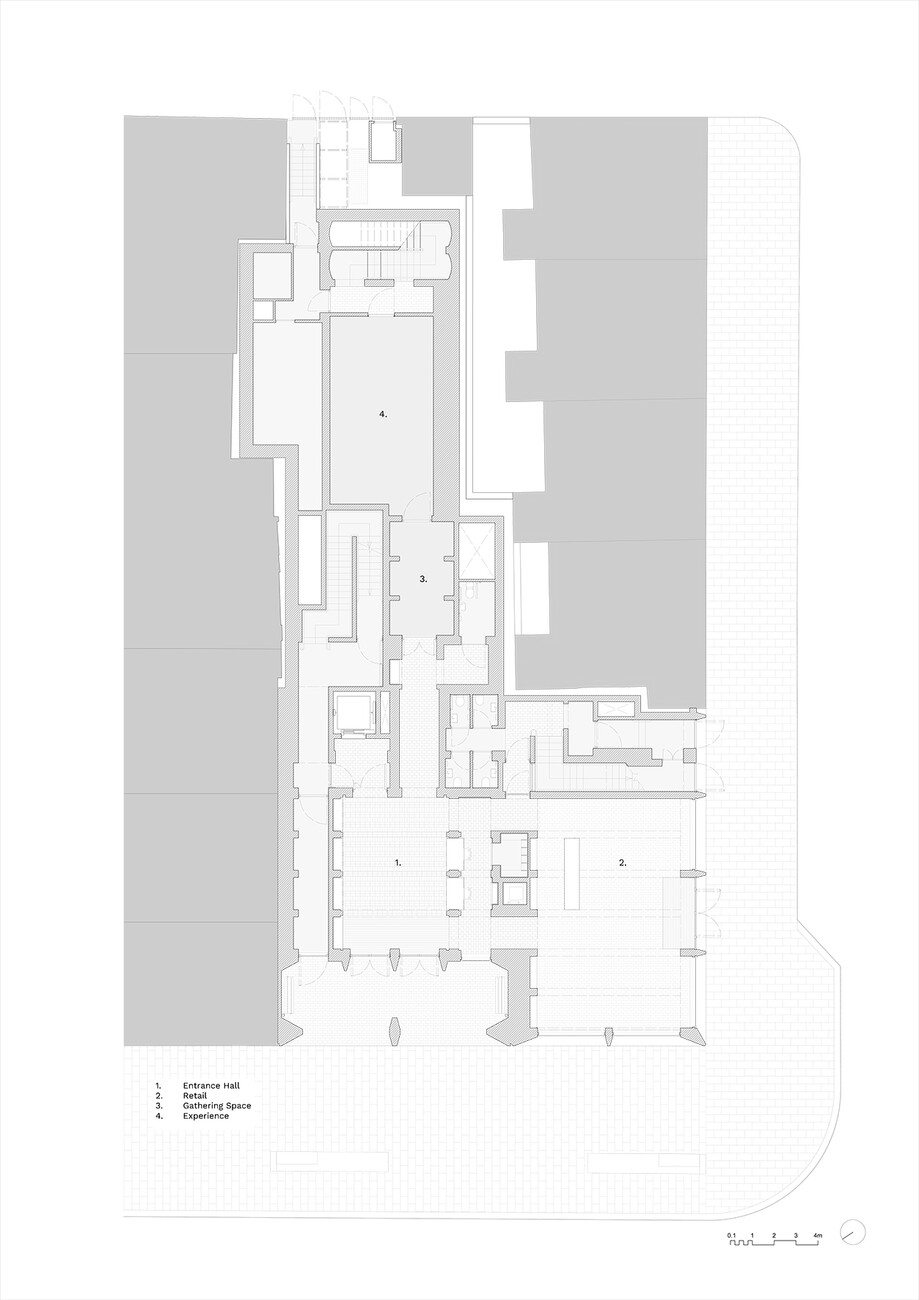 In Limerick nun translozieren Níall McLaughlin Architects die Energie des Rugby-Spiels in Form und Raum – und das inmitten der Haupteinkaufsstraße der 57.000-EinwohnerInnen-Stadt. Wie so vielen Zentren ist Limerick ebenfalls anzusehen, dass sich der Einzelhandel gewandelt hat. An der Ecke O’Connell und Cecil Street, nur zwei Häuserblocks vom Ufer des Shannon entfernt, reckt sich der Neubau empor, der nicht nur dem Sport ein Denkmal setzen sondern die gesamte Innenstadt wiederbeleben will, und der hiesigen Rugby-Community eine Heimstatt vor und nach den Spielen des lokalen "Munster Rugby"-Clubs sein soll. Die AnhängerInnen des, martialisch "The Red Army" genannten Clubs, so der Plan, können sich hier vor den Spielen auf ein paar (Dutzend) Kaltgetränke treffen und gemeinsam zum zwei Kilometer weit entfernten Thomond Park aufbrechen, wo der Verein einen Teil seiner Heimspiele austrägt. In einem Shop sollen lokale Erzeugnisse verkauft, Räume im Gebäude können für Feiern wie Hochzeiten und dergleichen von allen BewohnerInnen der Stadt gemietet werden. Das alles wird zusammengehalten von einer Ausstellung rund um den Sport selbst, die sich, konzipiert von der Londoner Agentur "Event", entlang der Begriffe Leidenschaft, Disziplin, Integrität, Solidarität und Respekt durch das Gebäude windet.