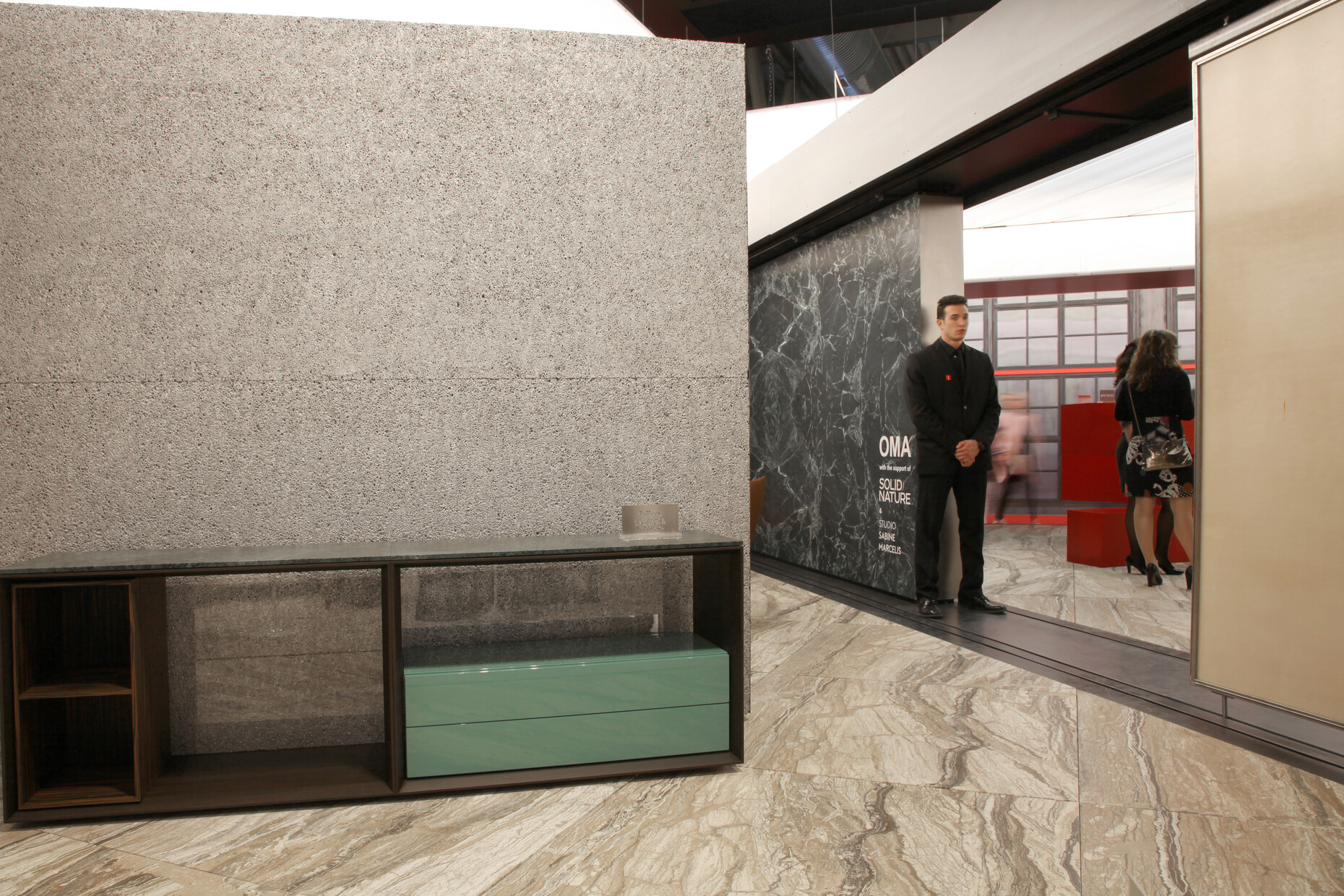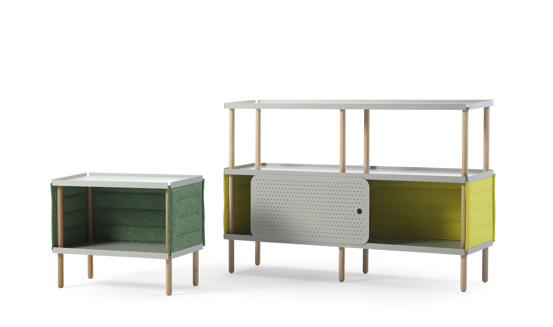 Für chaotisch veranlagte Naturen empfehlen sich naturgemäß geschlossene Aufbewahrungslösungen, die neben dem aufgeräumten Eindruck noch einen Vorteil haben: Die Fronten der Schränke, Sideboards und Kommoden bieten viel Platz für Gestaltung. Das Inhouse-Designteam von Driade beispielsweise beweist mit der Produktfamilie "Ziqqurat", dass sich Blockstreifen und Blumenmuster nicht nur auf Sommerkleidern gut machen. Der spanische Designer Jaime Hayon hat für den Quarzsteinhersteller Ceasarstone den Schrank "Clown" entworfen: Die Front des Schranks ziert ein – wer hätte es geahnt – Clownsgesicht, dessen abstehende Ohren als Türgriffe dienen. Bei De Castelli widmet man den gesamten Messestand dem Thema Stauraum – mit verschiedenen Regalen und Kastenmöbeln. Besonders gelungen ist das Sideboard "Elisabeth" mit der plissierten Front von Nathalie Dewez.