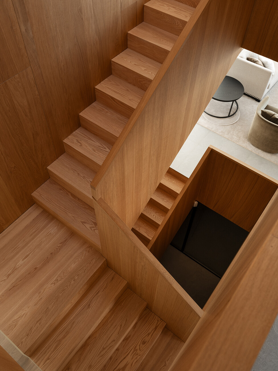 Johan Olsson: Ein weiteres Projekt, das viel über unsere Haltung erzählt, ist das Wohnhaus Späckhuggaren. Der Bauherr war ein geschiedener Vater, der mit seinen Kindern näher ans Wasser wollte. Erst dachten wir an eine Bootsform. Dann fanden wir heraus, dass dort früher ein Lagerhaus stand – also änderten wir die Entwurfsidee. Das Ergebnis ist eine Art architektonisches Tetris: Ein kleines Haus, das sich allerdings groß anfühlt – mit fließenden Übergängen, unterschiedlichen Raumhöhen und maximaler, flexibler räumlicher Effizienz. Fast wie ein Adolf-Loos-Schnitt.