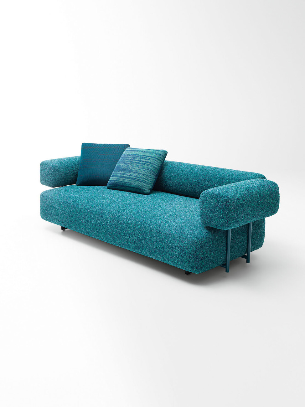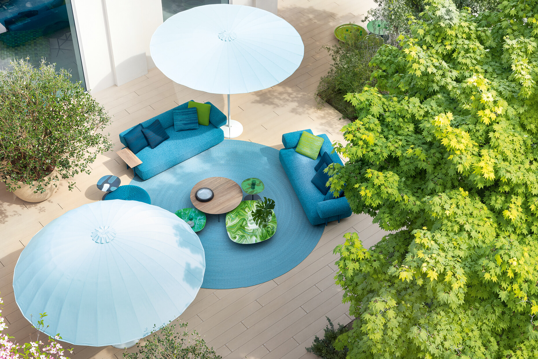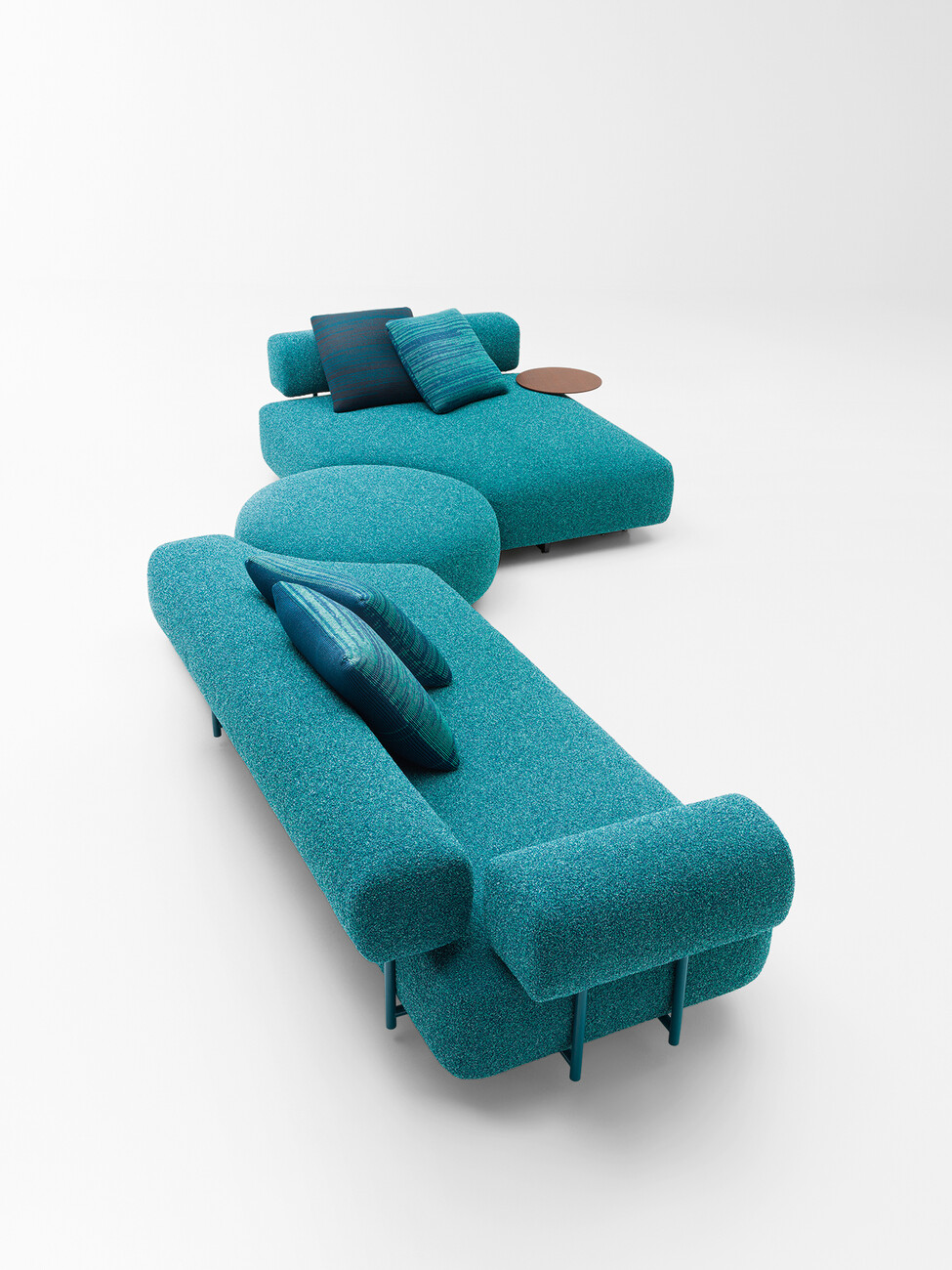 Francesco Rota ist seit langem entwerfend für Paola Lenti tätig. Für "Santorini" macht er sich die clevere Idee zu eigen, unterschiedliche Sofaelemente mit einem runden Hocker zu verbinden. Dies eröffnet die Möglichkeit, die Sitzelemente zu individuellen wie unkonventionellen Sofalandschaften zu kombinieren, die sich einfach verändern lassen. Auch runde oder rechteckige Beistelltische können an der Edelstahlkonstruktion der Couch befestigt werden. Sie sind aus Aurea Optima gefertigt, dem speziellen Multiplex-Holz von Paola Lenti, das mit einer wasserbasierten Beschichtung versehen ist. Durch die Polsterung aus nicht verformbarem Polyurethanschaum sowie die abnehmbaren Bezüge in den Outdoor-Stoffen der Kollektion ist das Sofa optimal für die Nutzung im Außenbereich ausgelegt, vom privaten Outdoor-Wohnzimmer bis hin zu großen Räumen im Objektbereich. Das muss jedoch einer Nutzung im Innenraum sicher nicht im Wege stehen. (eb)