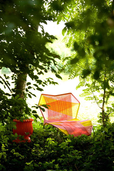 Nicht allein die Sessel und Liegen namens „Antibodi", bei denen Filzstücke zu Blüten aneinander genäht sind, haben in den letzten Jahren für Wirbel gesorgt. Auch mit „Tropicalia" hat sie das Konstruktionsprinzip der aus geflochtenen Kunststoffstreifen bestehenden Gartenliegen der fünfziger Jahre nicht einfach wiederbelebt, sondern ihm mittels Farbe, Frische und der Fröhlichkeit afrikanischer Muster eine überraschend neue Note verliehen.