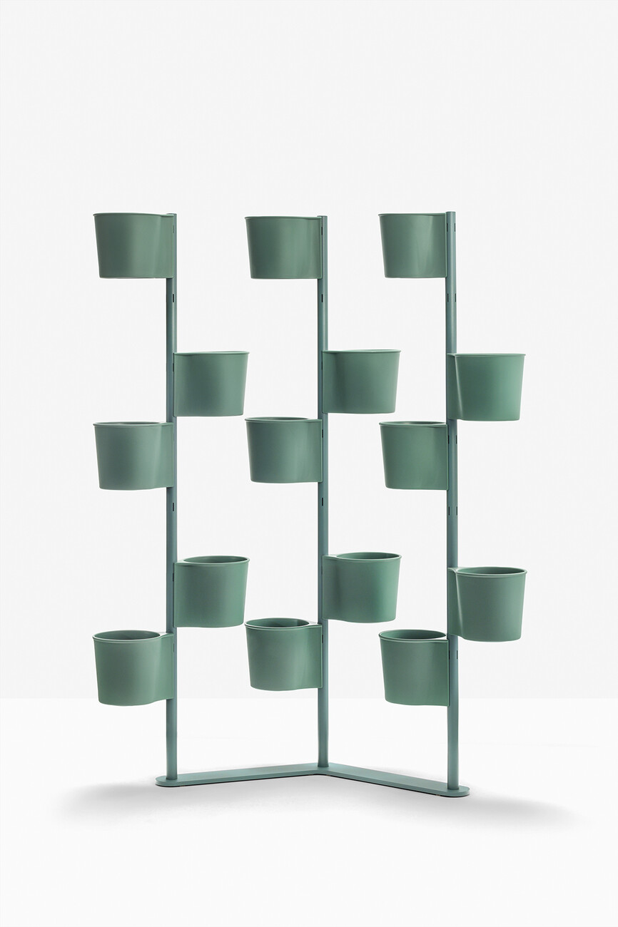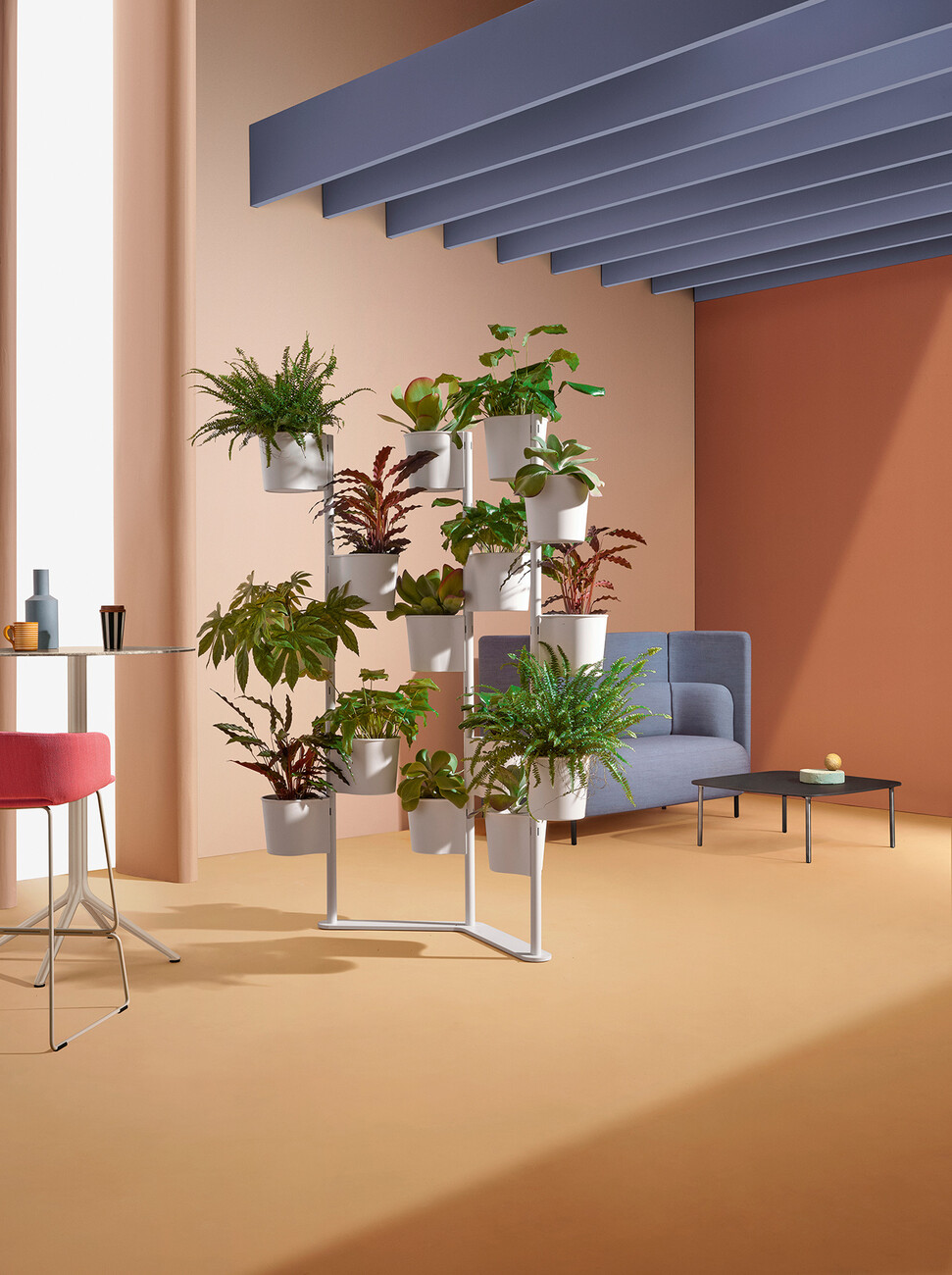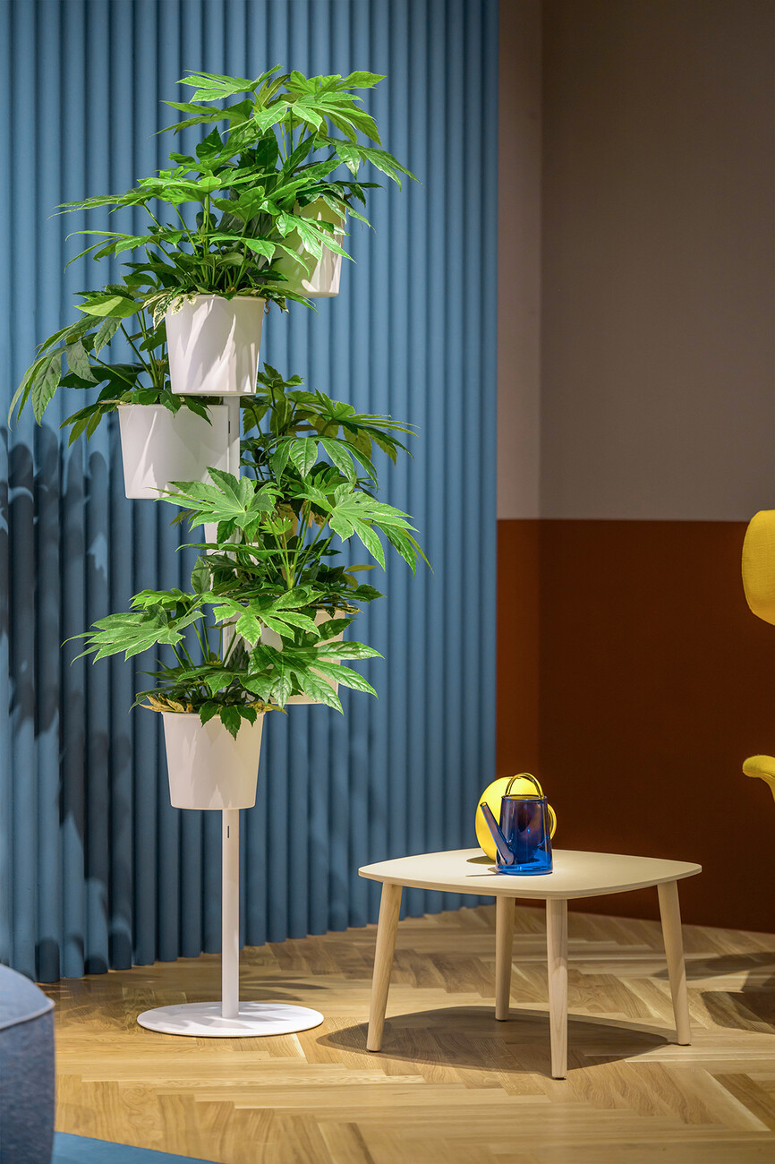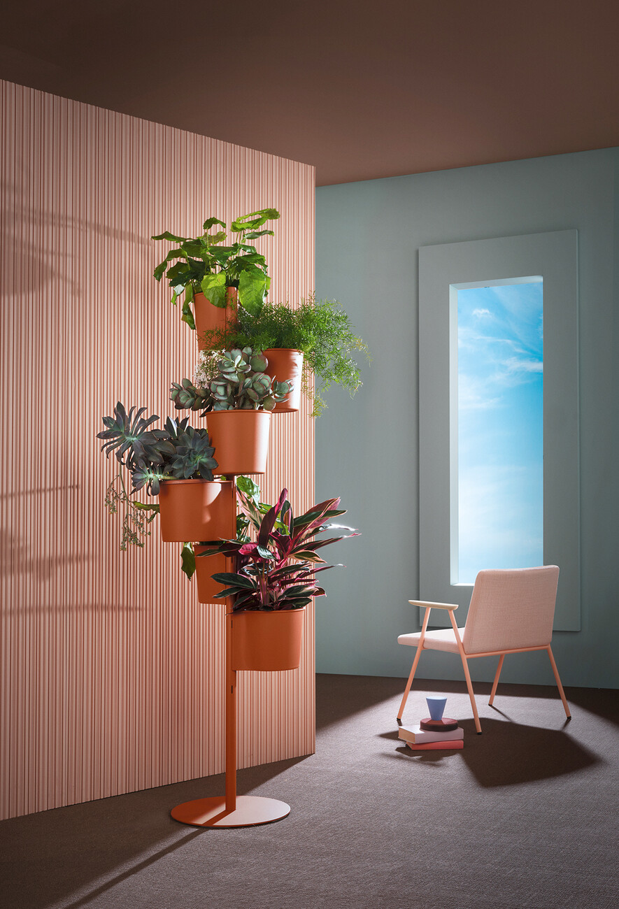 Flexibilität ist der Schlüssel zu einer lebendigen Atmosphäre – das weiß auch die Designerin Victoria Azadinho Bocconi. Für Pedrali hat sie "Hevea" entworfen, einen Topfhalter, dessen Behälter aus Polypropylen jederzeit in unterschiedlichen Höhen und Positionen an die zentrale Stahlstange angehängt werden können. Die Latexgewinnung in kleinen Gefäßen, die an den Stämmen der Kautschukbäume ("Hevea Brasiliensis") befestigt werden, prägt das Bild der Gummibaumplantagen in der südamerikanischen Heimat von Azadinho Bocconi. Statt zum Sammeln der weißen Latexflüssigkeit dienen ihr allerdings die Töpfe zur Begrünung von Innenräumen – vom Soloauftritt bis zur Trennwand, die ein Gefühl von Dschungel verleiht. Praktisch: Die Behälter lassen sich je nach Bedarf spontan anderweitig nutzen, wie zum Kühlen einer Champagnerflasche oder der Aufbewahrung von Büroutensilien. "Hevea" von Victoria Azadinho Bocconi für Pedrali ist in den Farben Weiß, Grün, Terracotta und Schwarz erhältlich. (am)