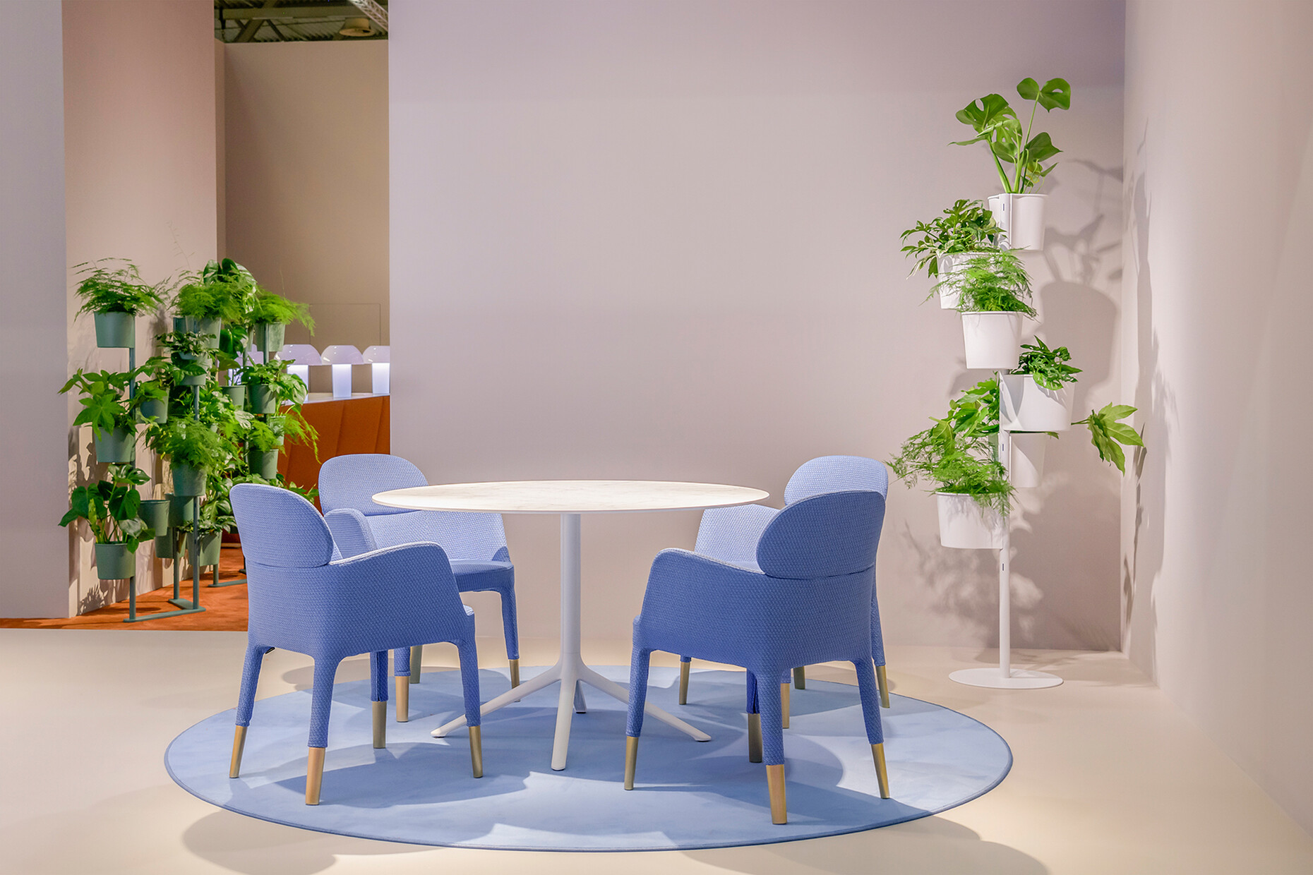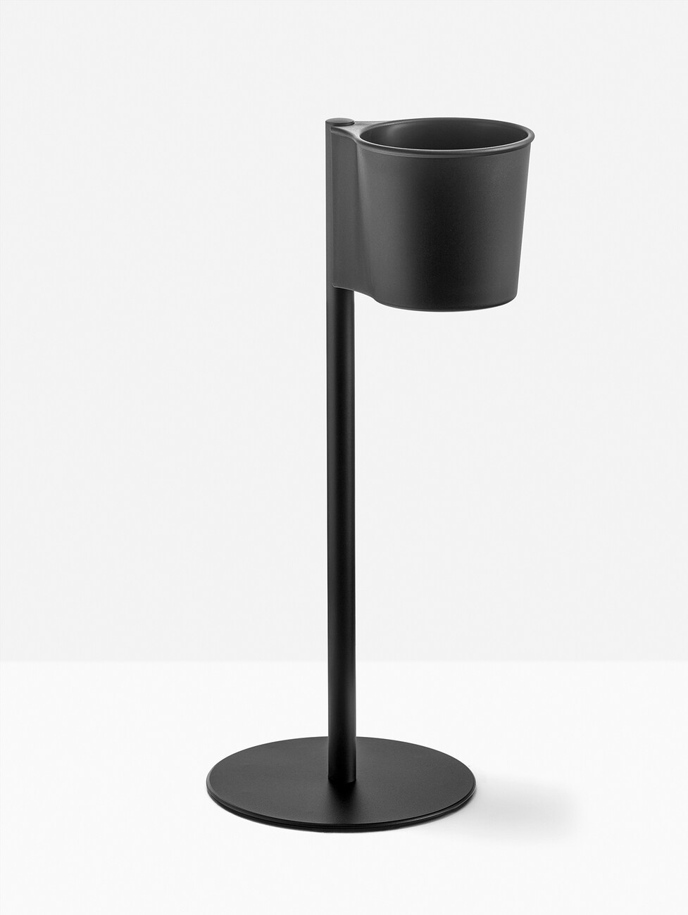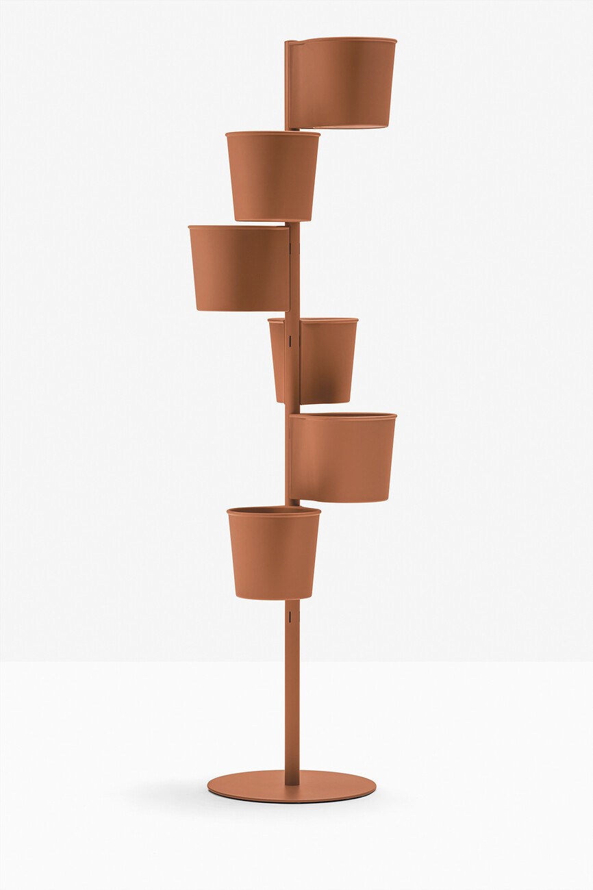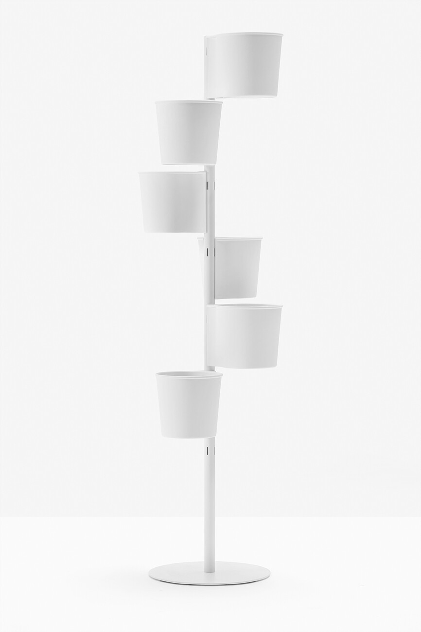 Flexibilität ist der Schlüssel zu einer lebendigen Atmosphäre – das weiß auch die Designerin Victoria Azadinho Bocconi. Für Pedrali hat sie "Hevea" entworfen, einen Topfhalter, dessen Behälter aus Polypropylen jederzeit in unterschiedlichen Höhen und Positionen an die zentrale Stahlstange angehängt werden können. Die Latexgewinnung in kleinen Gefäßen, die an den Stämmen der Kautschukbäume ("Hevea Brasiliensis") befestigt werden, prägt das Bild der Gummibaumplantagen in der südamerikanischen Heimat von Azadinho Bocconi. Statt zum Sammeln der weißen Latexflüssigkeit dienen ihr allerdings die Töpfe zur Begrünung von Innenräumen – vom Soloauftritt bis zur Trennwand, die ein Gefühl von Dschungel verleiht. Praktisch: Die Behälter lassen sich je nach Bedarf spontan anderweitig nutzen, wie zum Kühlen einer Champagnerflasche oder der Aufbewahrung von Büroutensilien. "Hevea" von Victoria Azadinho Bocconi für Pedrali ist in den Farben Weiß, Grün, Terracotta und Schwarz erhältlich. (am)