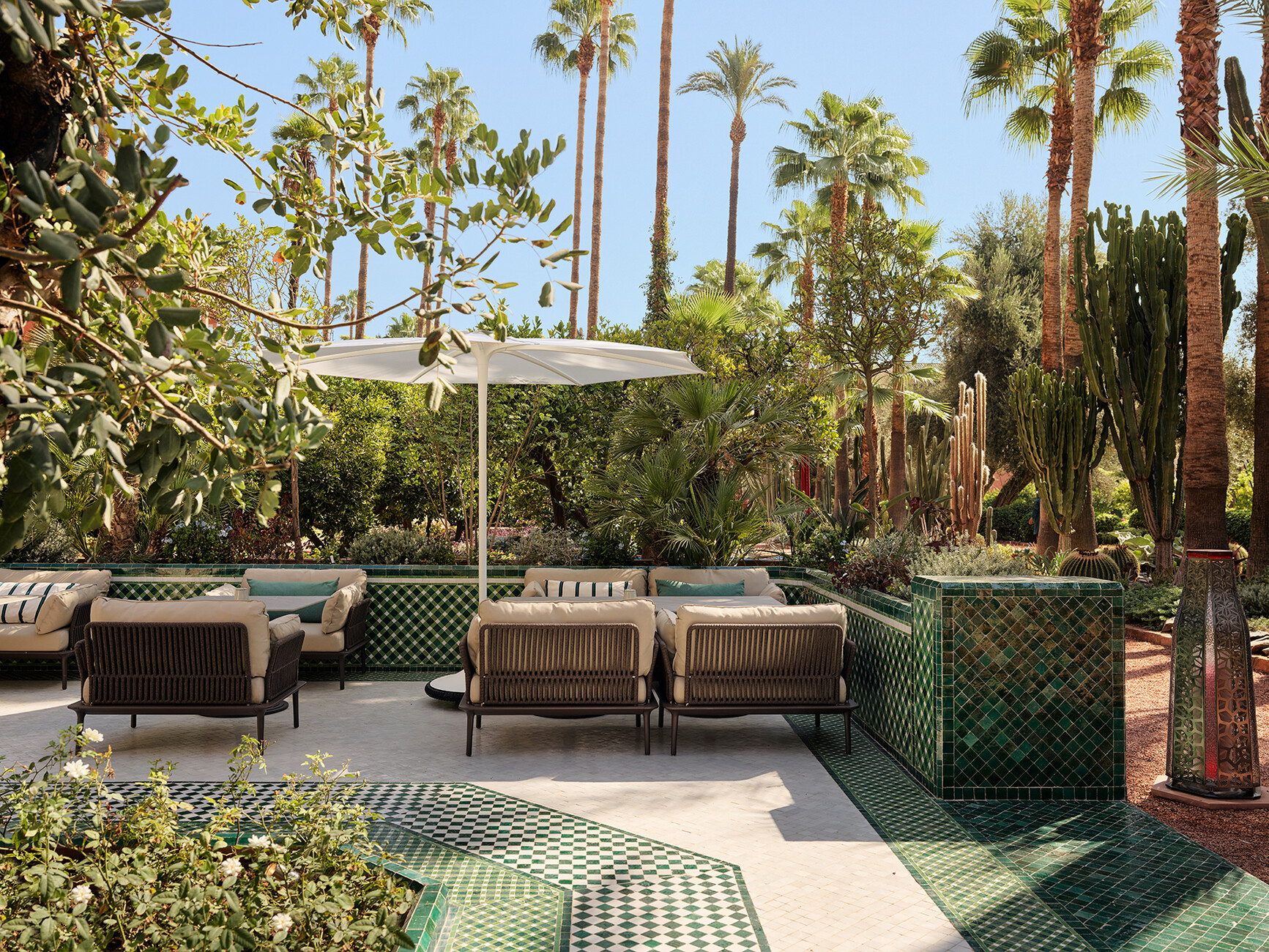 Geradlinig zum einen, dynamisch und sinnlich zum anderen: Im Fünf-Sterne-Hotel "La Mamounia" in Marrakesch laden die Lounge-Sessel "Reva Twist" von Patrick Jouin dazu ein, im Garten zu entspannen, inmitten von herrlichen Zitrus-, Oliven-, Feigen-, und Bananenbäumen. Die Rückenlehne und die Armlehnen aus Stahl des Sessles sind mit einem Geflecht aus einem flachen Seil aus Polypropylen bezogen, das gegen Witterungseinflüsse beständig ist und gleichzeitig ein natürlicheres Aussehen garantiert. Die großzügige Sitzfläche und die voluminösen Kissen sorgen indes für einen bequemen Komfort, von dem man vorerst nicht mehr aufstehen möchte.
