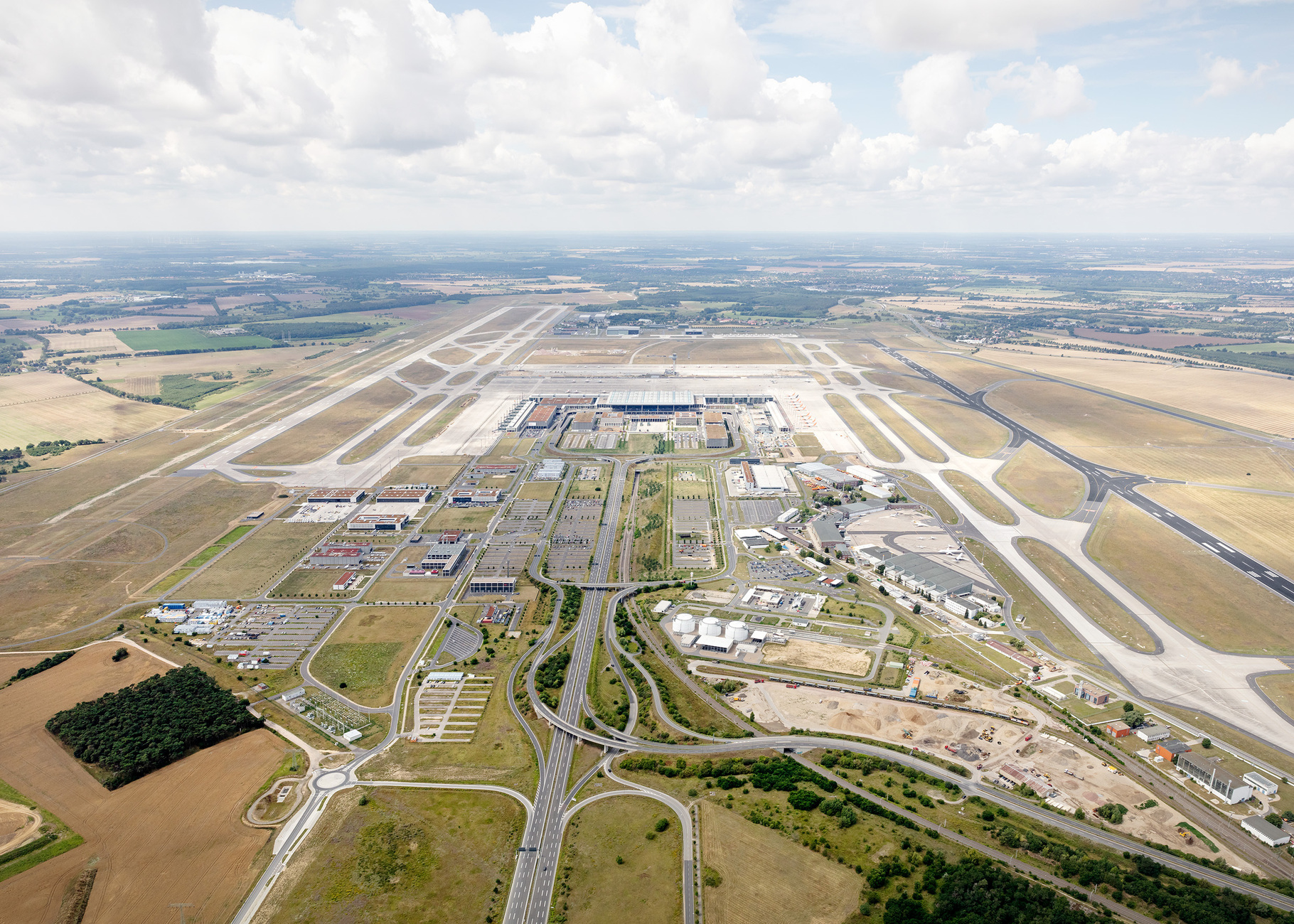 Ruheinseln sind Räume, die für Andacht, Stille, Besinnung eingerichtet sind. Eine von ihnen befindet sich an einem besonders hektischen Ort: Im Herzen des neuen Flughafens Berlin Brandenburg Willy Brandt, entworfen von gmp Architekten, der seit 2020 in Betrieb und auf 33 Millionen Passagiere im Jahr ausgerichtet ist. Der ebenfalls von gmp geschaffene "Raum der Stille" – eigentlich eine Folge von fünf verschieden großen Räumen mit quadratischer Grundfläche und gestufter Gewölbedecke – dient dort als Rückzugsort für Menschen aus allen Kulturen und Konfessionen, für die er rund um die Uhr zugänglich ist: Reduziert auf die gestalterischen Elemente Erde, Ton und Licht entstand hier mitten im Terminal eine Oase der Serenität und Ruhe.