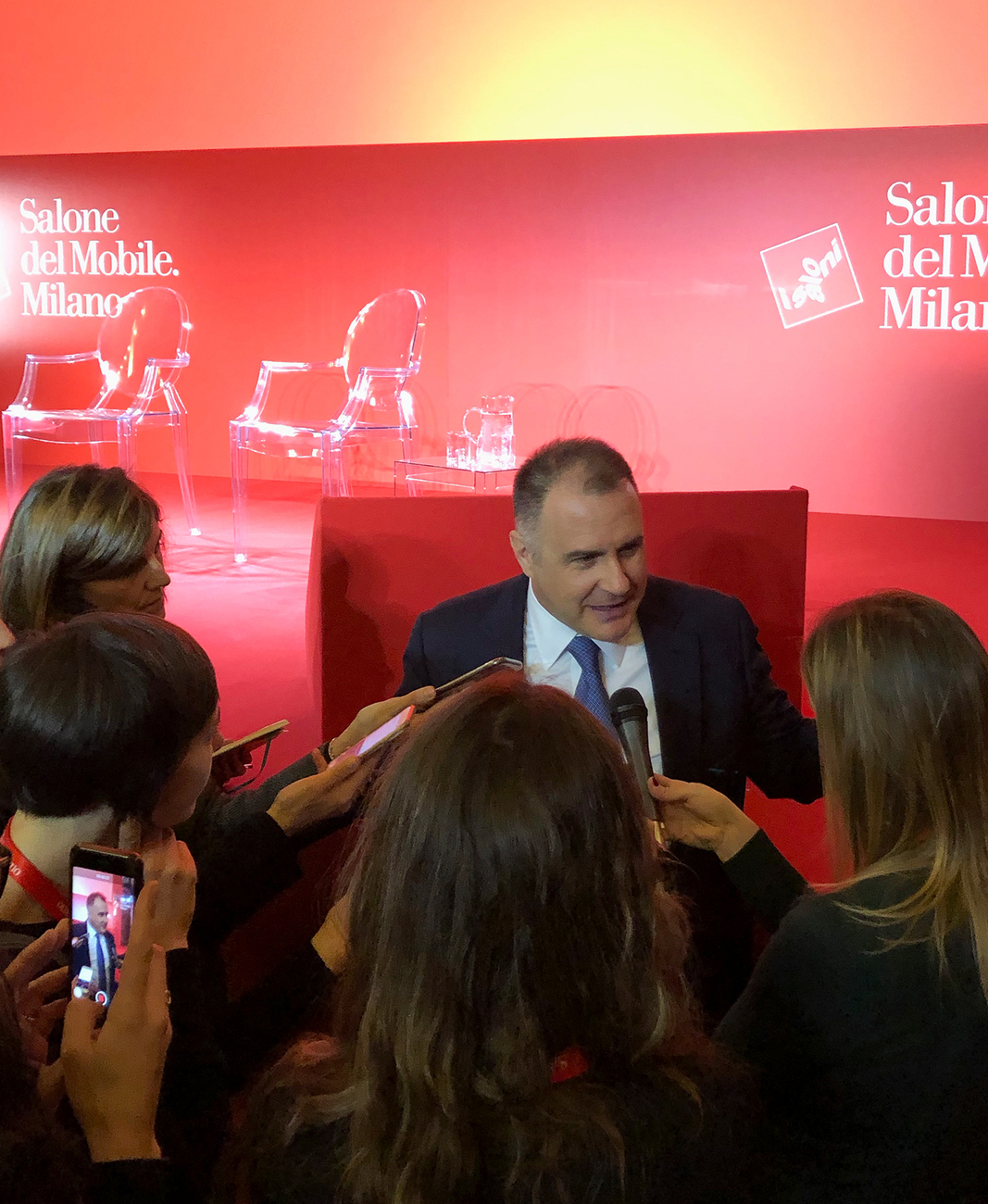 An der internationalen Pressekonferenz in Mailand konnten aufgrund der konsequenten Abschottung Chinas zur Eindämmung des Corona-Virus keine chinesischen Medien teilnehmen. In kurzen Videobotschaften bedankten sich zahlreiche chinesische Redakteure, wie Beryl Hsu, Editorial Director von AD China, für die Anteilnahme und Unterstützung seitens des Salone del Mobile. Claudio Luti betonte die immense wirtschaftliche Bedeutung Chinas für den italienischen Möbelmarkt und das deren Vertreter ein wichtiger Teil der internationalen Familie seien.