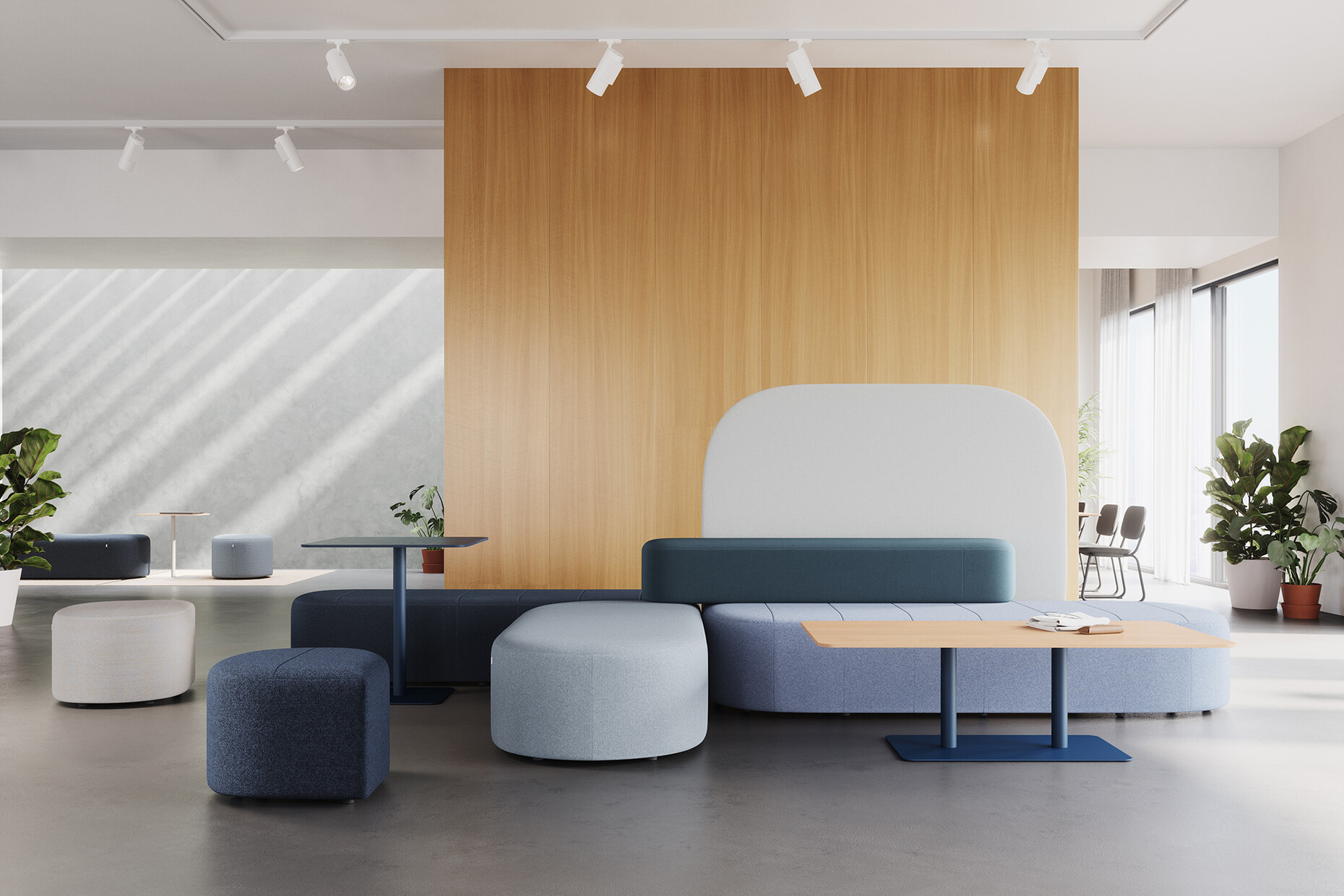 Mit "Revo" stellt die Marke Profim von Flokk ein modulares, nachhaltiges Sitzmöbelsystem vor, das vom Londoner Designstudio Pearson Lloyd entworfen wurde. Die Kollektion umfasst Sofas, Tische, Poufs und Trennwände in weichen organischen Formen. Damit sind 96 Konfigurationsvarianten möglich, mit denen sich das System flexibel an verschiedene Arbeitswelten anpassen lässt. "Revo" ist dabei in unterschiedlichen Polstervarianten und einer abwechslungsreichen Farbpalette erhältlich. Neben der gestalterischen und funktionalen Vielfalt liegt der Kollektion auch ein Nachhaltigkeitsgedanke in Form neuer Kreislauflösungen zugrunde: "Revo steht für einen radikalen Konzeptwechsel bei gepolsterten Objektmöbeln in Bezug auf das Umweltbewusstsein. Indem wir die Sperrholzplatte durch REPP ersetzt haben, haben wir die Möglichkeit des Recyclings von Materialien maximiert", sagt Luke Pearson von Pearson Lloyd über das Materialkonzept. Hinzu kommen neue Stoffe aus Recyclingmaterial und eine Minimierung des Energieverbrauchs in allen Phasen der Produktion, die dazu beitragen, aus "Revo" ein nachhaltiges Möbelsystem zu machen.