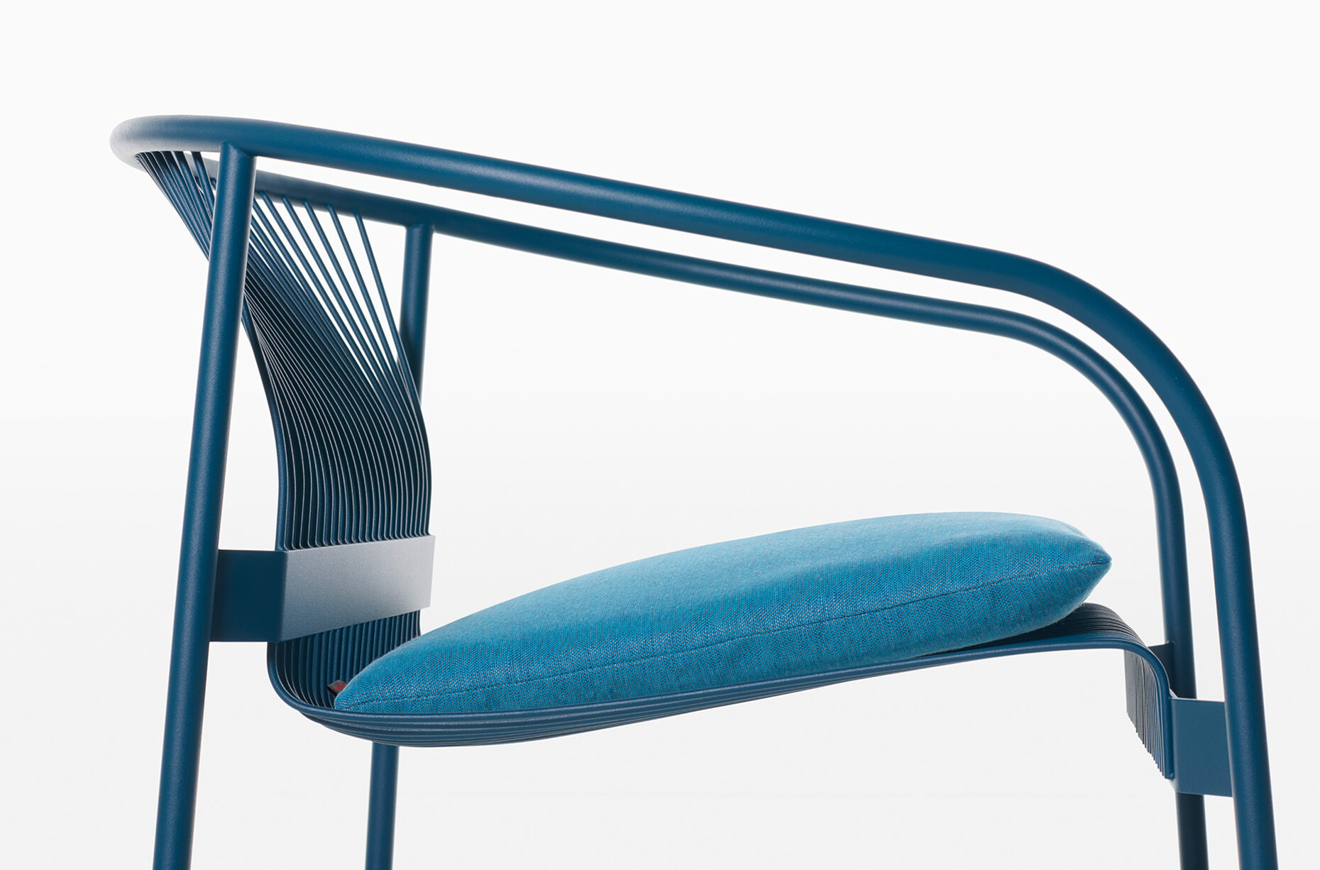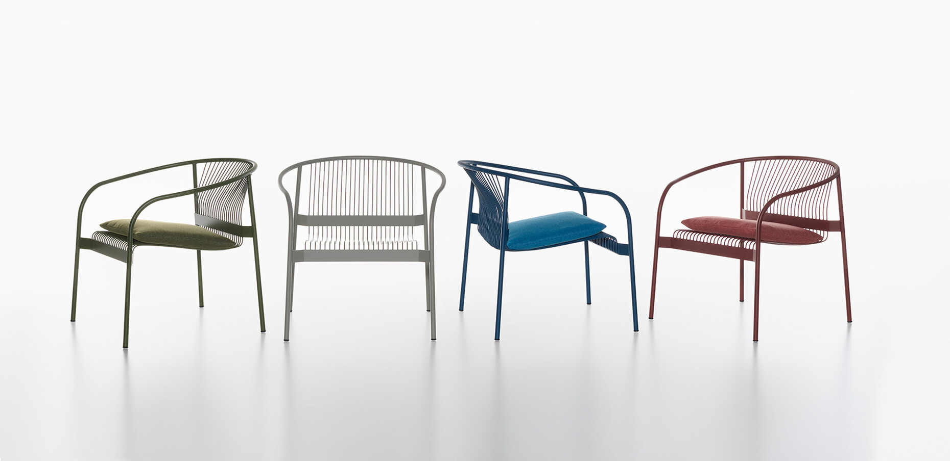 Bei Plank steht aktuell die Evolution seiner ikonischsten Produkte im Mittelpunkt – Björn Dahlström hat demnach seinem "VELIT" Stuhl eine loungige Version hinzugefügt. Elegante Metallstäbe liefern im Verbund eine stabile wie ergonomische Sitzfläche – das ist die Idee der Serie. Auch der "VELIT Lounge Chair" folgt diesem statischen Prinzip. Dahlström vergleicht die Gestaltung mit dem Zeichnen von Linien auf einem Blatt Papier, aus denen kunstvolle Formen entstehen. Die neuen Proportionen erweitern das grafische Konzept um eine neue Perspektive: Die Sitzfläche des Lounge Sessels ist großzügig bemessen und die Form lädt zum entspannten Sitzen ein. Kissen in passenden Farben zum Gestell bieten einen zusätzlichen Komfort.