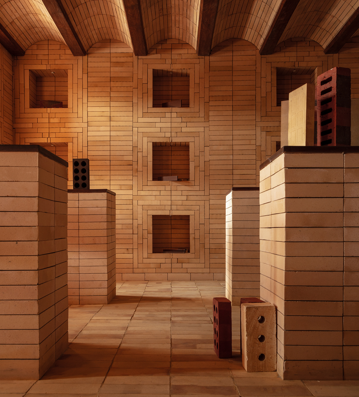 Was sie auszeichnet, ist eine besondere Arbeitsweise. Renesa versucht, traditionelles Handwerk mit modernster digitaler Technologie zu verbinden. "Wir schätzen Innovation mehr als alles andere", sagt Sanchit Arora. "Wenn wir etwas entwerfen, beschränken wir uns nicht auf die Details der Ausführung, sondern konzentrieren uns auf die Schaffung von etwas, das Einfallsreichtum und Identität in sich trägt. Der Prozess fließt vom Papier zum Bildschirm und auf die Website." Eines ihrer jüngsten Projekte, "The Brick Bond" für Jindal Mechno Bricks, New Delhi, ist eine moderne Interpretation eines Ziegelofens. Die Grundidee bestand darin, einen Raum zu schaffen, der sowohl markenspezifisch als auch markenorientiert ist: Der Kunde ist Indiens führende Marke für modulare Ziegel und hat ein berühmtes Erbe seines Handwerks, das weitergeführt werden soll. Der Designimpuls drehte sich um die Konzeptualisierung eines resonanten architektonischen Markenethos", das das vorliegende Erlebniszentrum und die Veranstaltungsorte auf der ganzen Welt definieren könnte. Mit dem Fokus auf den Lebenszyklus eines jeden Ziegels, von seiner irdischen Entstehung bis zu seinem Brennen, wurden die Innenräume als ein zeitgenössisches Eintauchen in die Kammern eines klassischen Ziegelofens interpretiert.