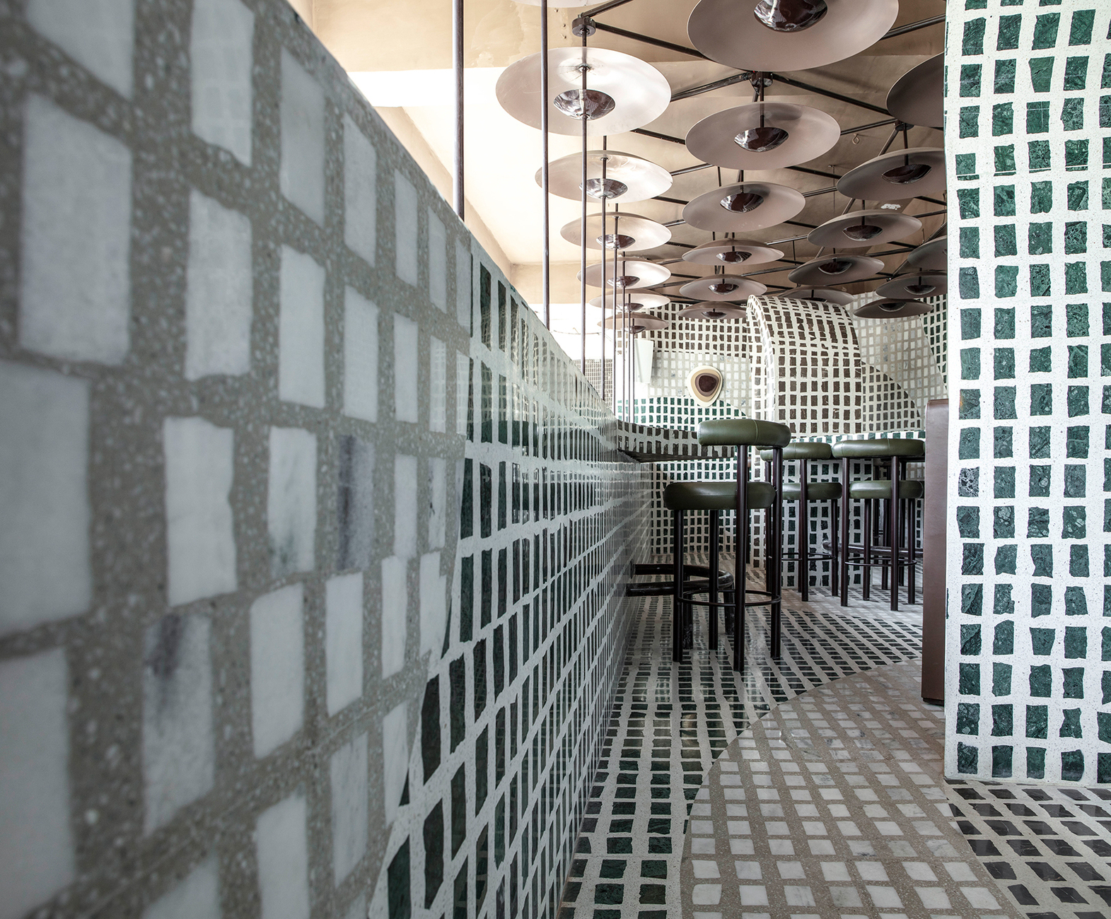 Entwürfe aus verschiedenen architektonischen Epochen, Ideologien und Konzepten miteinander zu einem großen Ganzen verschmelzen lassen – diesen Ansatz, den das indische Architektur- und Designstudio Renesa bereits in ihrem Namen trägt übersetzt das Team in eindrucksvolle Inneneinrichtungen: zum Beispiel für das "Tin Tin" in Chandigarh. Das Interieur des panasiatischen Restaurants basiert so auf einer geometrischen Mosaikmatrix, die Wände, Portale und verschiedene Oberflächen prägt. Schwungvolle Bögen, konturierte Decken und ein Nebeneinander von festen und leeren Strukturen prägen das Layout und schaffen eine dynamische Atmosphäre. Renesa mit Sitz in Neu-Delhi wurde 2006 von Sanjay Arora gegründet, der nun von seinem Sohn Sanchit Arora als Studioleiter unterstützt wird, nachdem er in Indien, Großbritannien und Italien studiert hat. Zusammen mit einem Team von rund 20 KollegInnen bieten sie in ganz Indien kreative Dienstleistungen in allen Formaten an, von Innenräumen über Wohnprojekte bis hin zu Industriegebäuden. Grundlegend für ihre Arbeit ist das Engagement für soziale und ökologische Nachhaltigkeit. Das Studio ist sich des breiten Spektrums an Umwelten bewusst, in die die Bauindustrie eingreift, und setzt sich für eine sorgfältige Analyse der ökologischen und sozialen Auswirkungen jeder Projektphase ein.