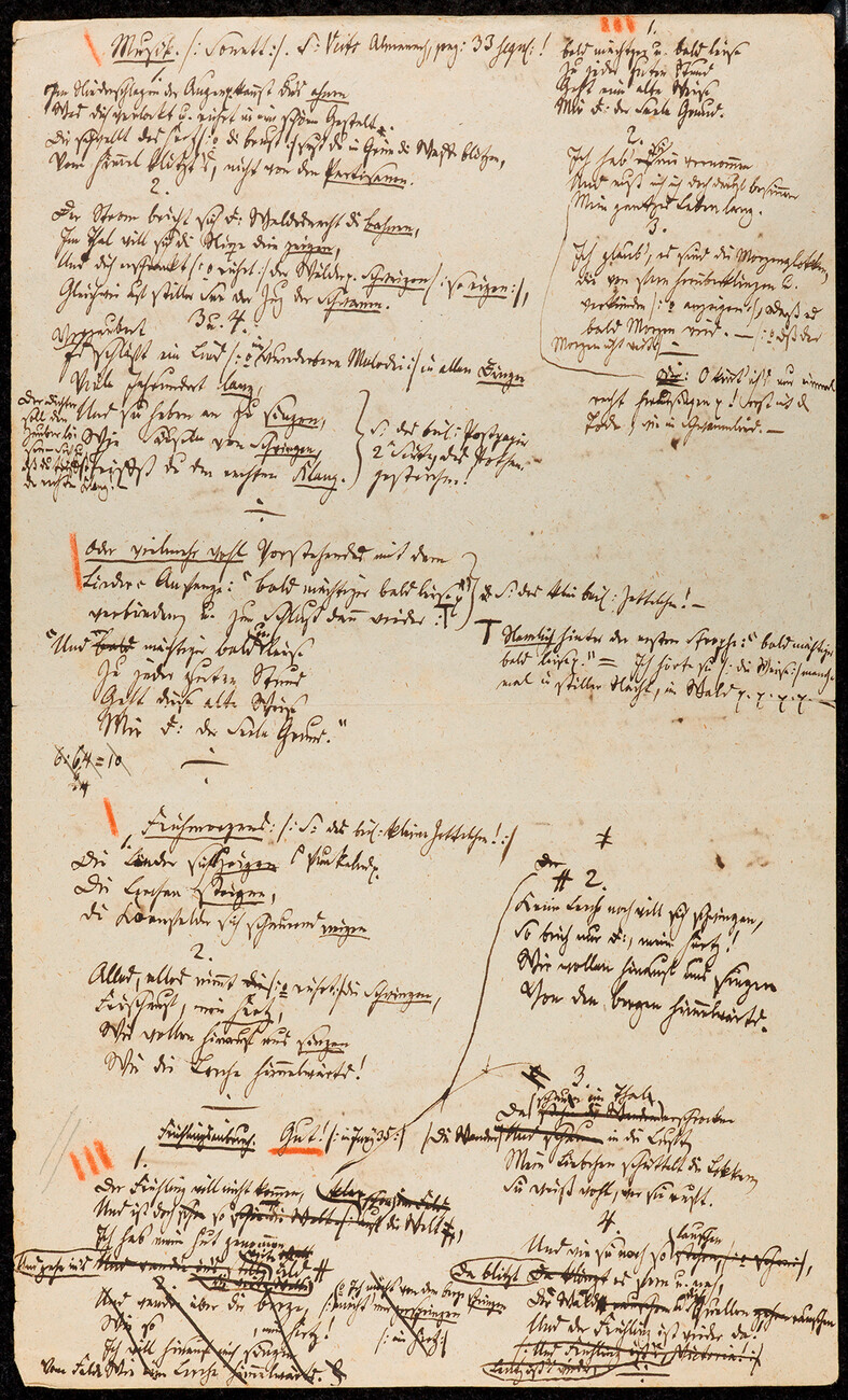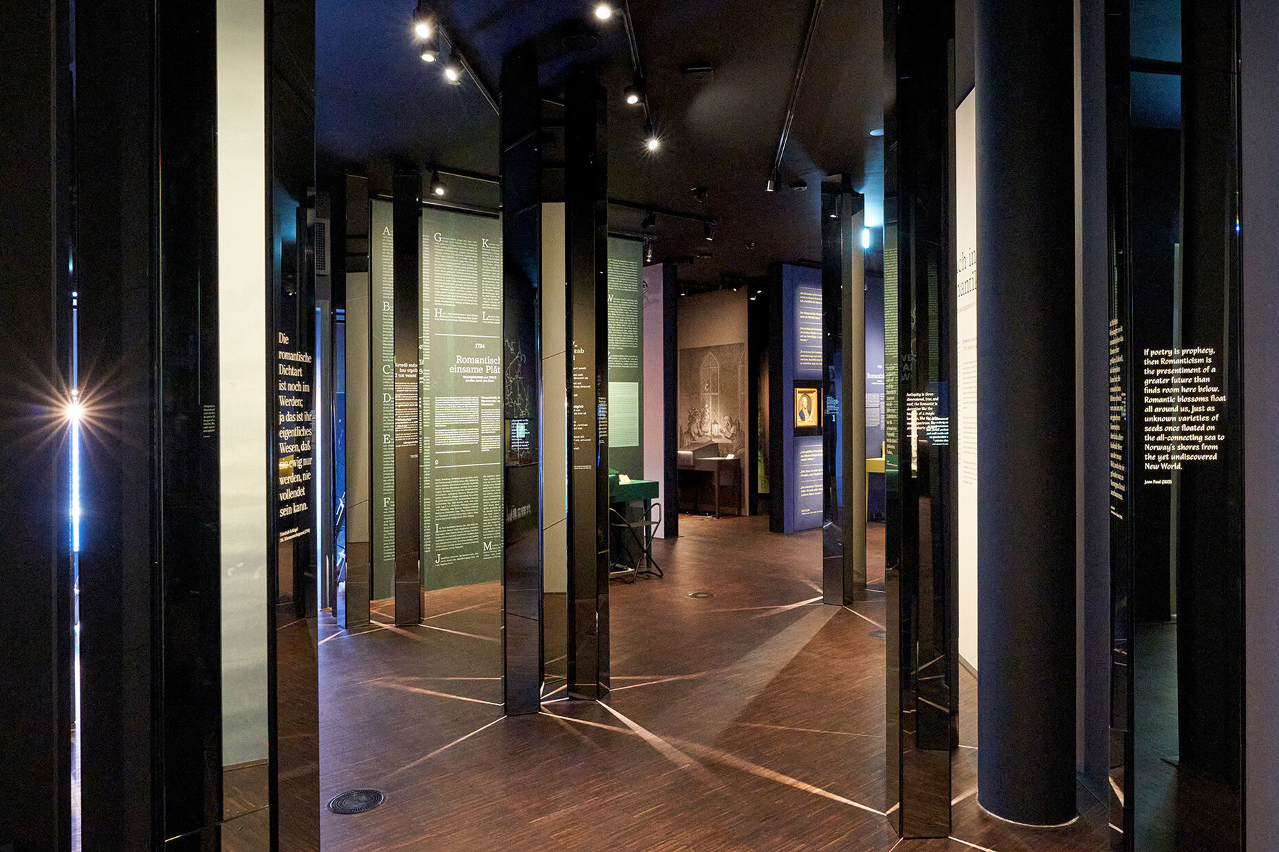 Das viel Arbeit in der Museographie seitens Petra Eichler und Susanne Kessler alias "Sounds of Silence" sowie MESO Digital Interiors steckt, merkt man beim Rundgang durch die Räume schnell. Jedes Detail ist zugunsten der Exponate und ihrer idealen Rezeption gedacht – von der Beleuchtung bis zu den jeweils eigens entworfenen Schaukästen für die besonders empfindlichen Werke, die mit einem Klappdeckel geschützt sind. Das Romantik-Museum ist dabei nicht nur weltweit einzigartig, sondern fasst auch viele kunsthistorische Höhepunkte an einem Ort. Die Fülle der Angebote ist somit kaum in einem Tag rezipierbar. "Das ist auch so gedacht", sagt Prof. Dr. Anne Bohnenkamp-Renken, "wir wollten den schillernden Facettenreichtum des Konzepts Romantik zeigen, das ja nicht nur eine Epoche, sondern auch eine Geisteshaltung und ein Gefühl ist". Dabei zeigt sich, dass die Romantiker mit ähnlichen Auseinandersetzungen zu ringen hatten, wie der Mensch heute. Sei es der Verlust und die Suche nach einem Sinn im Sein, die Abwendung von der Religion, die Sehnsucht nach einer anderen Realität oder das Schaffen von Illusionen und gemeinsamen Imaginationsräumen, um der Welt zu entfliehen. Die Ausstellung umfasst so auch die Irrwege und Abgründe der Suche nach dem neuen Sinn, die mitunter in Judenfeindlichkeit und alptraumhaften Szenerien mündeten, die das Böse, den menschlichen Wahnsinn und die erotisch aufgeladene Sehnsucht nach dem Tod in den Blick nehmen. Wie "der Nachtmahr" von Johann Heinrich Füssli, ein berühmtes Motiv der schwarzen Romantik. Die Vermittlung der Exponate ist dabei vorbildlich und multimedial angelegt. Sie zeichnet zum Beispiel den Lebensweg von Goethe in einer interaktiven Karte nach, bietet Transkriptionen der kleinformatigen Handschriften, die sonst kaum zu entziffern wären und viele multimediale Angebote, die unterschiedliche Zielgruppen ansprechen. Die Zusammenhänge der Etappen können dadurch gut erfasst werden, ganz dem Novalis-Zitat entsprechend: "Die Welt romantisieren heißt, sie als Kontinuum wahrzunehmen, in dem alles mit allem zusammenhängt. Erst durch diesen poetischen Akt der Romantisierung wird die ursprüngliche Totalität der Welt als ihr eigentlicher Sinn im Kunstwerk ahnbar und mitteilbar."