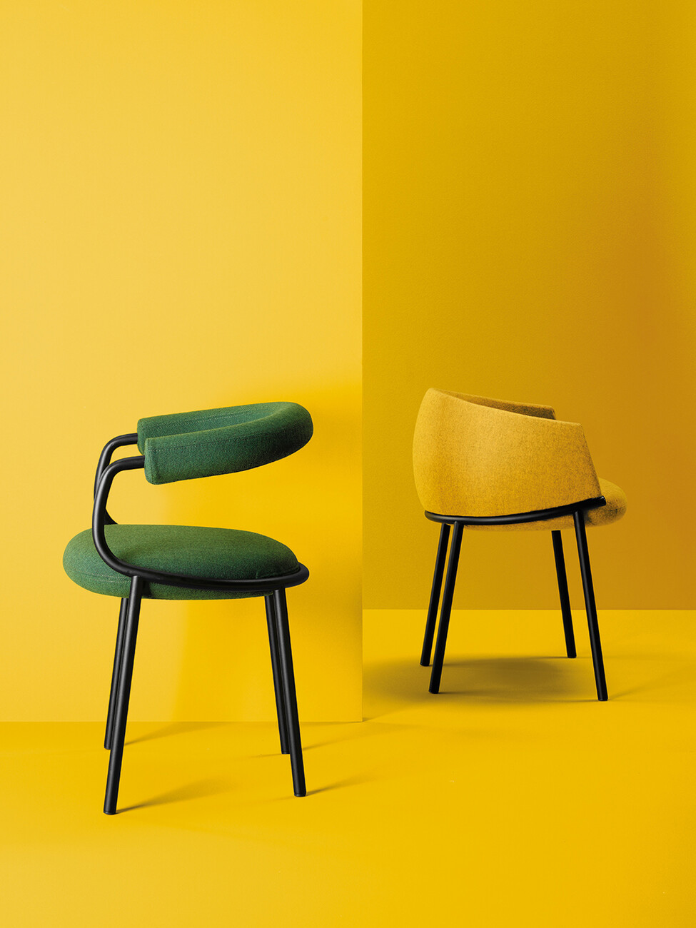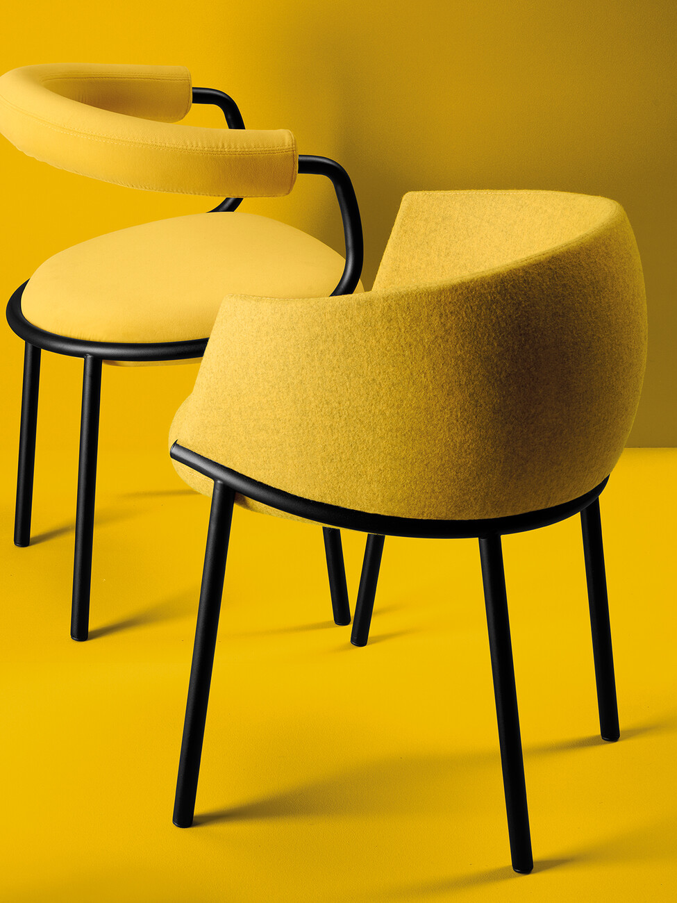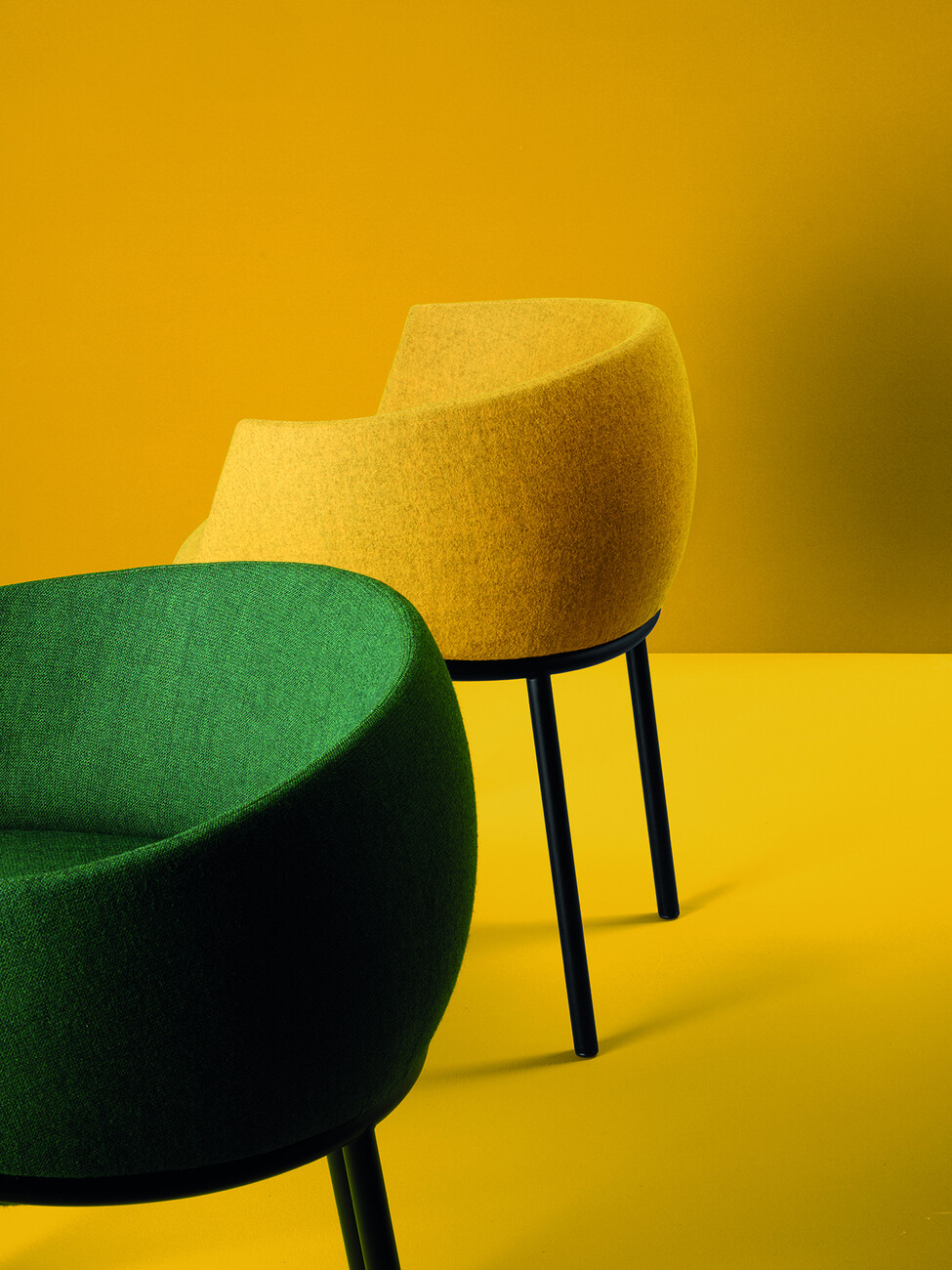 Marco Zavagno: Das Ziel waren Sitzmöbel für den Vertragsmarkt, die einen hohen Komfort ermöglichen. Wir haben uns für zwei Versionen entschieden, eine geschlossene Form und eine Weiterentwicklung derselben, die eine Möglichkeit bietet, die Vision dieser Gestaltung größer zu denken.