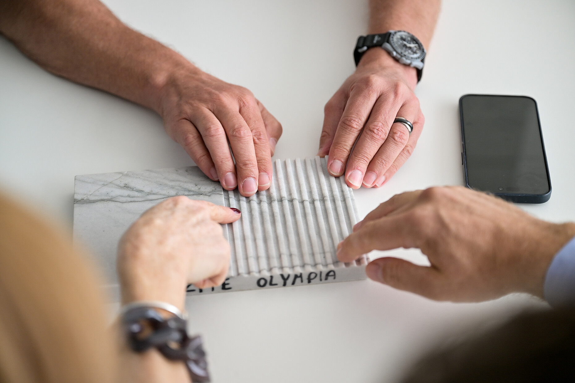 Ulrich Holzinger: Zu Beginn geht es erstmal darum, den KundInnen zuzuhören in welcher Stimmungswelt sie leben möchten. Wenn es ihnen schwerfällt, ihre Wünsche in Worte zu fassen, bitten wir sie ein Moodboard zusammenzustellen, sei es digital oder mittels Fotografien aus Zeitschriften. Das ist meist noch unsortiert und wir bringen dann eine gewisse Struktur in die Vorstellung. Wir prüfen was baulich umsetzbar ist, teilen die Aufgabe unter uns beiden auf und besprechen das Projekt im Team. Je nach Leistungsphase sind wir jeweils unterschiedlich stark eingebunden. Wir bauen keine Möbel. Wir bauen Räume. Wir bringen unser Wissen über die Verarbeitung von Naturstein, über Putztechniken, Malerarbeiten und der Lichtplanung ein. Kurzgesagt: Wir denken gewerkeübergreifend.