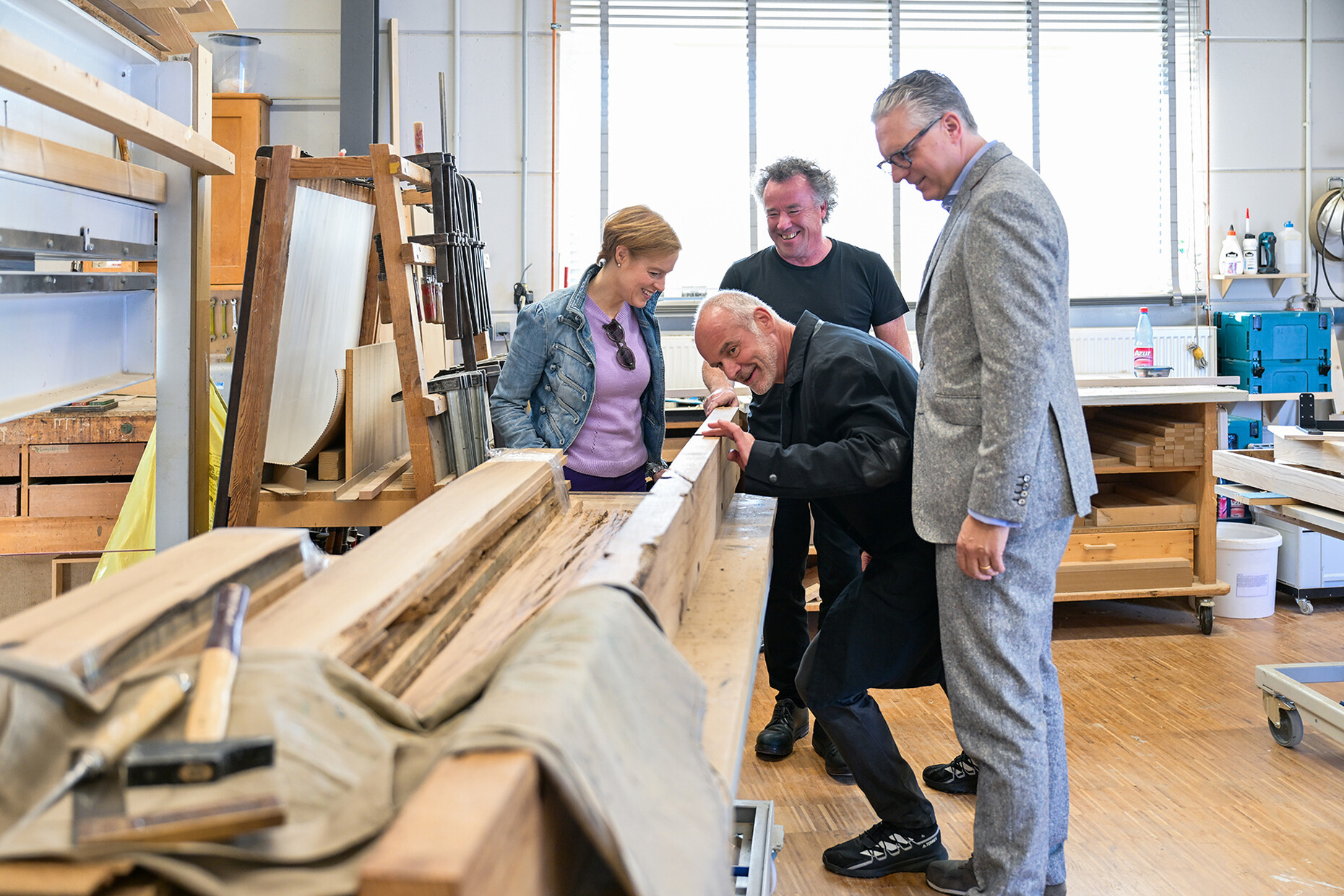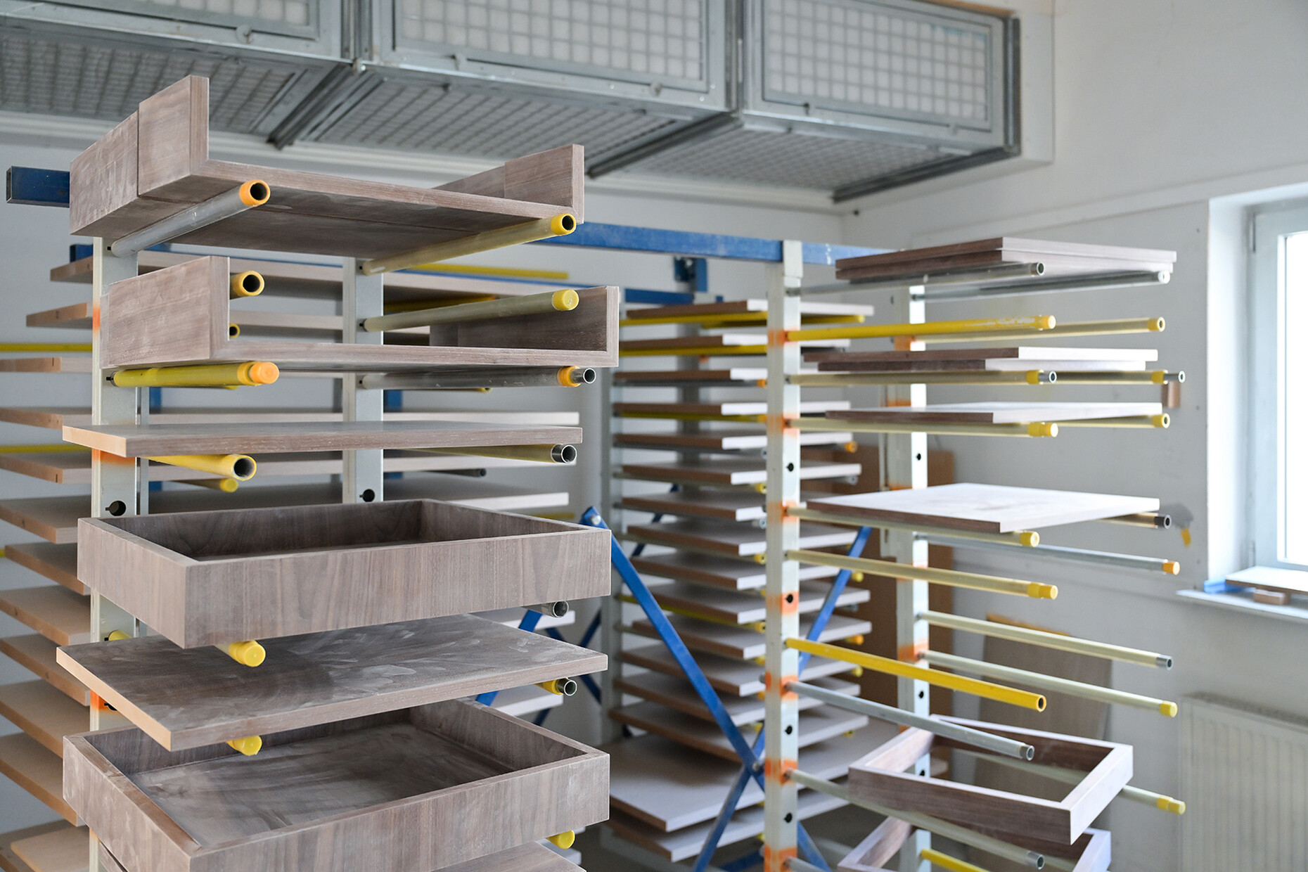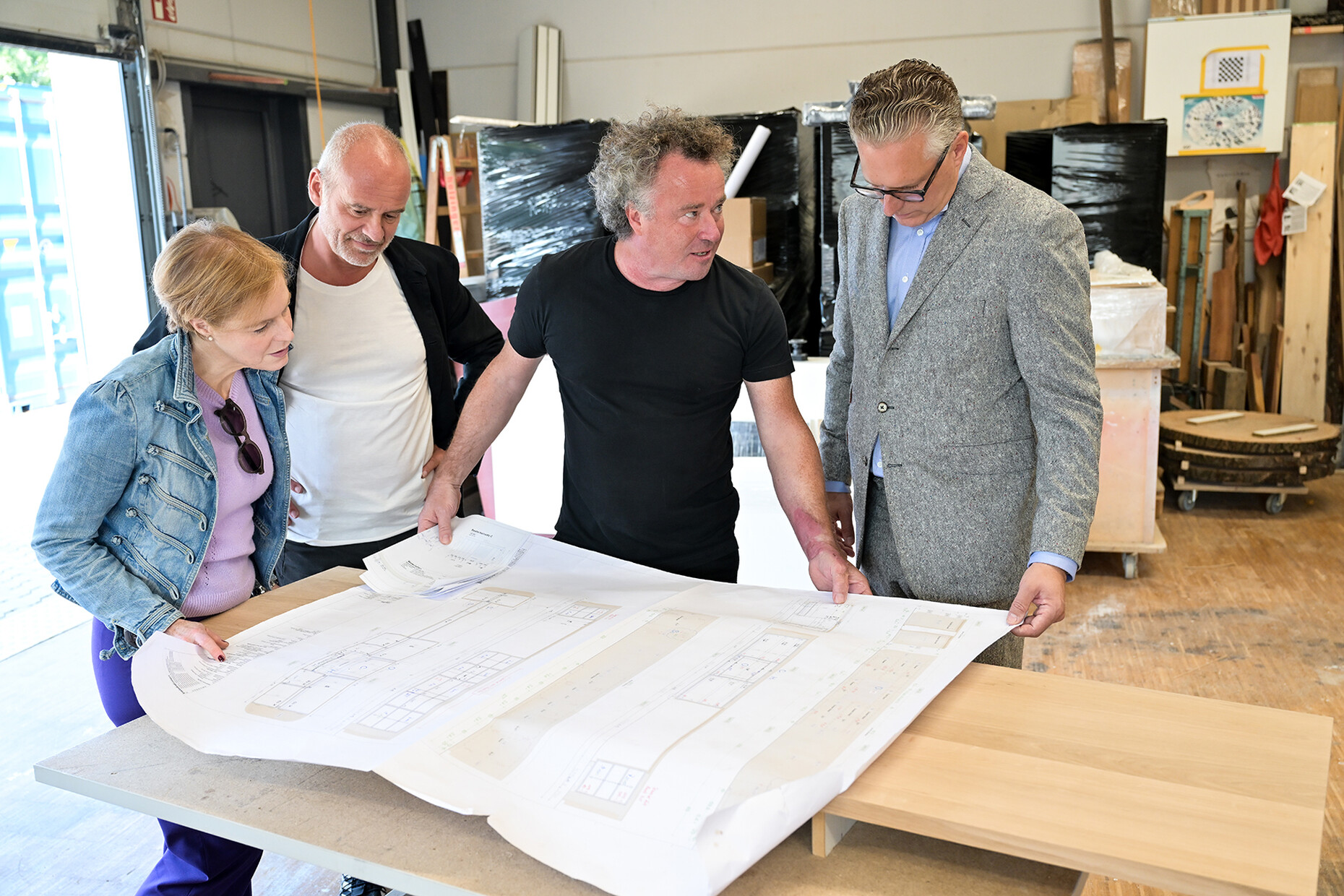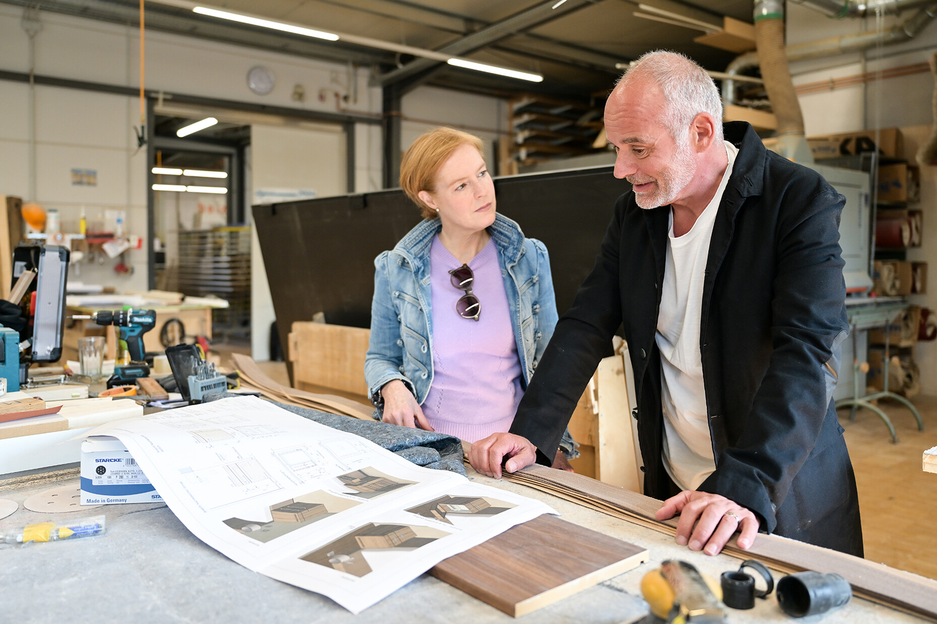 Dieter Schmidt: Unsere KundInnen schätzen, dass unsere Entwürfe sehr nah am Endergebnis sind. Dank der Tischlerei wissen wir bereits bei der Planung, was umsetzbar ist. Dazu kommt, dass wir die Umsetzung des Möbelbaus vom ersten Pinselstrich bis zur Abgabe selbst betreuen. Ulrich sagt oft: "Wir kriegen das hin, ich weiß noch nicht wie, aber wir schaffen das." Und dann tüfteln wir so lange, bis wir es geschafft haben.