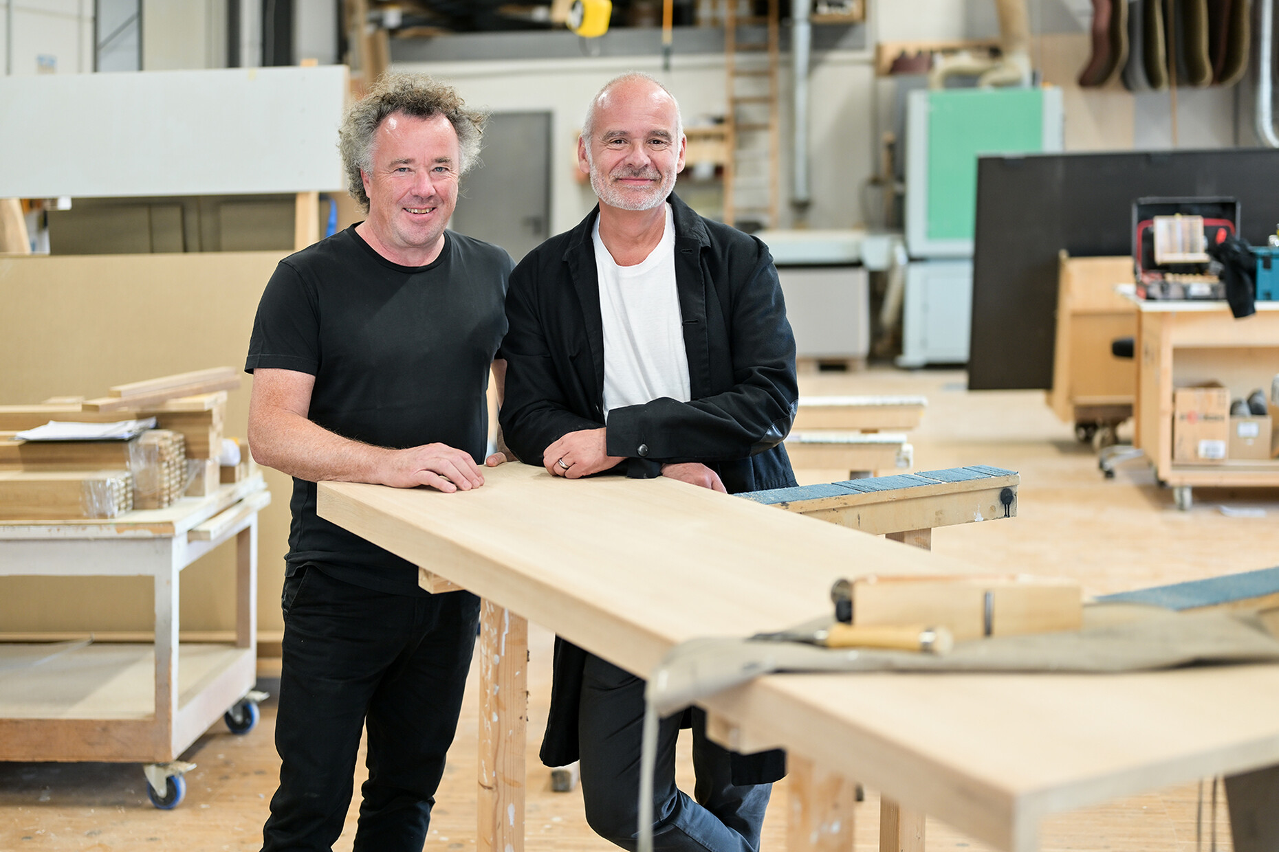 Franziska von Schumann: Ulrich, du hast ein Jahr vor der Gründung eures gemeinsamen Unternehmens den Tischlerbetrieb und das Küchenstudio deines Vaters übernommen. Dieter, du hast vorher in einem Architekturbüro in Frankfurt am Main gearbeitet. Was hat euch zusammengeführt?