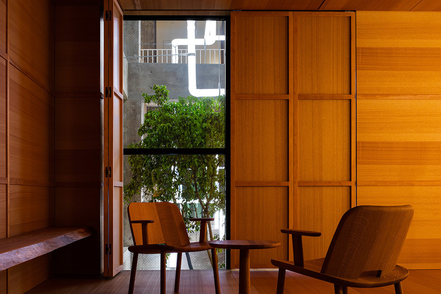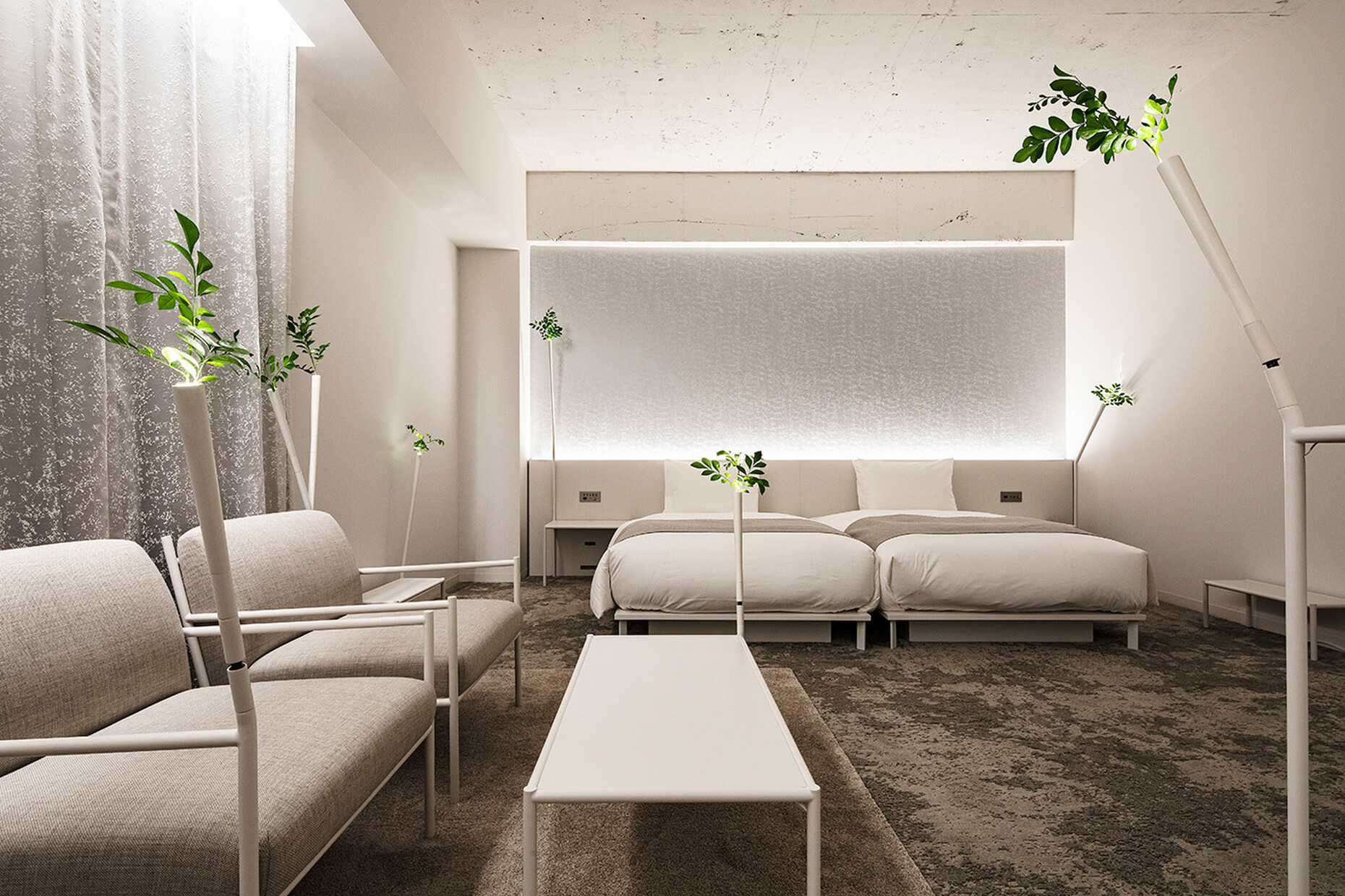 Neben der internationalen Designer-Riege wurden für die übrigen 21 Zimmer jeweils einheimische Künstler mit kleineren Werken beauftragt, was das gesamte Haus zu einer bewohnbaren Kunstausstellung werden lässt. Die Fassade des viergeschossigen Bestandsgebäudes bespielt zudem ein Schriftzugschablone von Lawrence Weiner. Bei der Eröffnung des Shiroiya Hotel in Maebashi am 12. Dezember 2020 konnten viele der beteiligten Architekten, Designer und Künstler nicht persönlich anwesend sein – die Einreise nach Japan ist seit Ende März pandemiebedingt nicht möglich. Gleichzeitig verknüpft das Hügel-Hotel die Pre-Corona-Zeit von 2014 mit einer Zukunft, in der vieles ähnlich und doch alles anders sein wird. Sou Fujimoto geht es stets darum, "einen Ort zu entwerfen, der den Menschen viele Möglichkeiten gibt, sich zu versammeln". Solche Orte brauchen wir bald wieder.