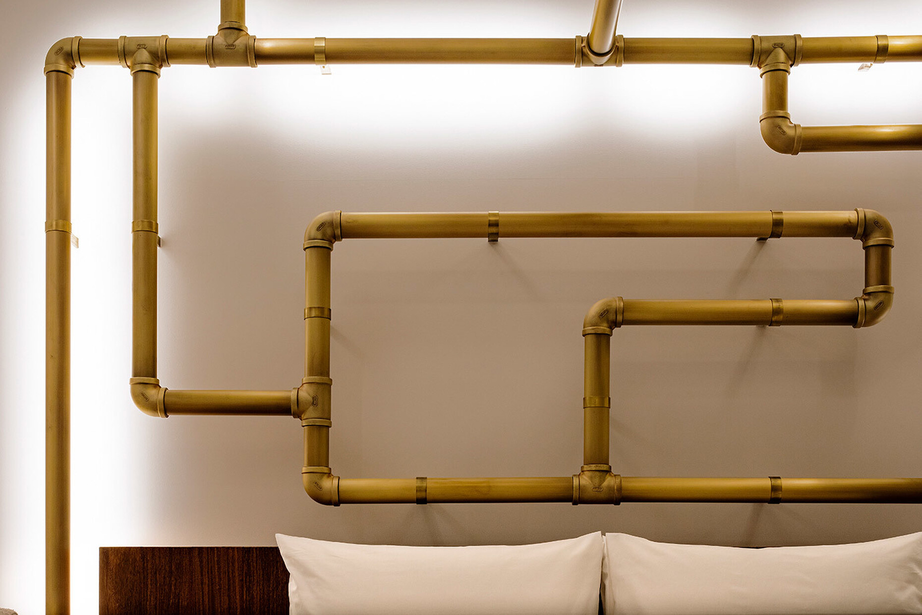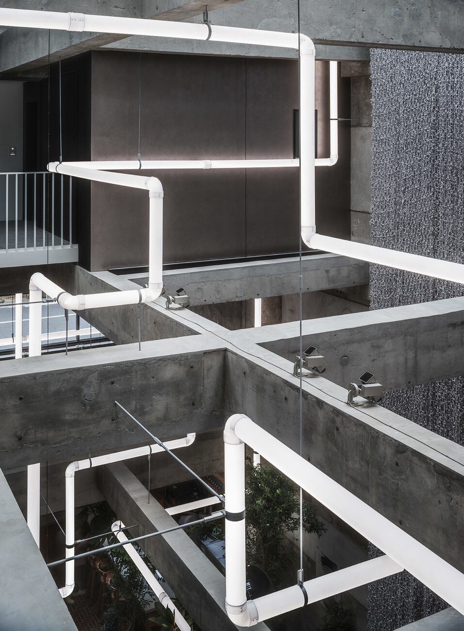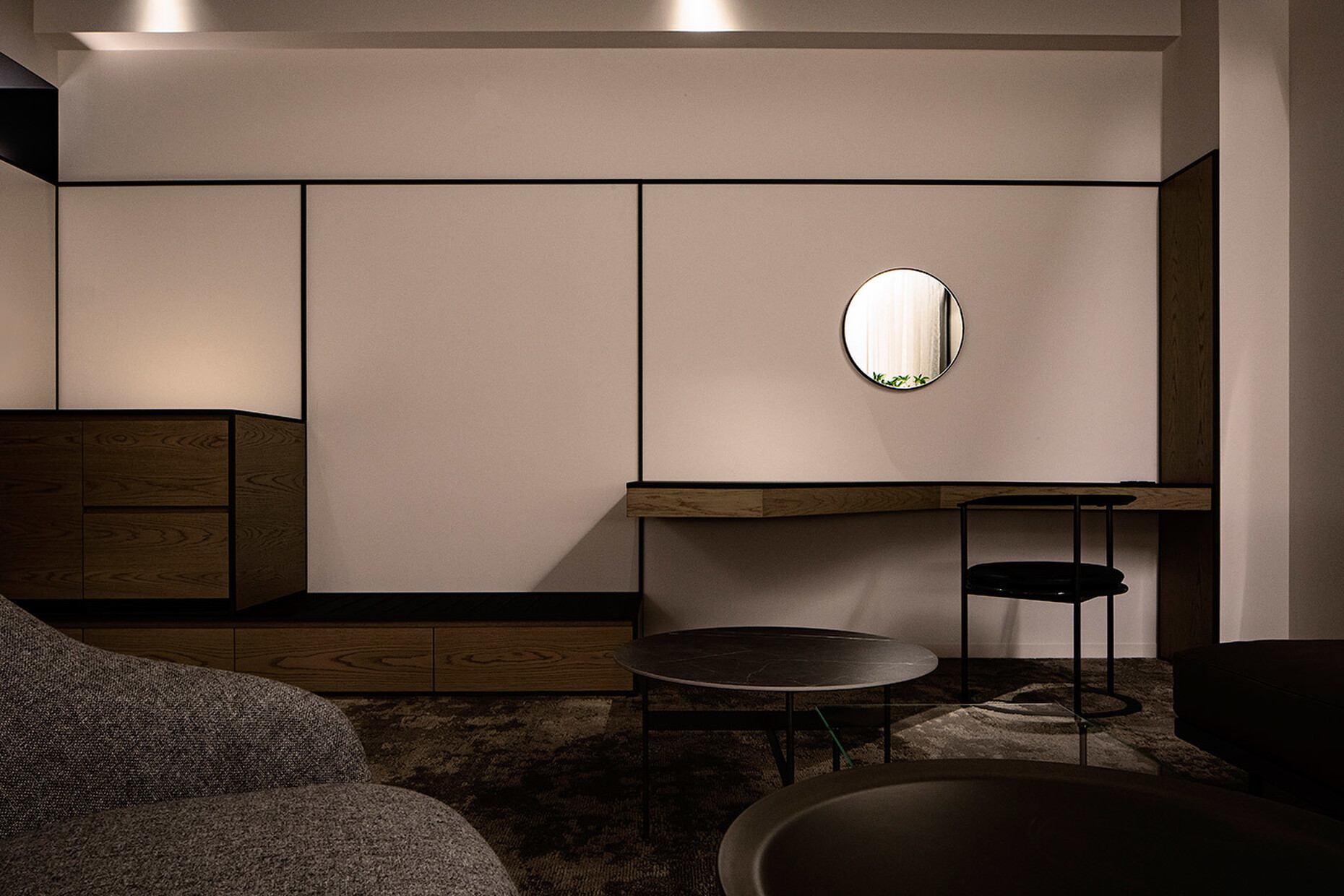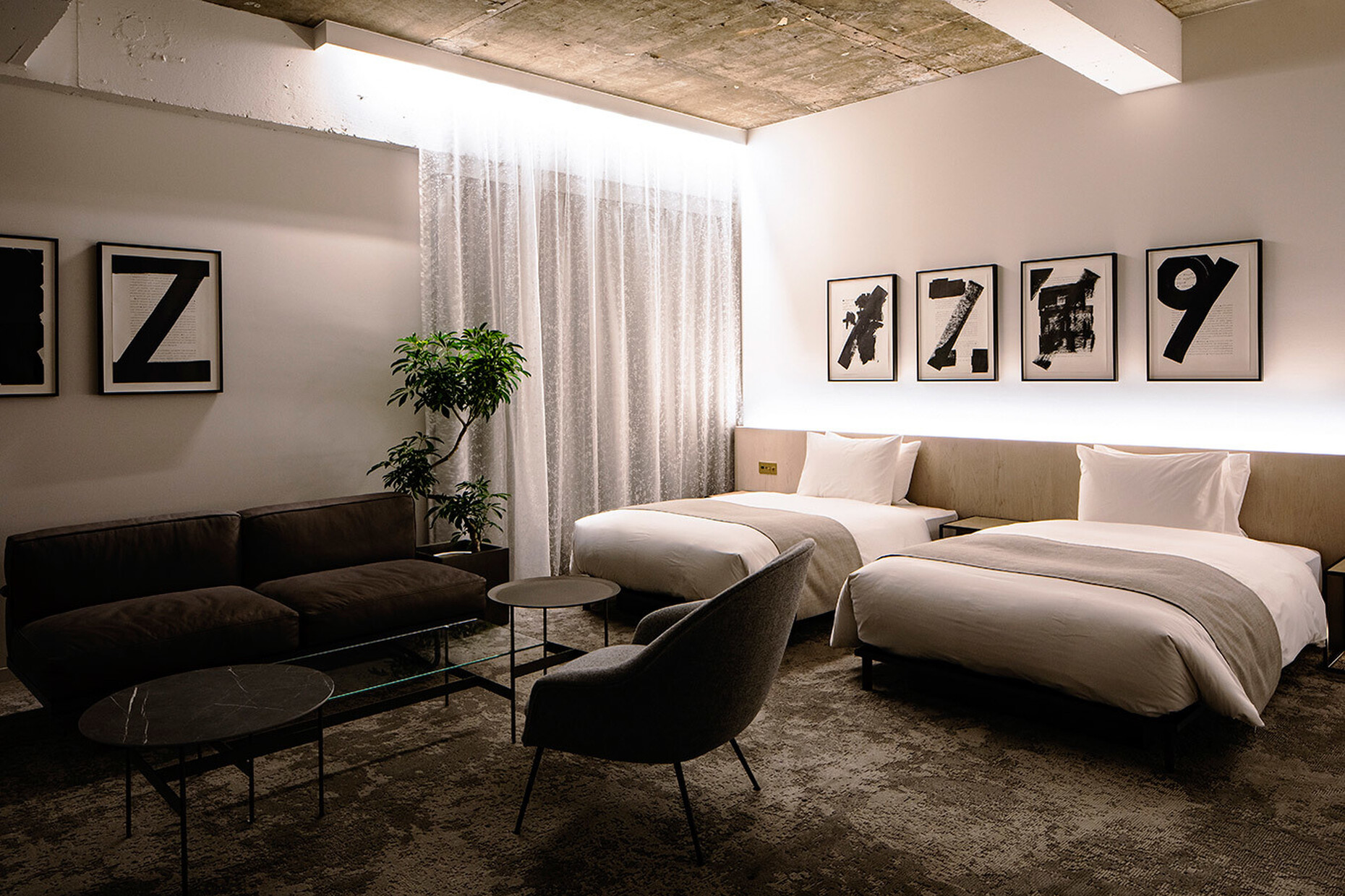 Anders als in Kisho Kurokawas "Nakagin Capsule Tower", in dem eine Wohnkapsel der anderen gleicht, unterscheiden sich im Shiroiya Hotel alle 25 Zimmer in ihrer Größe und Gestaltung. Der Bestandsbau, der ursprünglich einmal 75 Hotelzimmer bot, wurde großzügig entkernt und auf 17 Einheiten reduziert. Für vier Hotelzimmer haben die eingeladenen Architekten und Designer eine Carte Blanche erhalten: Michele de Lucchi, Jasper Morrison, Leandro Erlich und Sou Fujimoto konnten jeweils ein Zimmer frei gestalten. Das Ergebnis sind vier innenarchitektonische Einzelstücke. Der britische Designer Jasper Morrison hat so seinen Raum in eine Holzkiste verwandelt, vom Boden bis zur Decke: Alle Oberflächen sind mit einer Holzvertäfelung verkleidet. Schließt der Gast die Fensterläden, eröffnet sich der Eindruck in einer überdimensionierten Exportkiste für den Kunsttransport zu stehen. Laut Morrison soll der Reisende selbst zum "kostbaren Inhalt" des Zimmers werden. Auch sein italienischer Kollege Michele de Lucchi wählt Holz als Basismaterial. Der "2725 Elements Room" zeigt ebenso viele dunkle Schindeln, die in ihrer Gesamtwirkung vermögen eine Lücke zu schließen zwischen Skulptur und Innenarchitektur. Der argentinische Konzeptkünstler Leandro Erlich hingegen arbeitet mit einer detaillierten Struktur aus in sich verschlungenen Metallrohren. Erlich beschreibt seine Installation als "dynamic excavation that highlights the power of empty space and air". Mit einem Verweis auf die unsichtbaren Städte von Italo Calvino will er das sichtbar werden lassen, was in einem Gebäude sonst unsichtbar bleibt. Seine leuchtende Röhrengebilde "Lighting Pipes" bespielen auch das Atrium der Lobby.